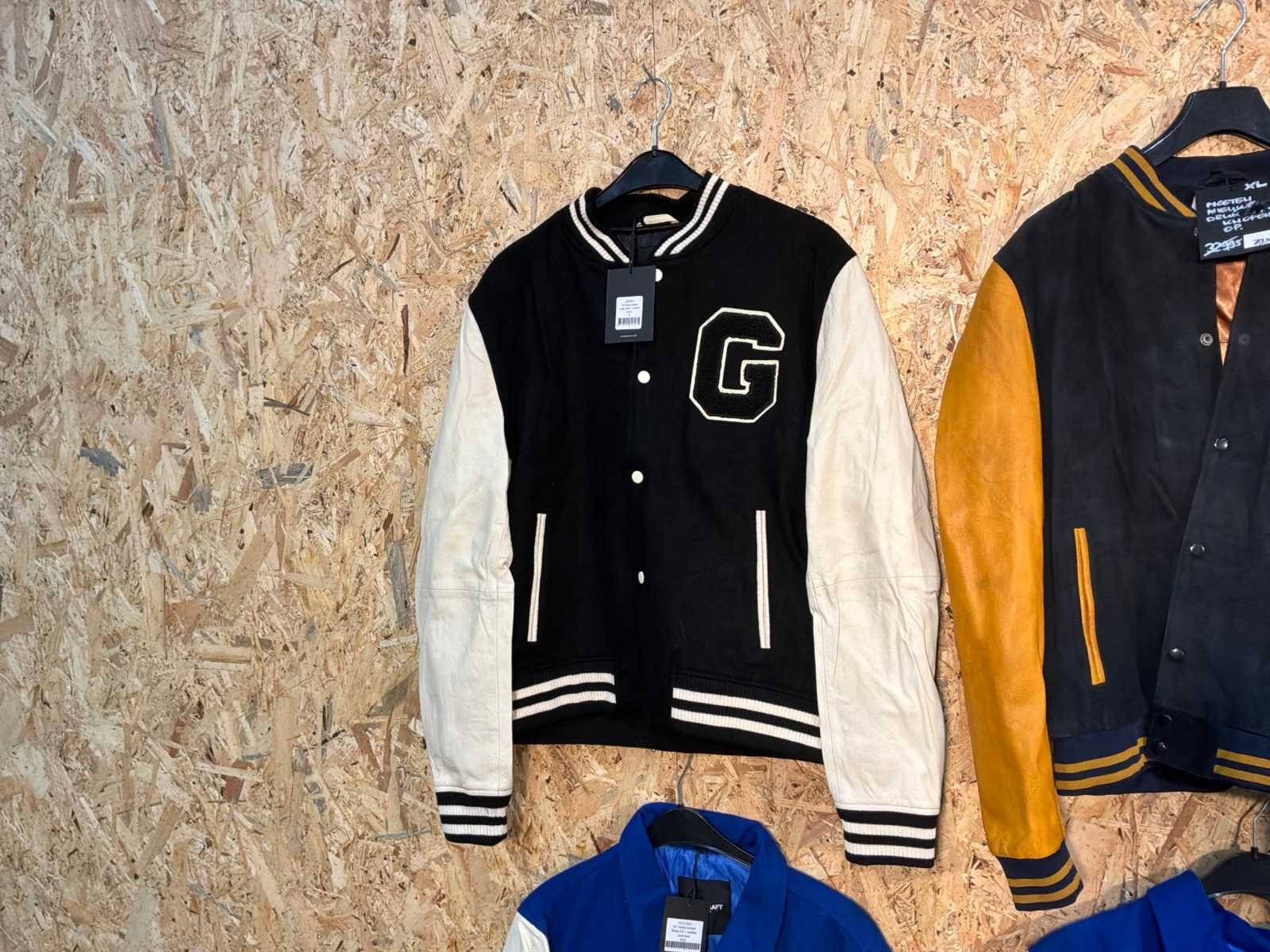 Diverse dames/heren leren bombers in verschillende maten. Inclusief kledinghangers. Mochten erop de items beveiligingstags zitten worden deze nog verwijderd voor de uitleverdag. Merk: Goose-craft