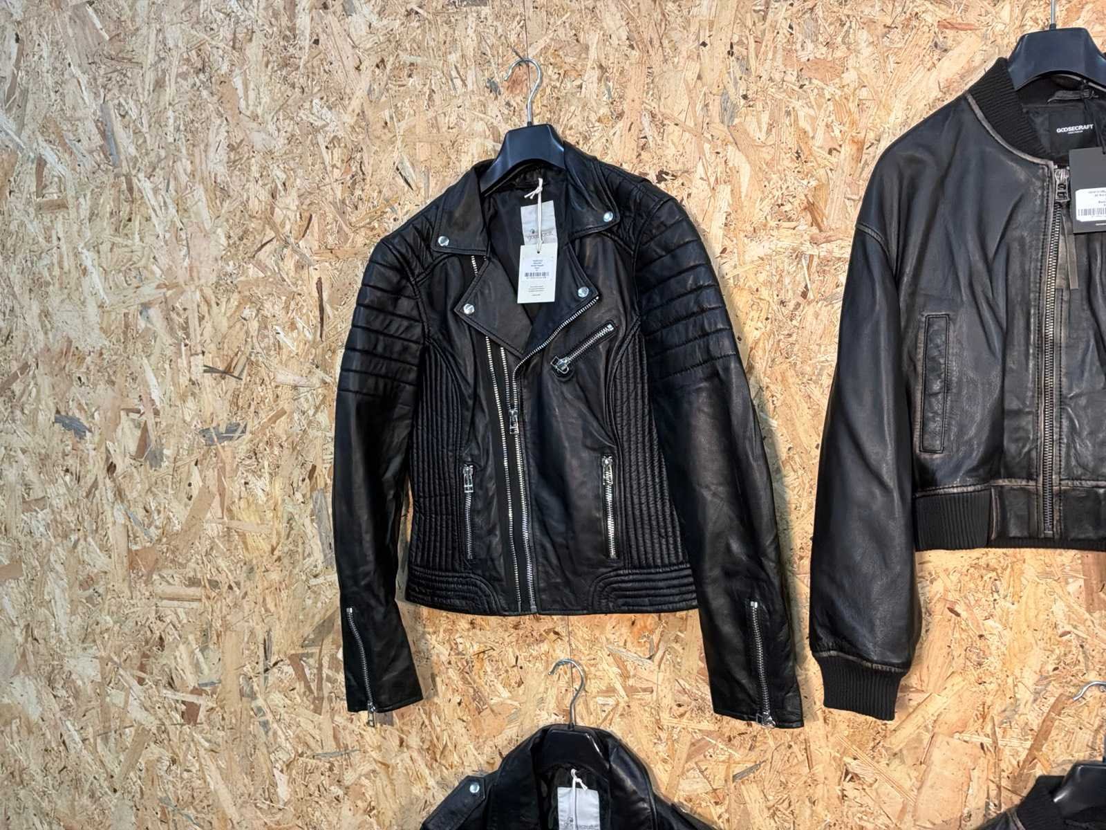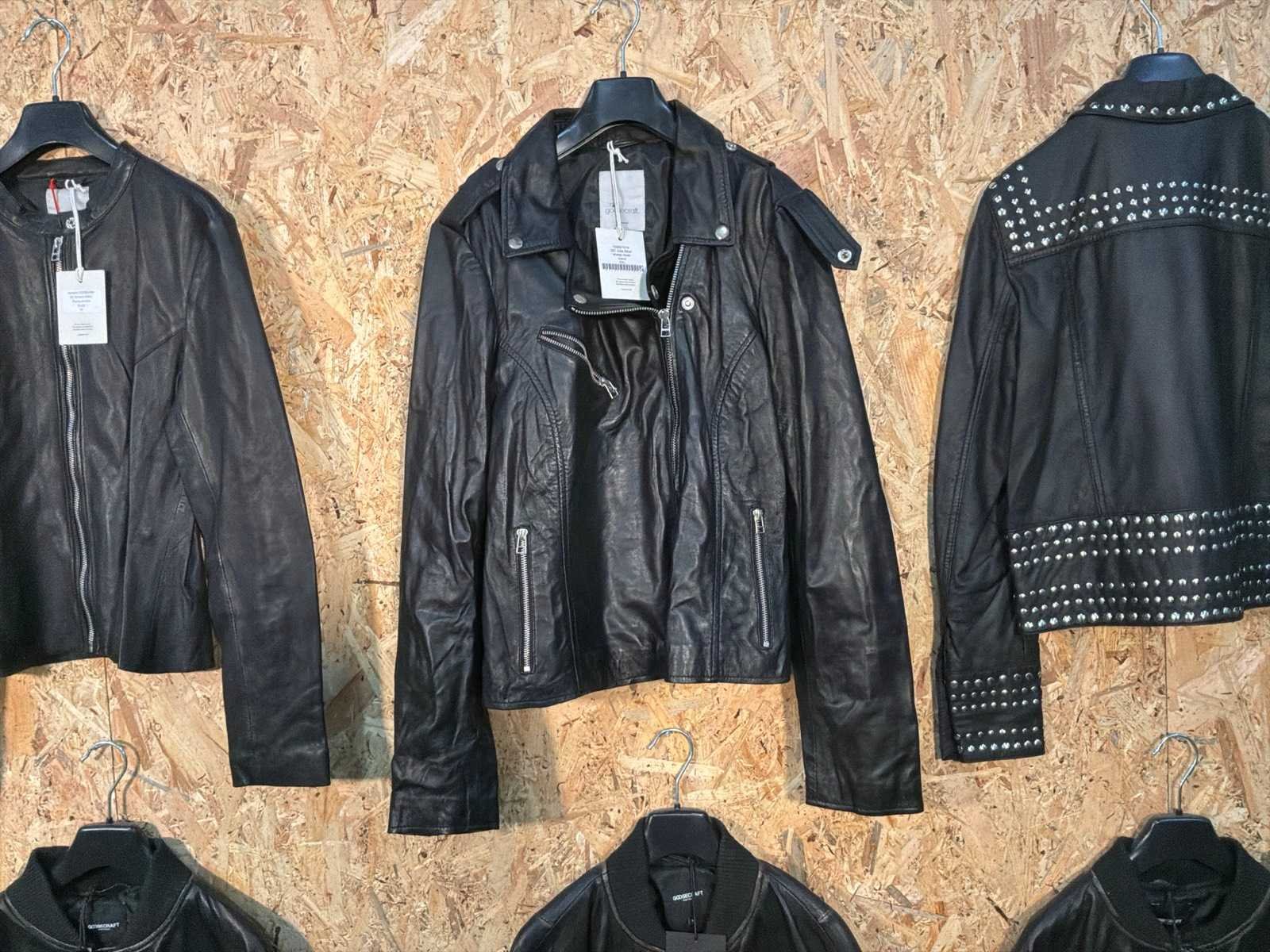 Diverse dames leren jassen in verschillende modellen, kleuren en maten. Inclusief kledinghangers. Mochten erop de items beveiligingstags zitten worden deze nog verwijderd voor de uitleverdag. Merk: Goose-craft