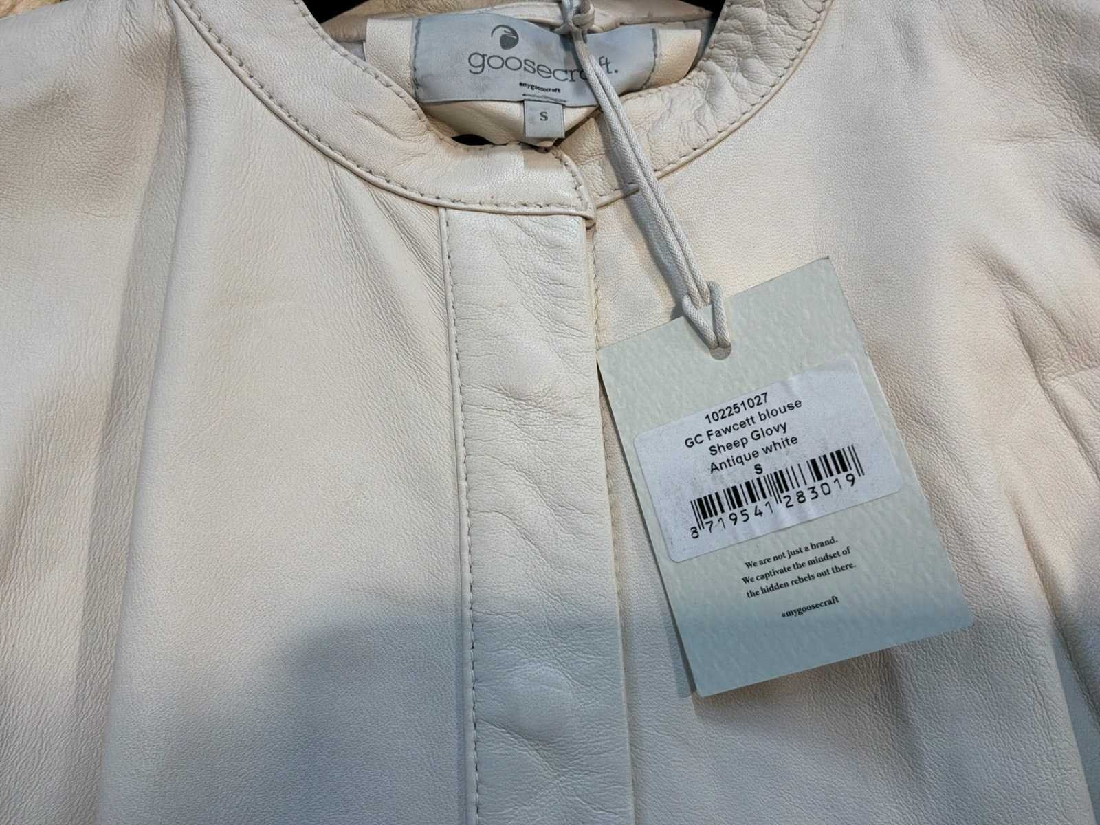 Diverse dames leren bloezen in verschillende maten. Inclusief kledinghangers. Mochten erop de items beveiligingstags zitten worden deze nog verwijderd voor de uitleverdag. Merk: Goose-craft