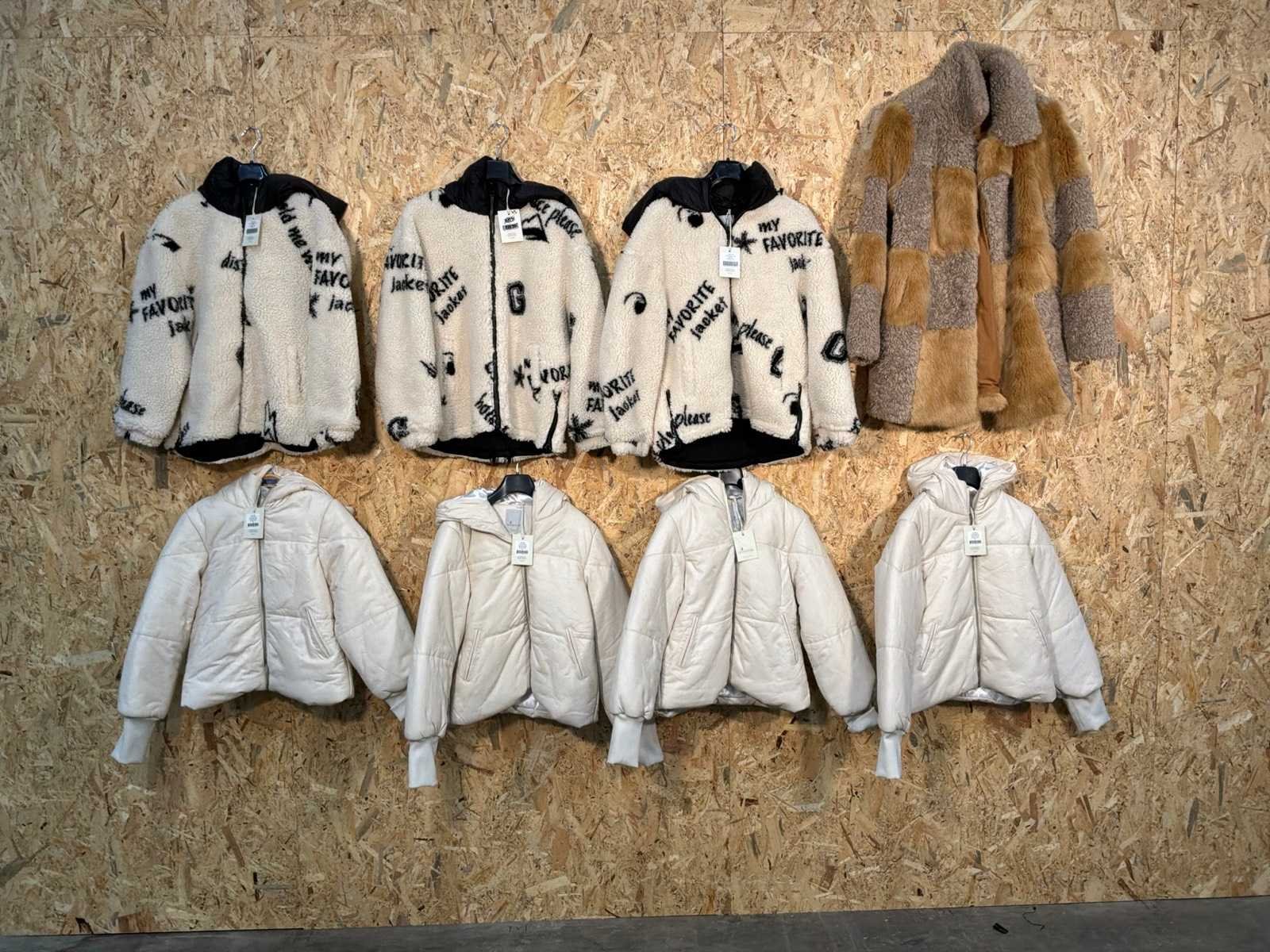 Diverse dames wollen/puffer jassen in verschillende modellen, kleuren en maten. Inclusief kledinghangers. Mochten erop de items beveiligingstags zitten worden deze nog verwijderd voor de uitleverdag. Merk: Goose-craft
