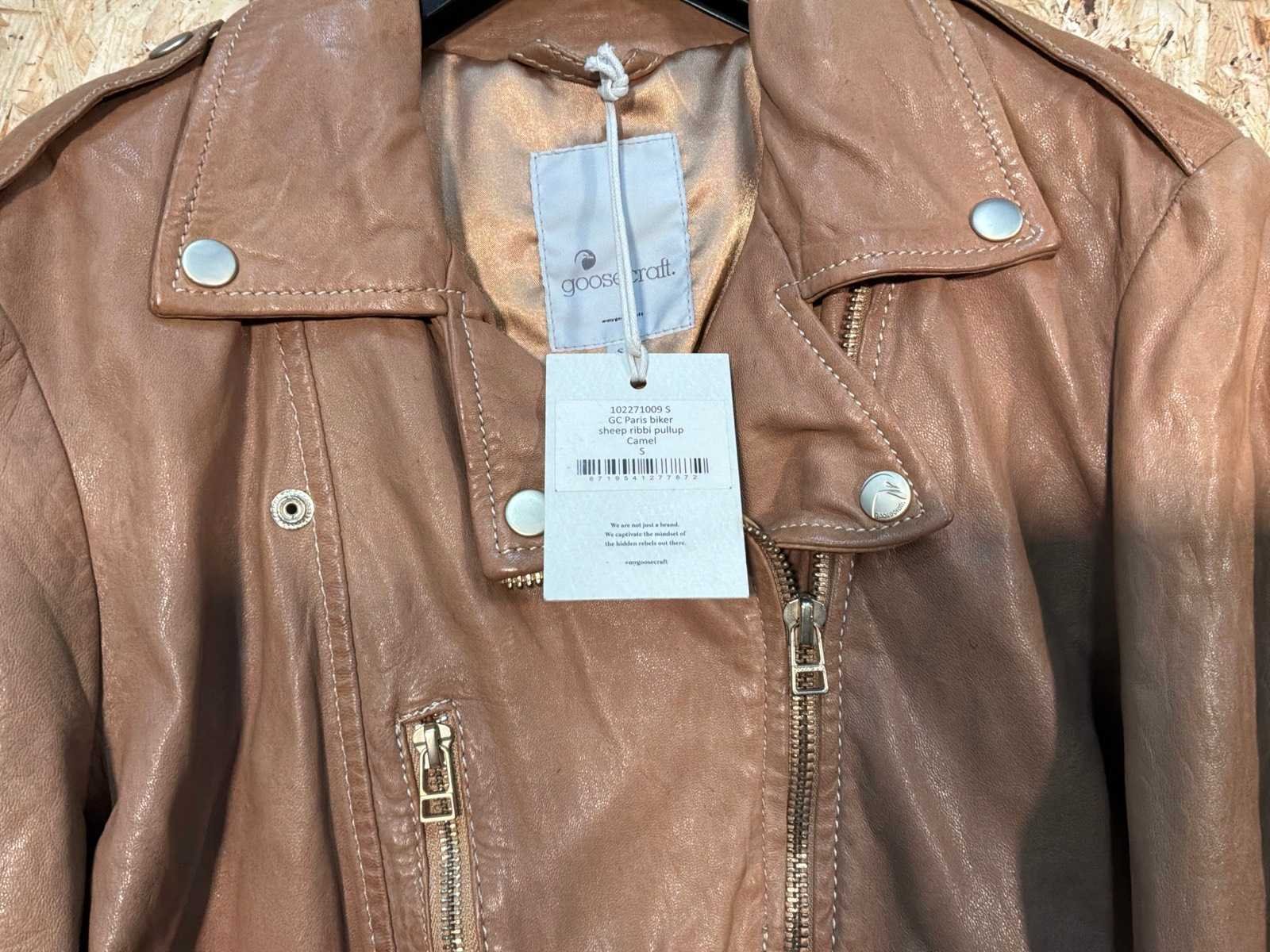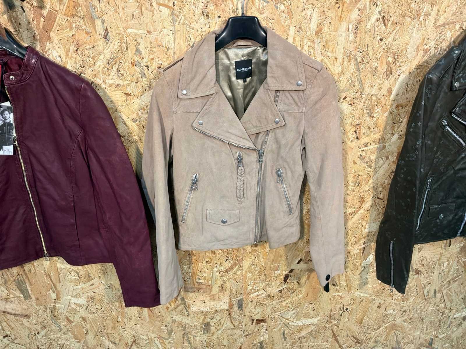 Diverse dames leren jassen in verschillende modellen, kleuren en maten. Inclusief kledinghangers. Mochten erop de items beveiligingstags zitten worden deze nog verwijderd voor de uitleverdag. Merk: Goose-craft