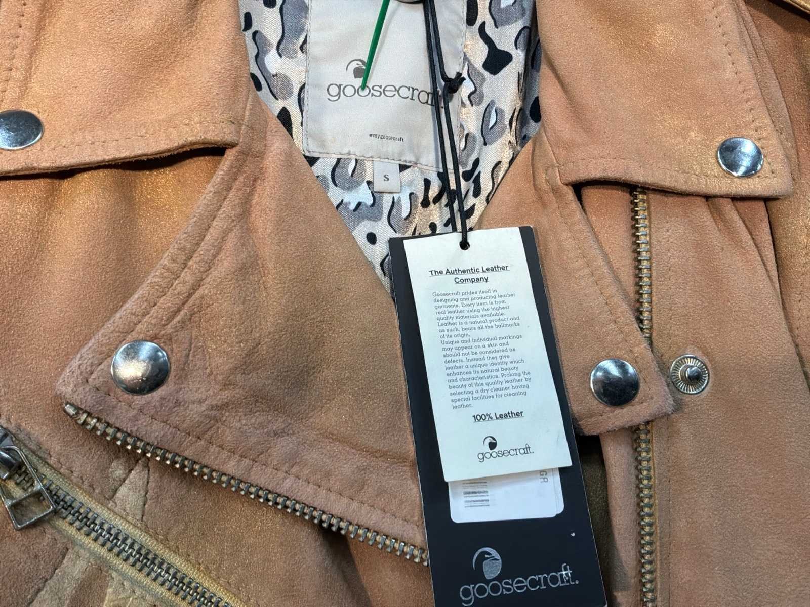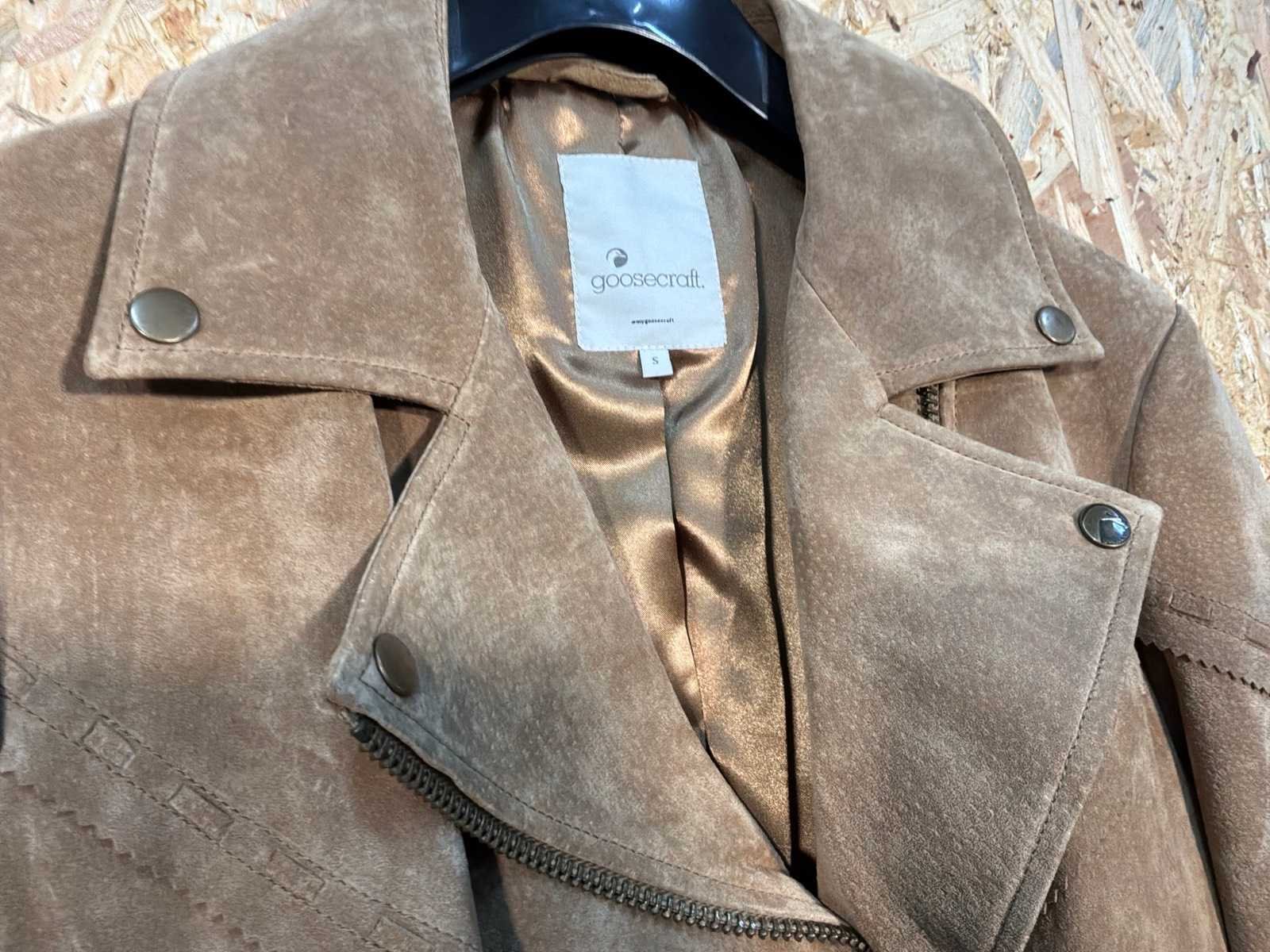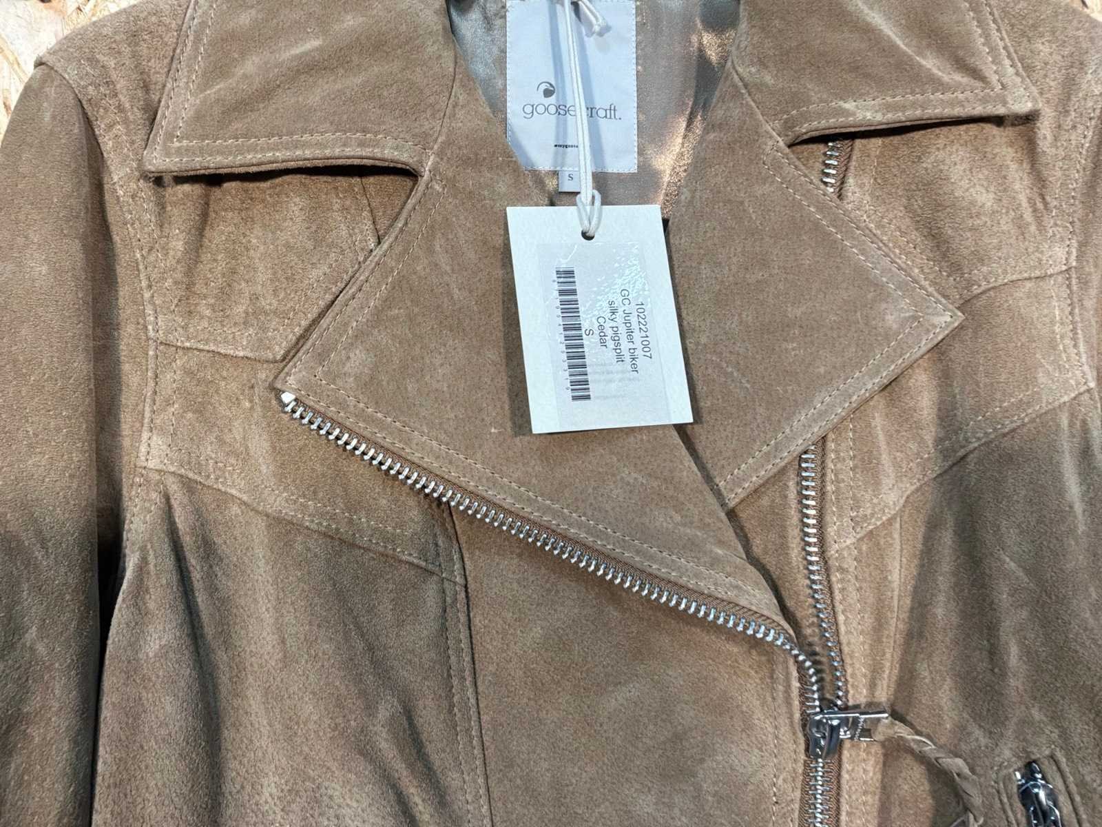 Diverse dames leren jassen in verschillende modellen, kleuren en maten. Inclusief kledinghangers. Mochten erop de items beveiligingstags zitten worden deze nog verwijderd voor de uitleverdag. Merk: Goose-craft
