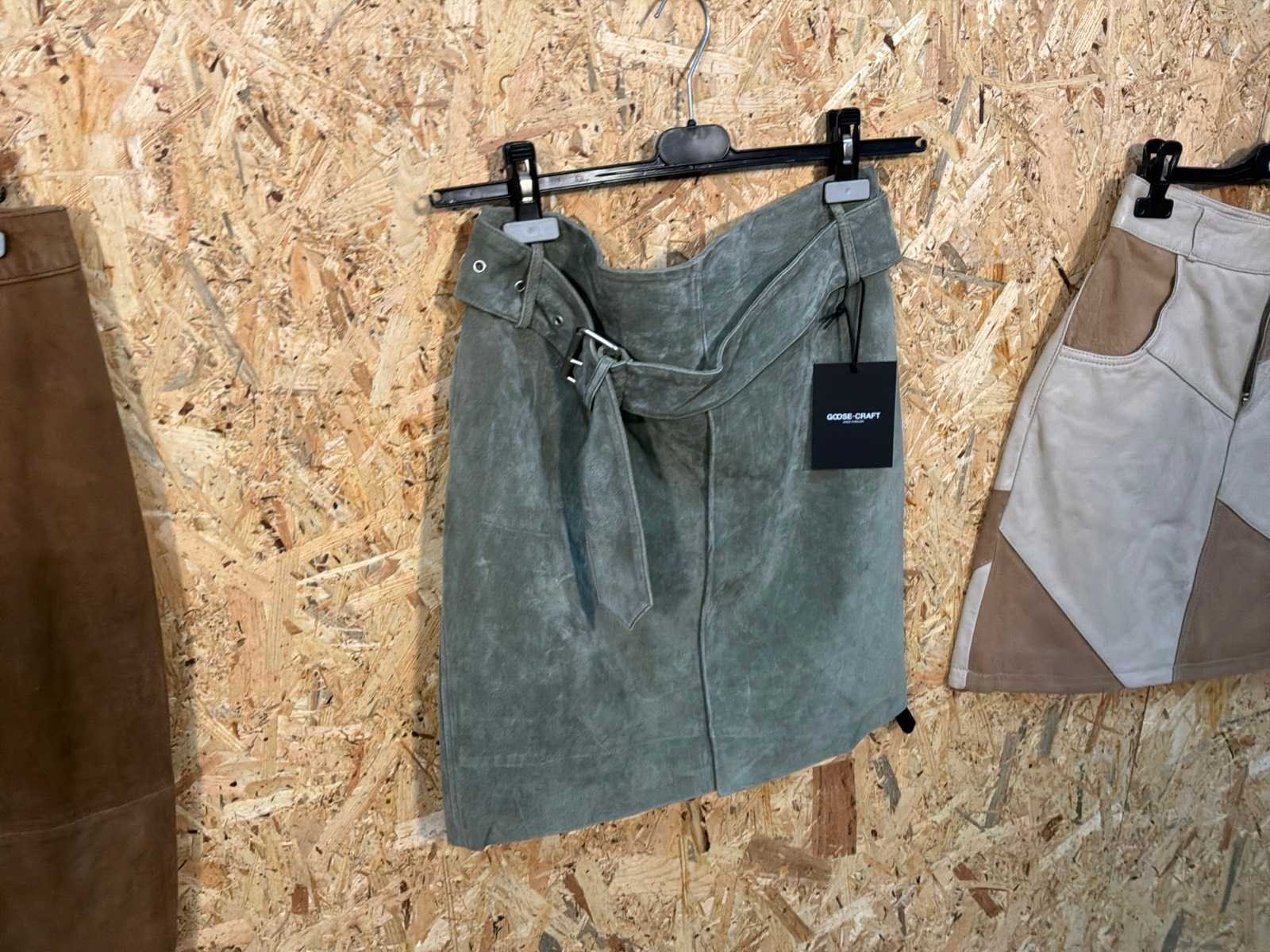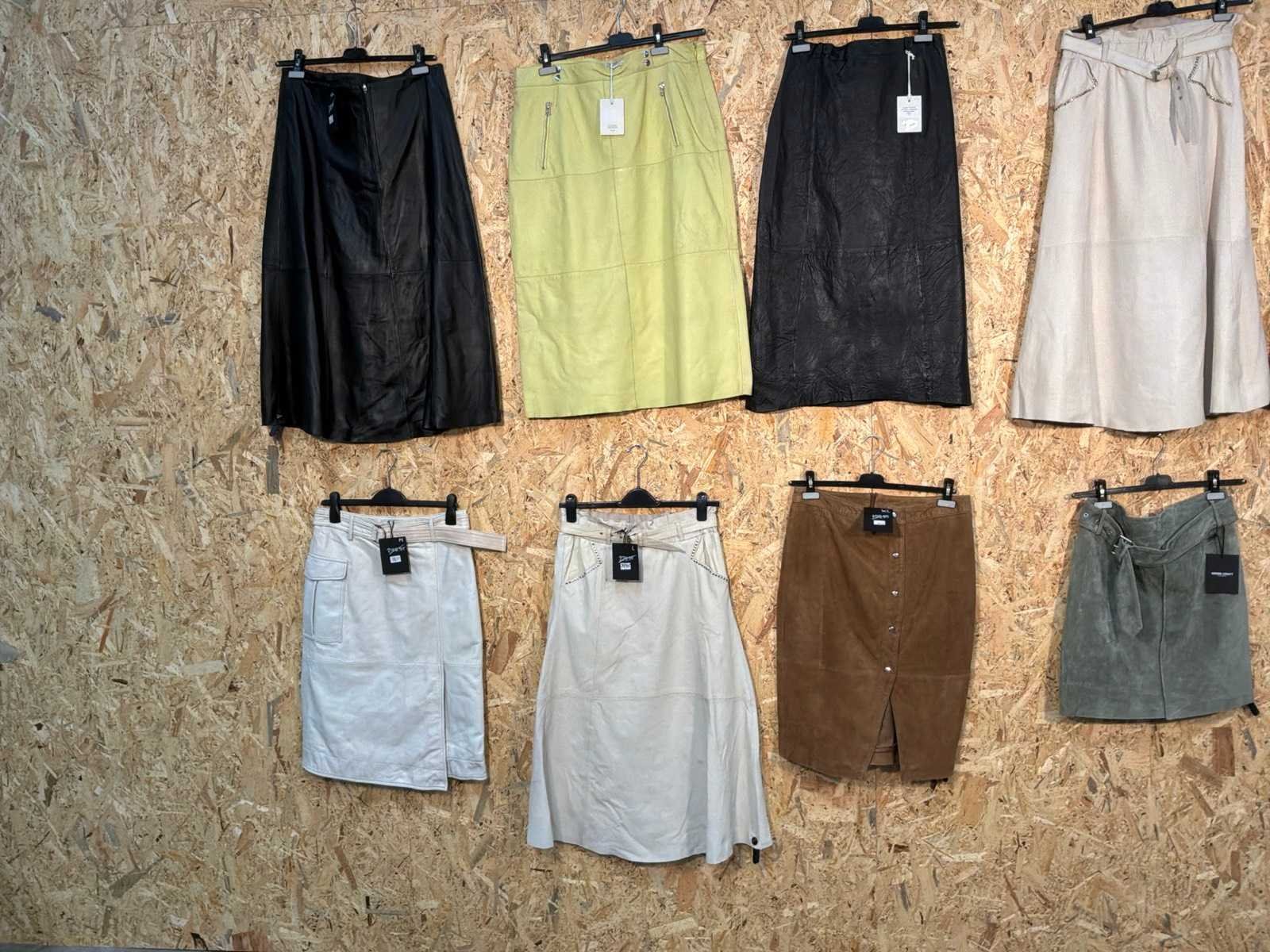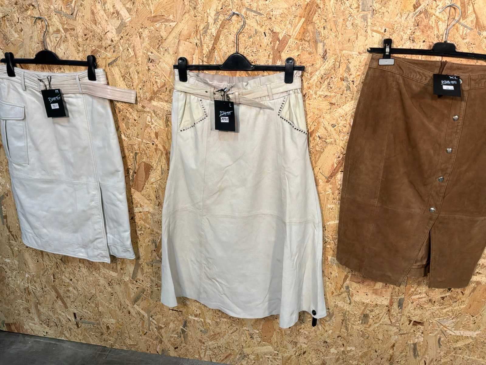 Diverse dames leren rokken in verschillende modellen, kleuren en maten. Inclusief kledinghangers. Mochten erop de items beveiligingstags zitten worden deze nog verwijderd voor de uitleverdag. Merk: Goose-craft