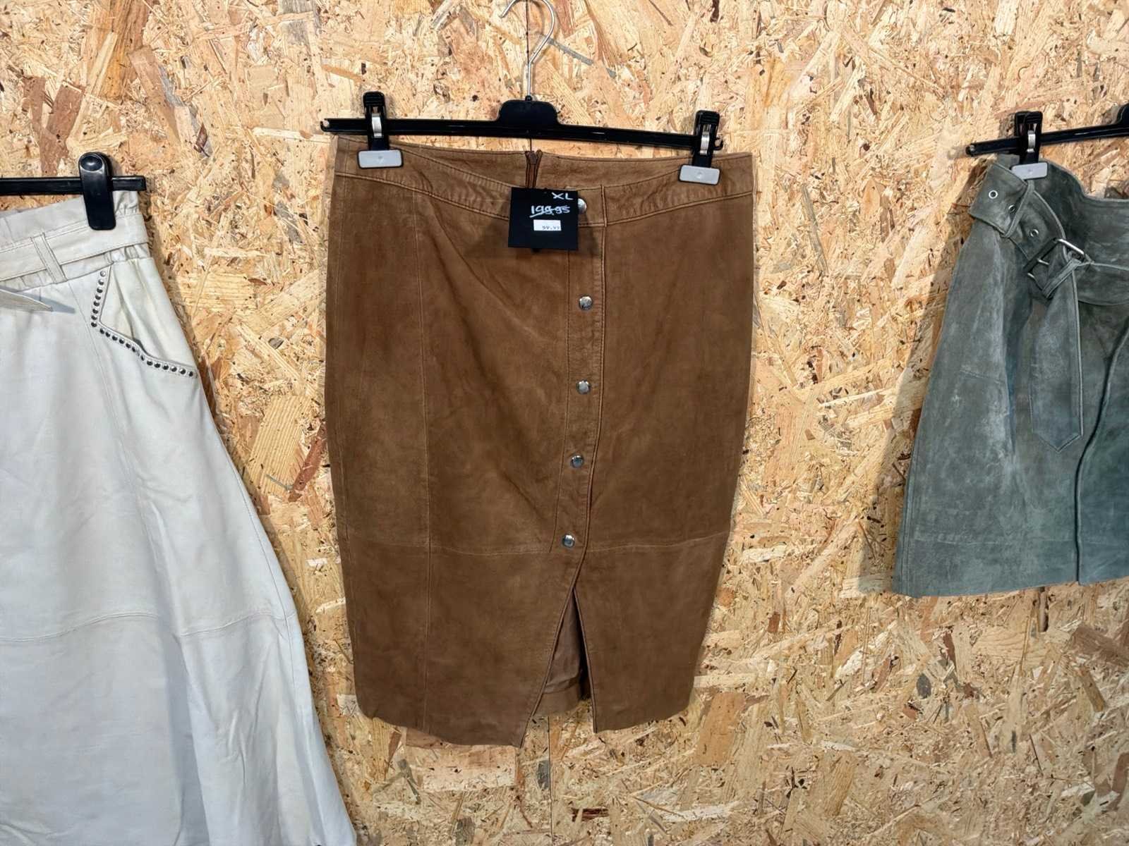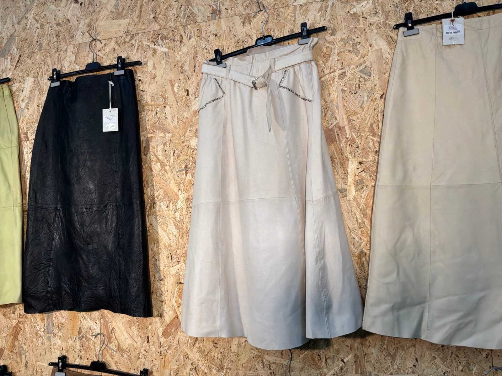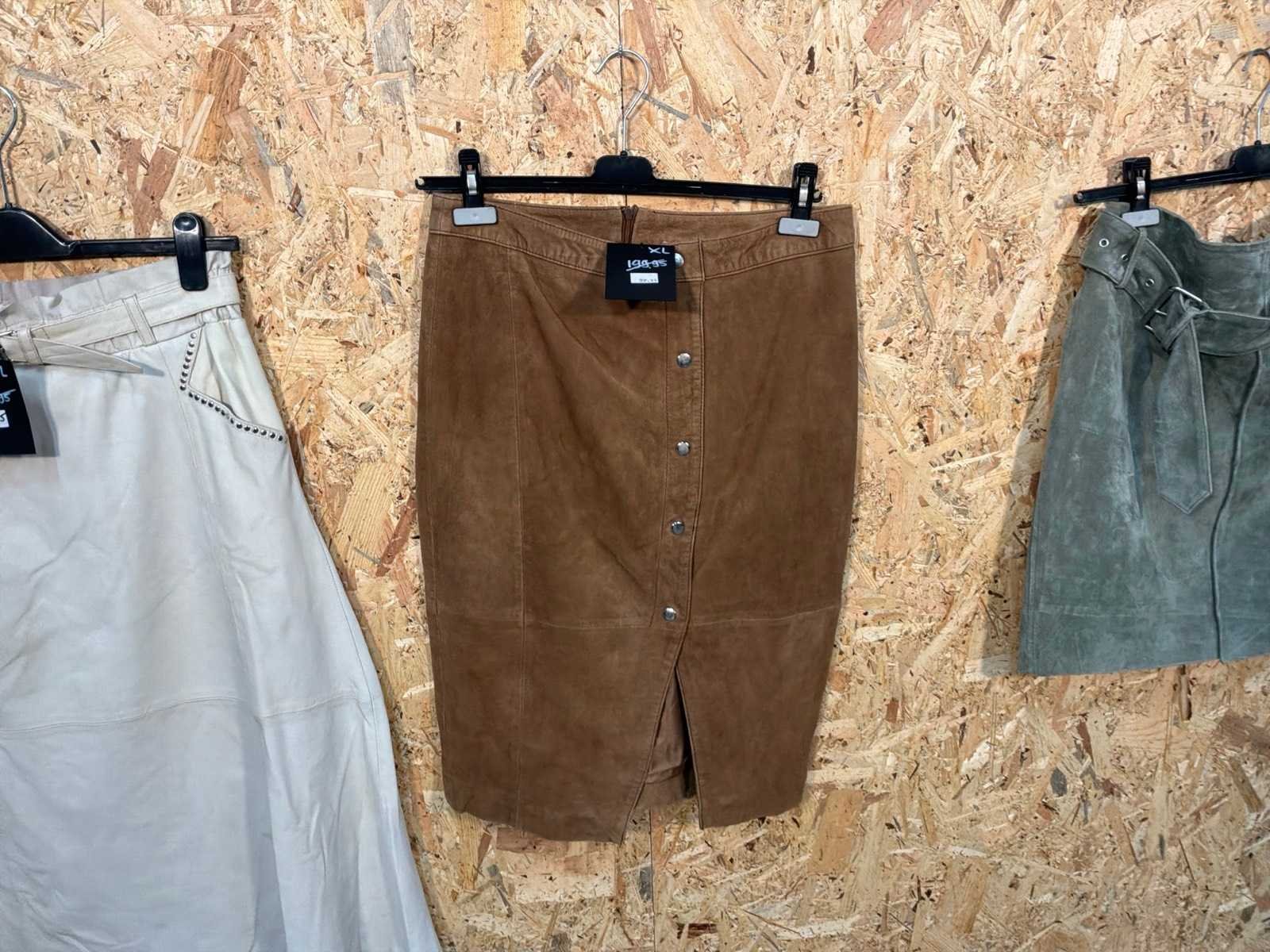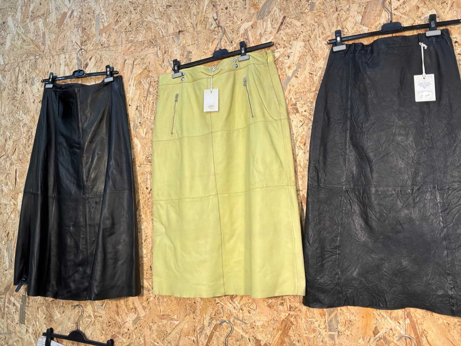 Diverse dames leren rokken in verschillende modellen, kleuren en maten. Inclusief kledinghangers. Mochten erop de items beveiligingstags zitten worden deze nog verwijderd voor de uitleverdag. Merk: Goose-craft