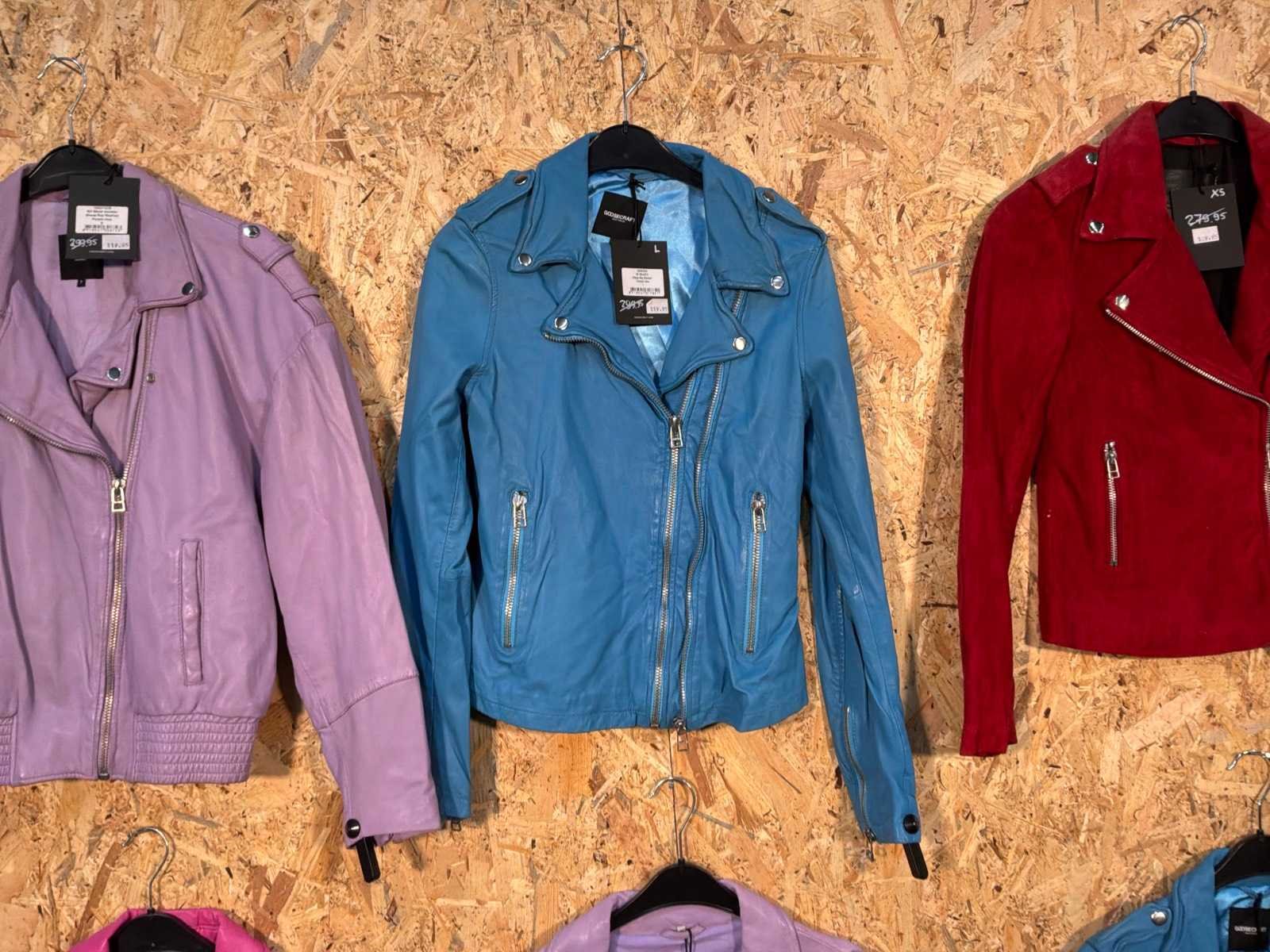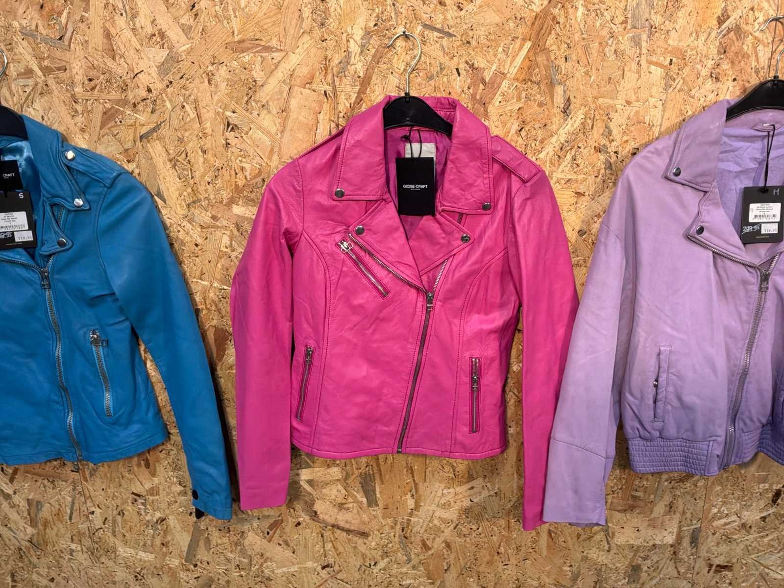 Diverse dames leren jassen in verschillende modellen, kleuren en maten. Inclusief kledinghangers. Mochten erop de items beveiligingstags zitten worden deze nog verwijderd voor de uitleverdag. Merk: Goose-craft