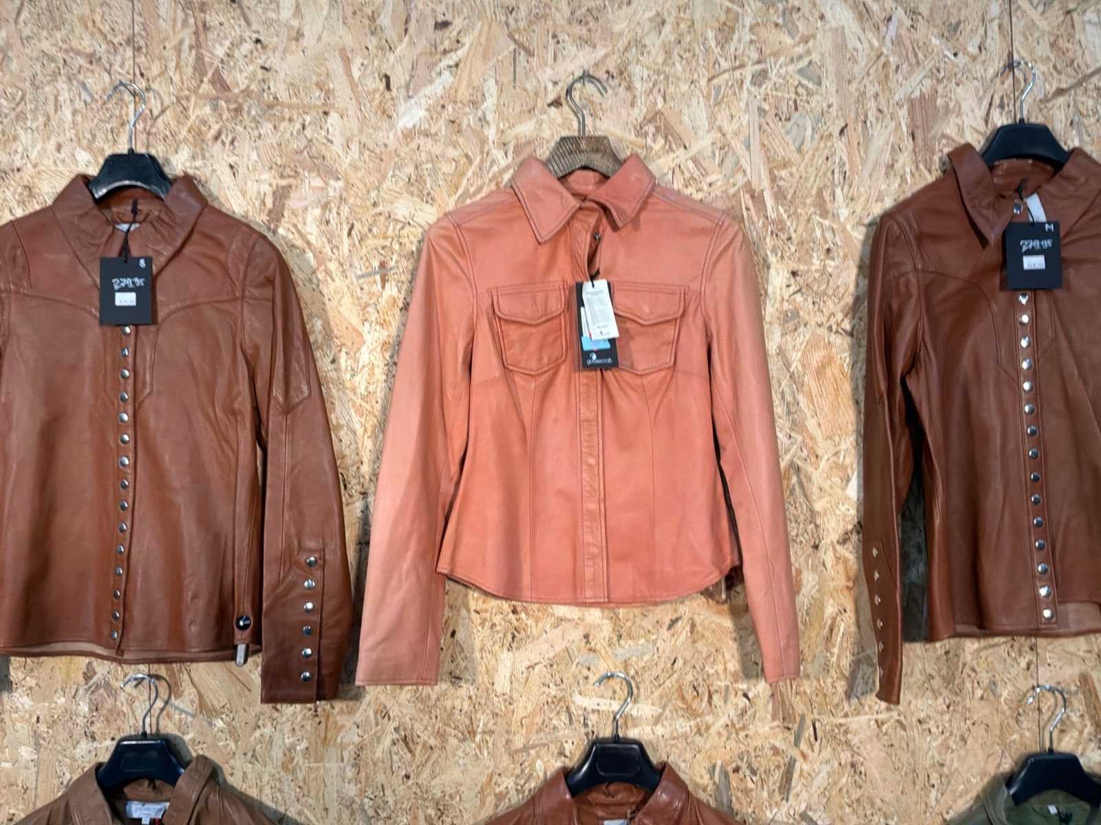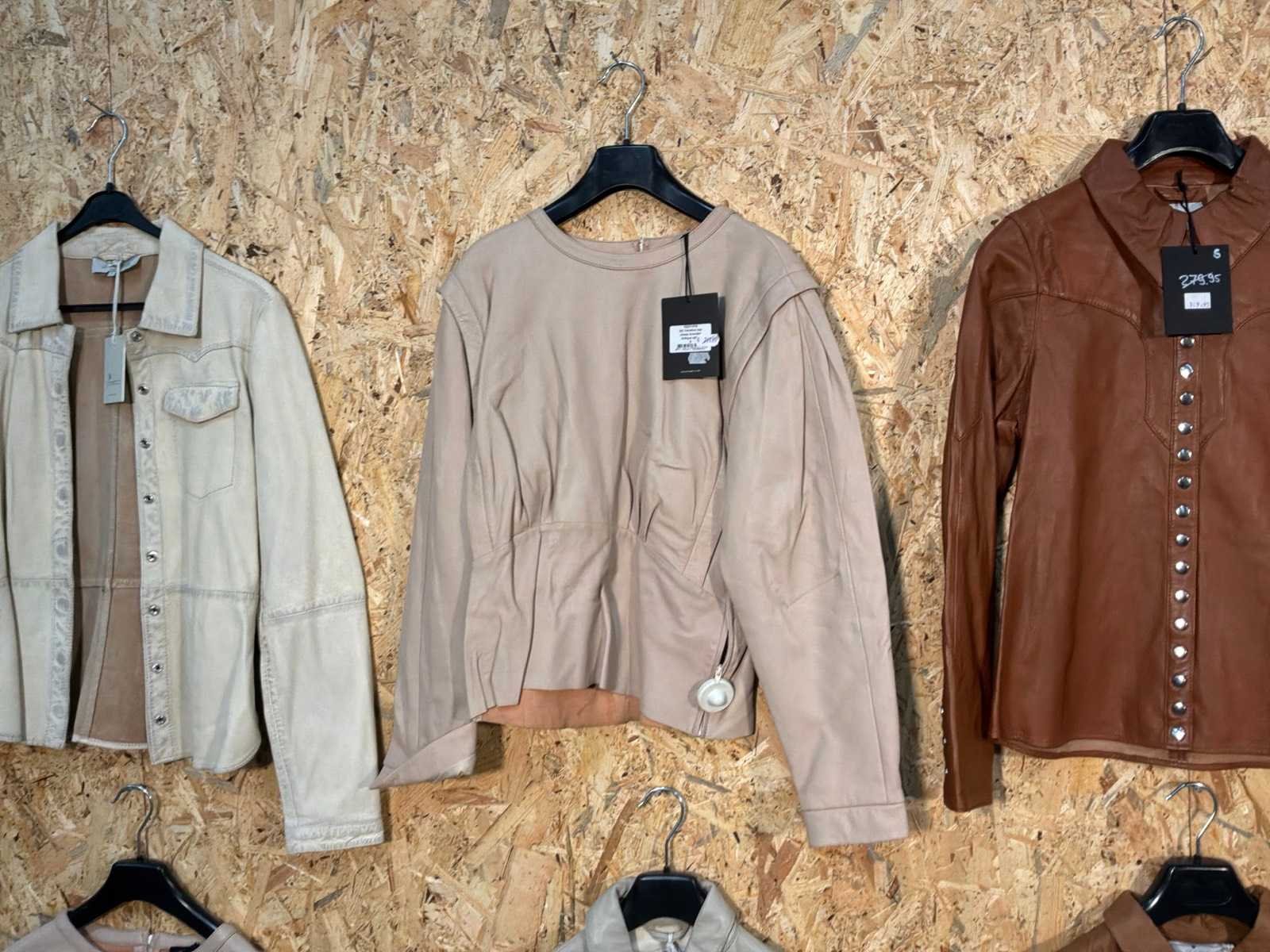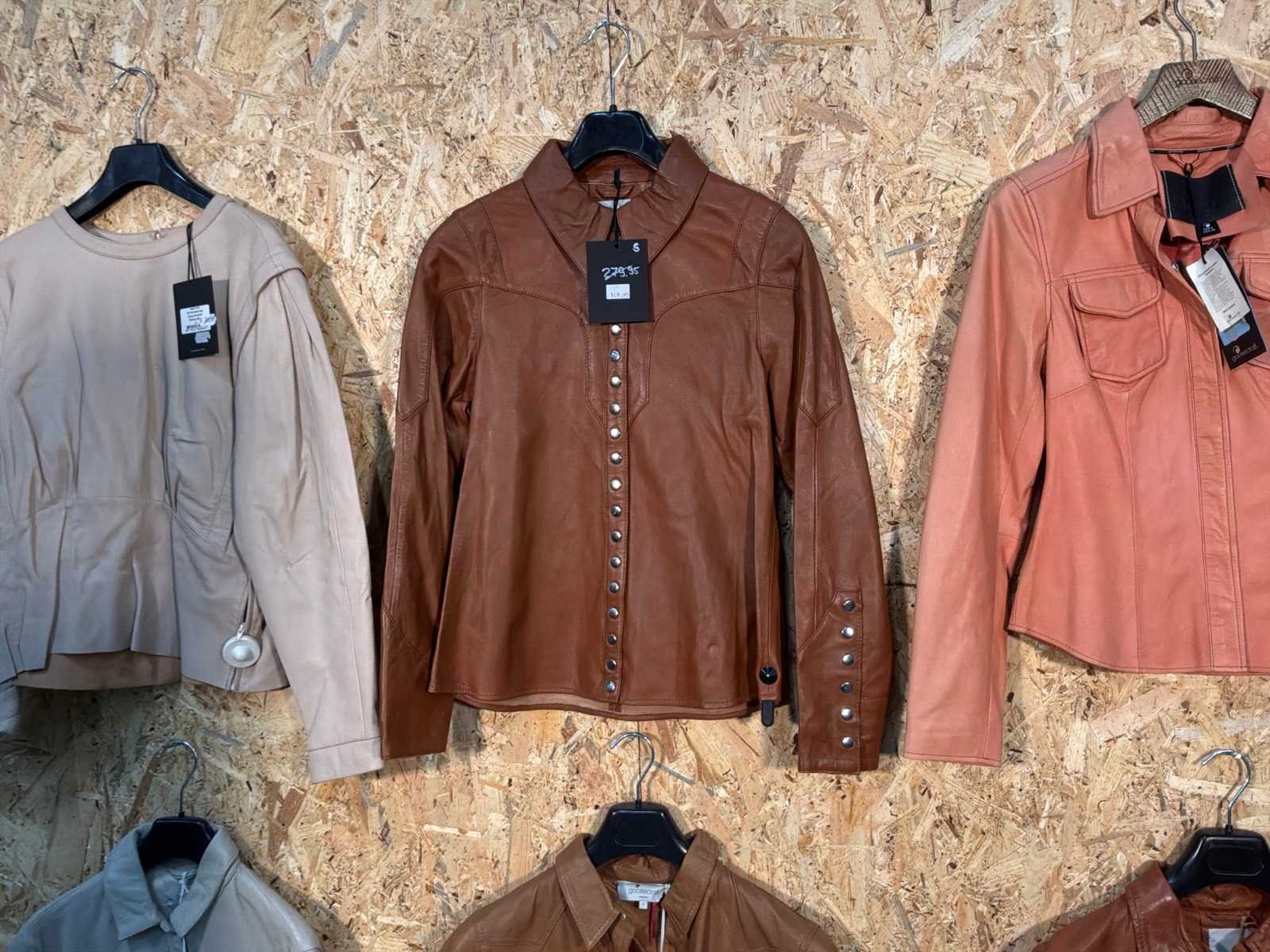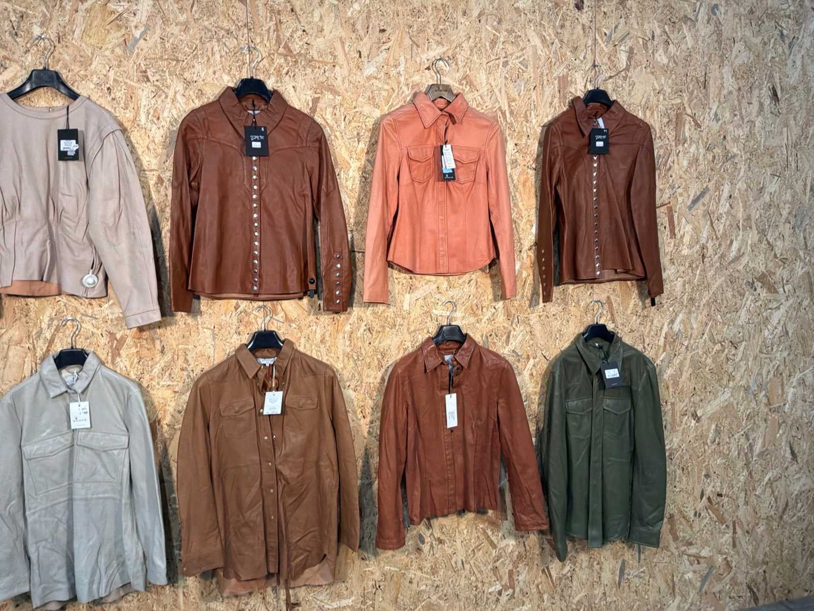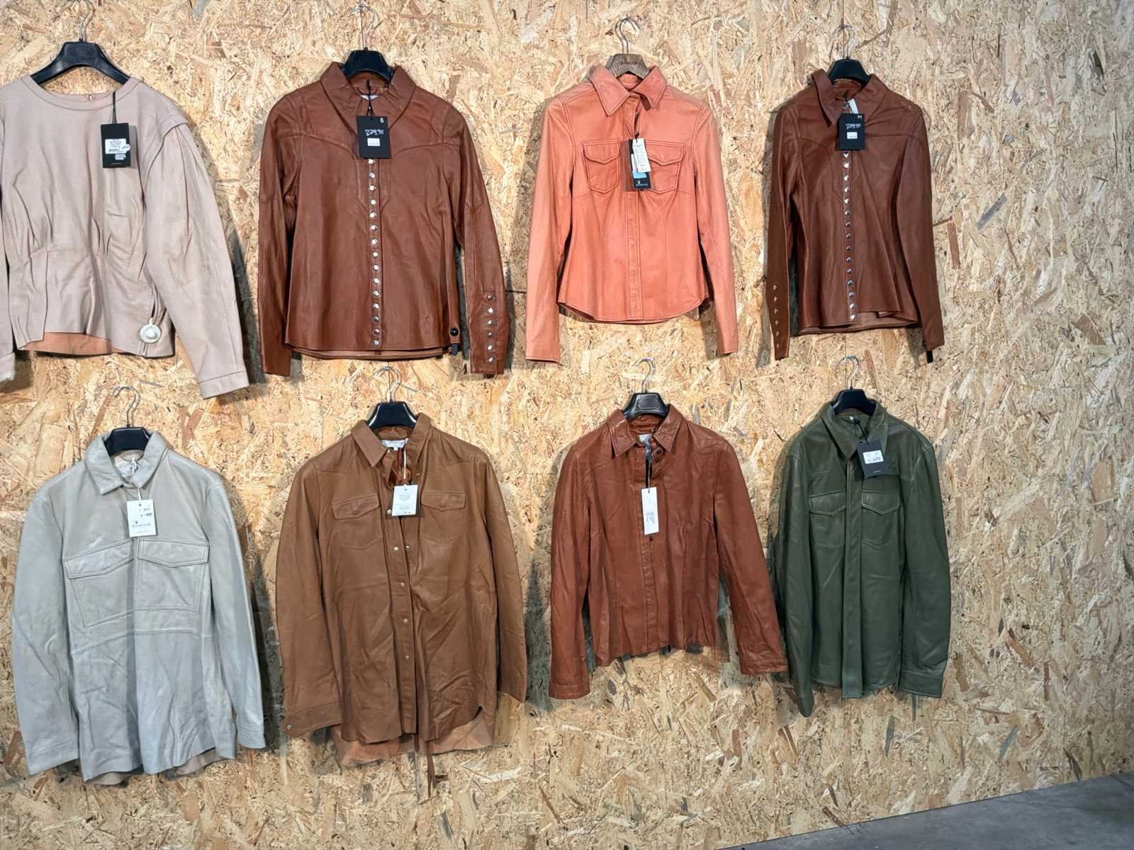 Diverse dames leren jassen in verschillende modellen, kleuren en maten. Inclusief kledinghangers. Mochten erop de items beveiligingstags zitten worden deze nog verwijderd voor de uitleverdag. Merk: Goose-craft