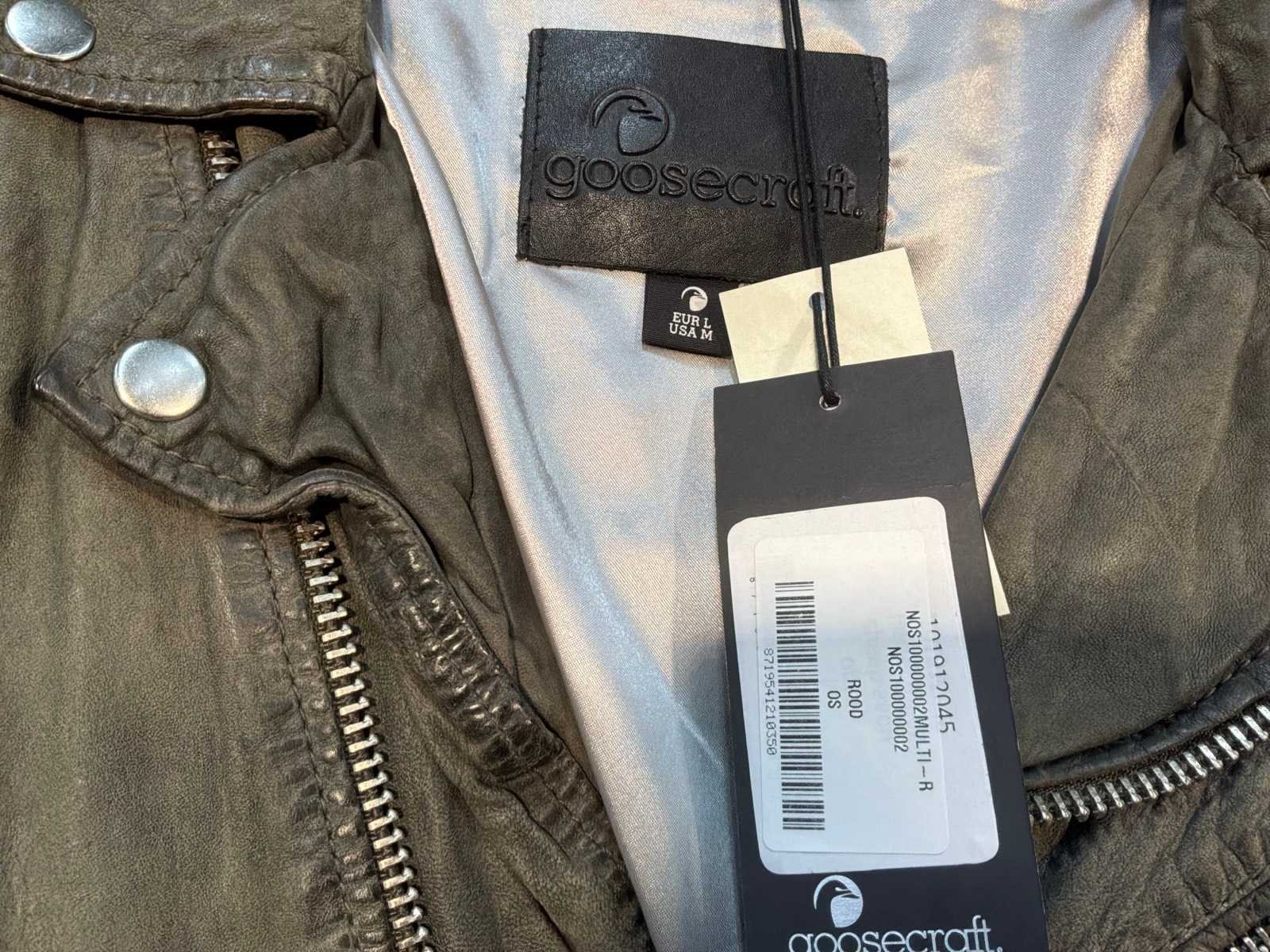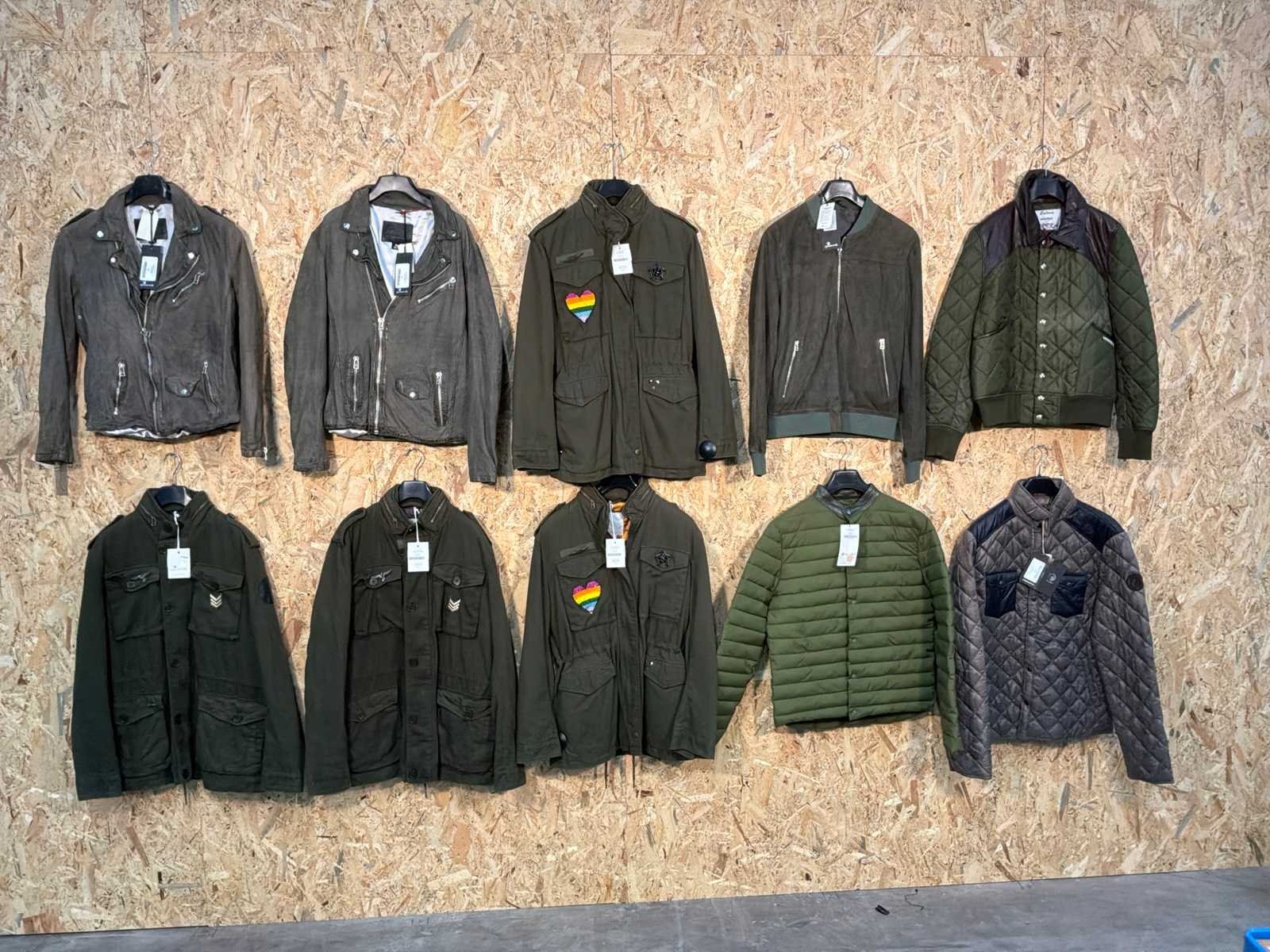 Diverse heren/dames leren jassen in verschillende modellen, kleuren en maten. Inclusief kledinghangers. Mochten erop de items beveiligingstags zitten worden deze nog verwijderd voor de uitleverdag. Merk: Goose-craft