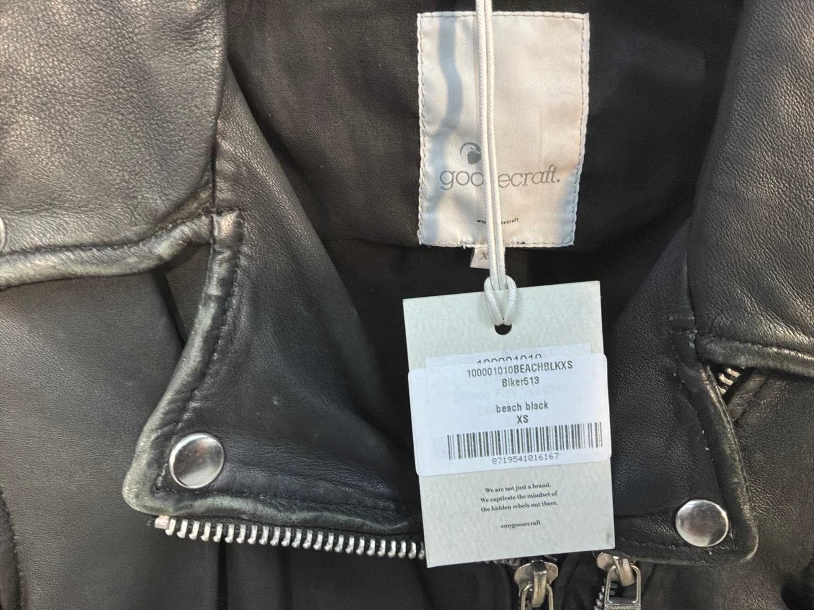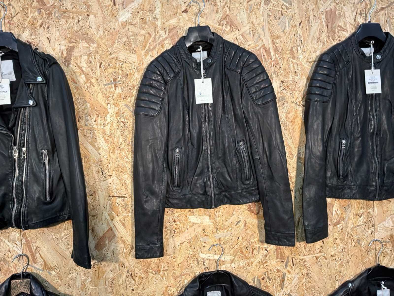 Diverse dames leren jassen in verschillende modellen, kleuren en maten. Inclusief kledinghangers. Mochten erop de items beveiligingstags zitten worden deze nog verwijderd voor de uitleverdag. Merk: Goose-craft