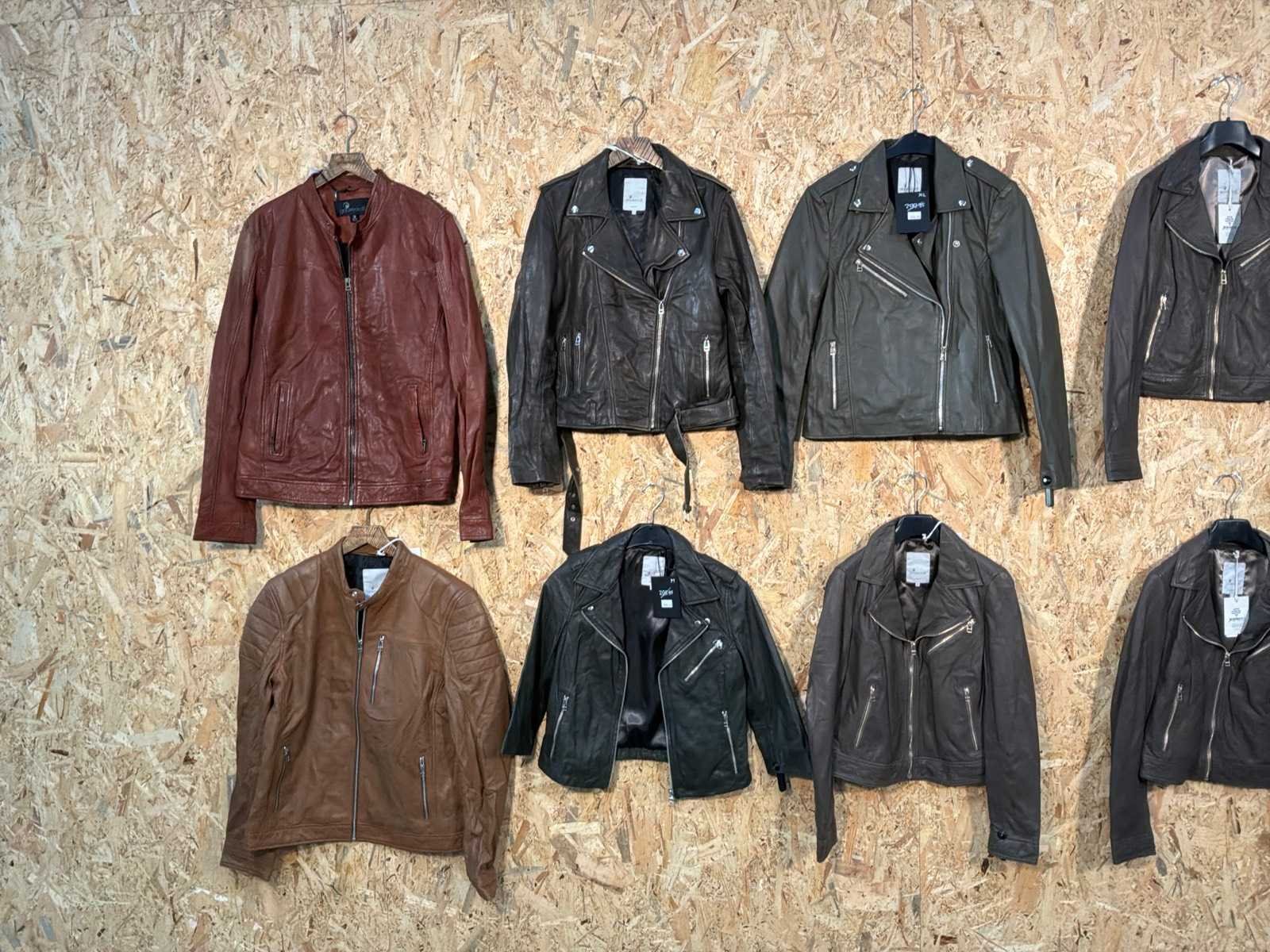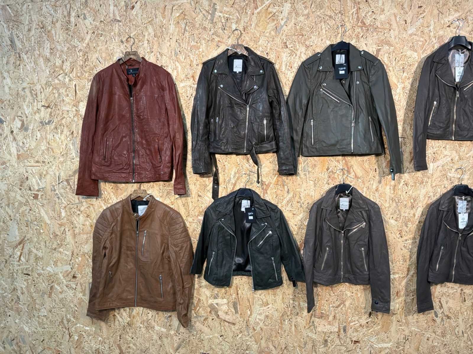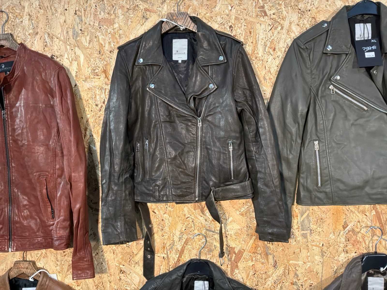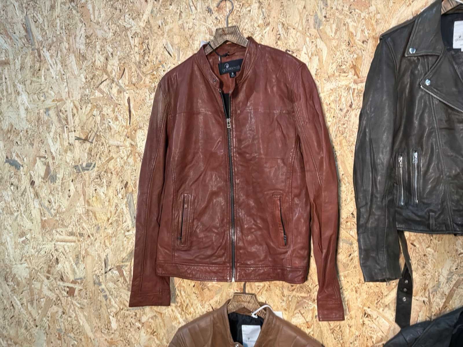 Diverse heren/dames leren jassen in verschillende modellen, kleuren en maten. Inclusief kledinghangers. Mochten erop de items beveiligingstags zitten worden deze nog verwijderd voor de uitleverdag. Merk: Goose-craft