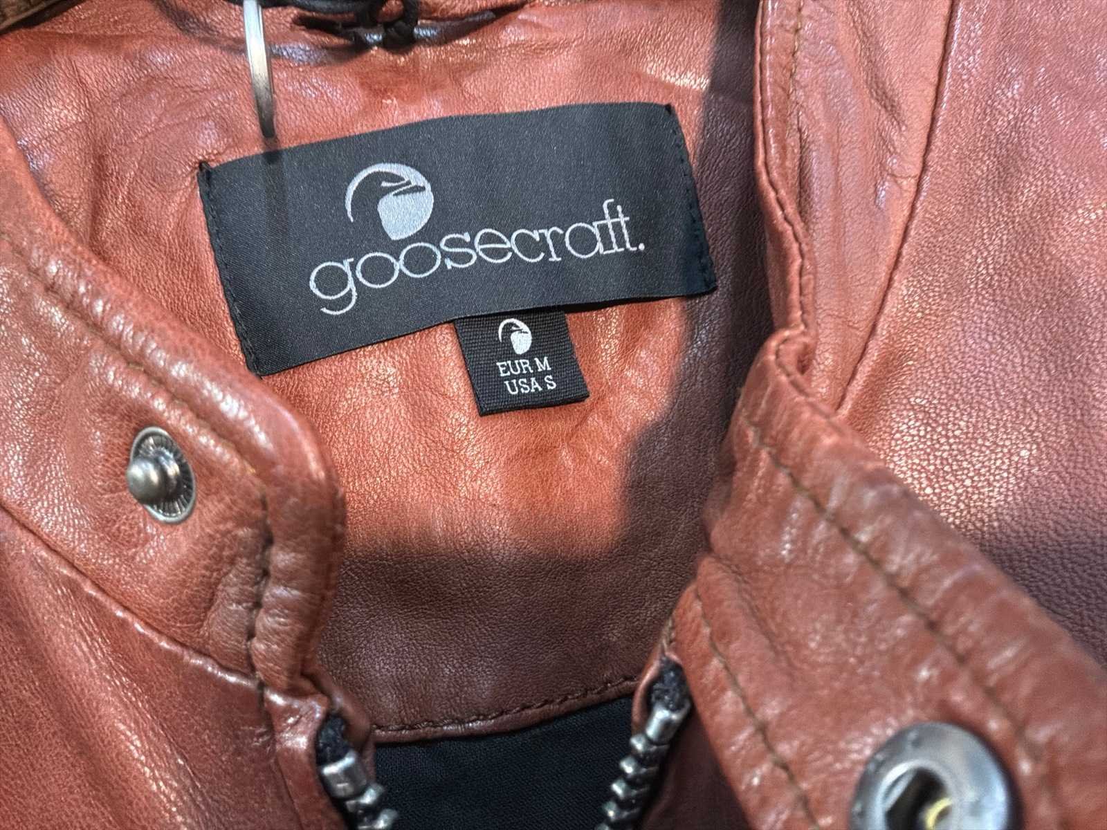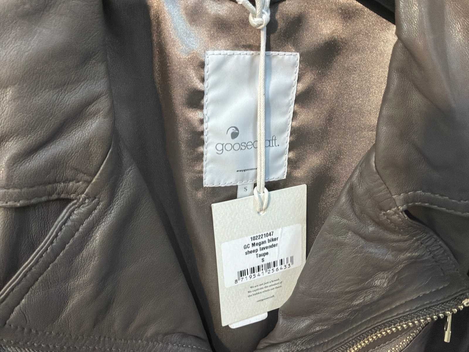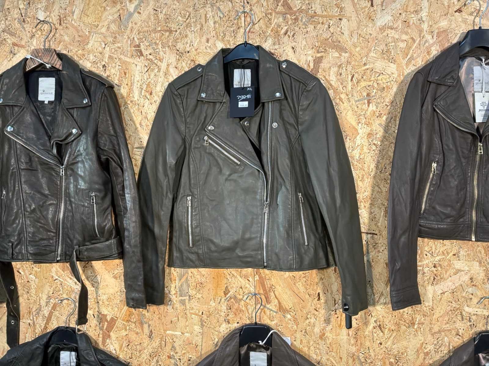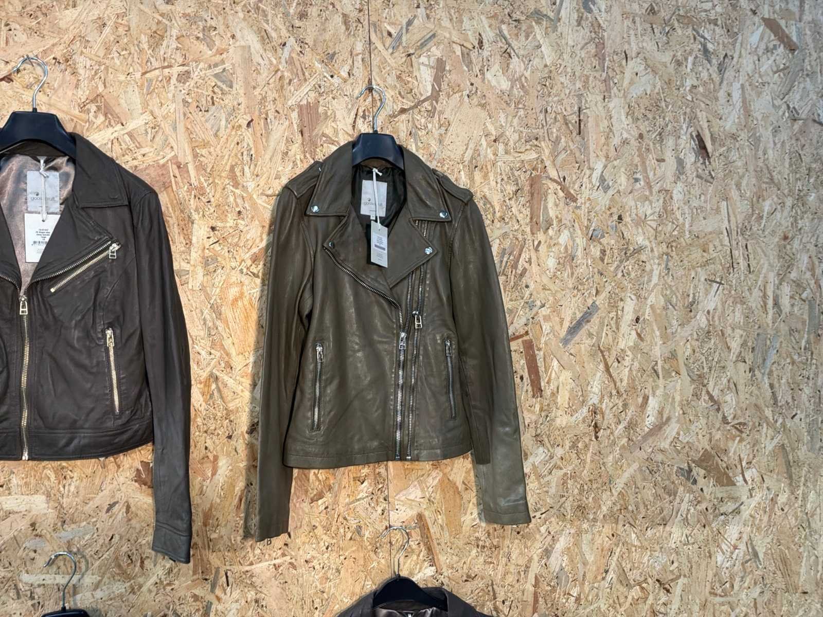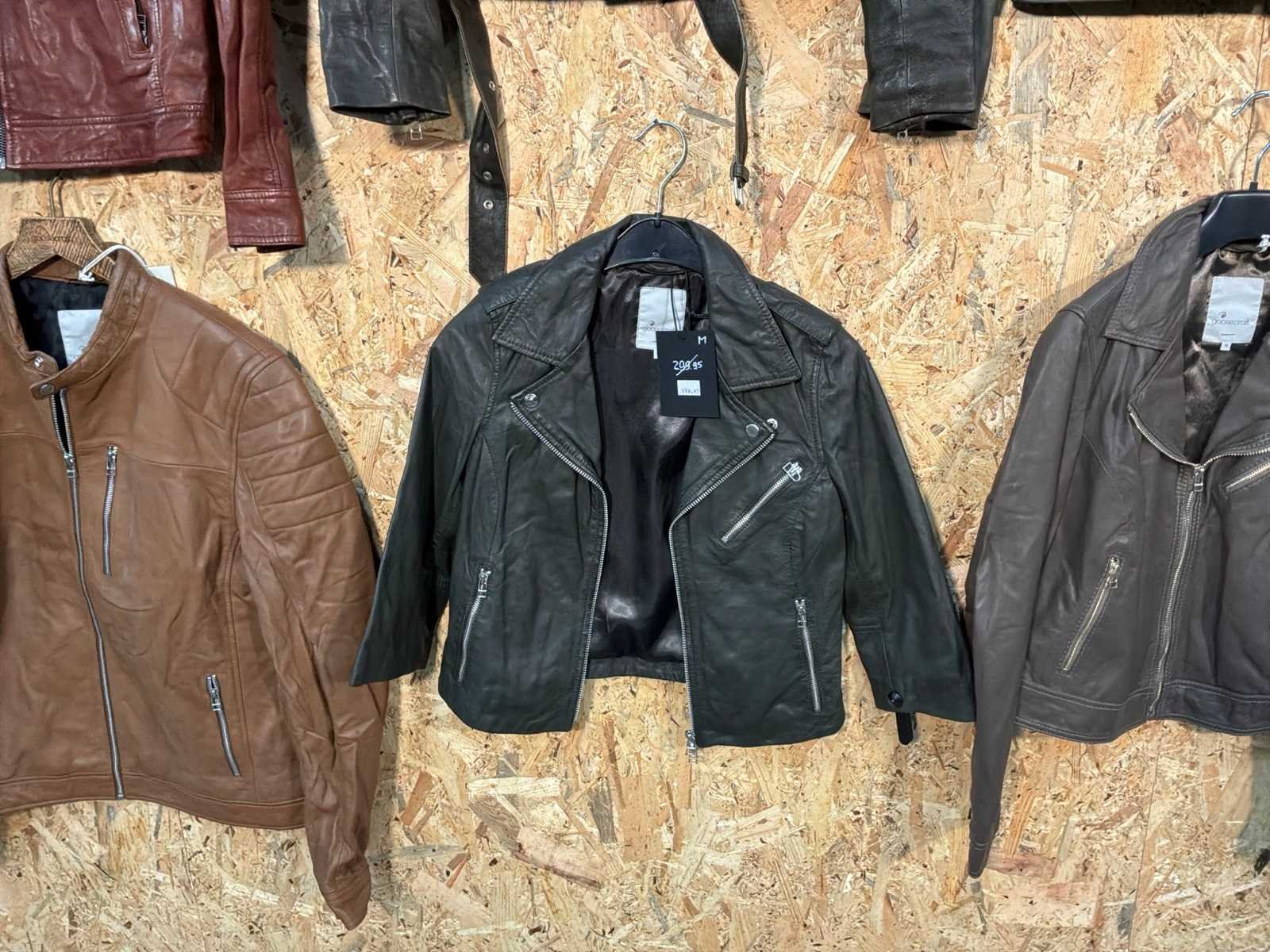 Diverse heren/dames leren jassen in verschillende modellen, kleuren en maten. Inclusief kledinghangers. Mochten erop de items beveiligingstags zitten worden deze nog verwijderd voor de uitleverdag. Merk: Goose-craft