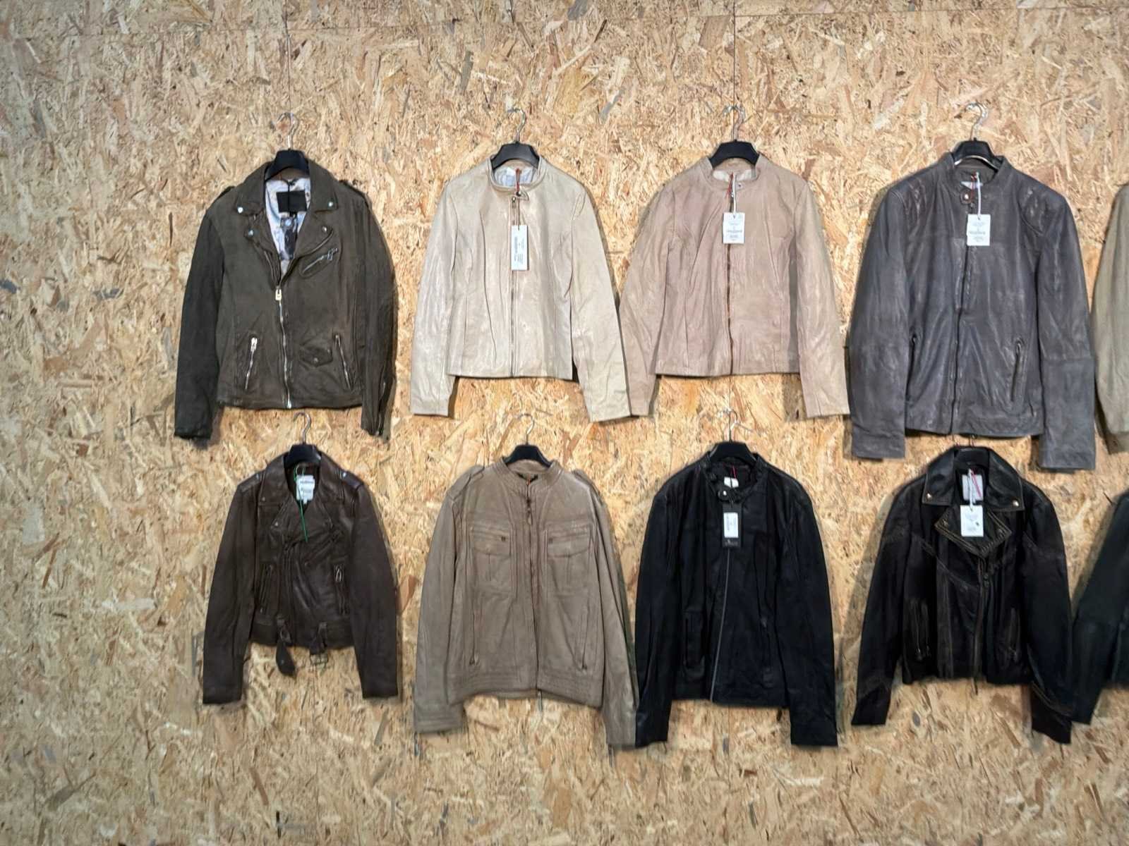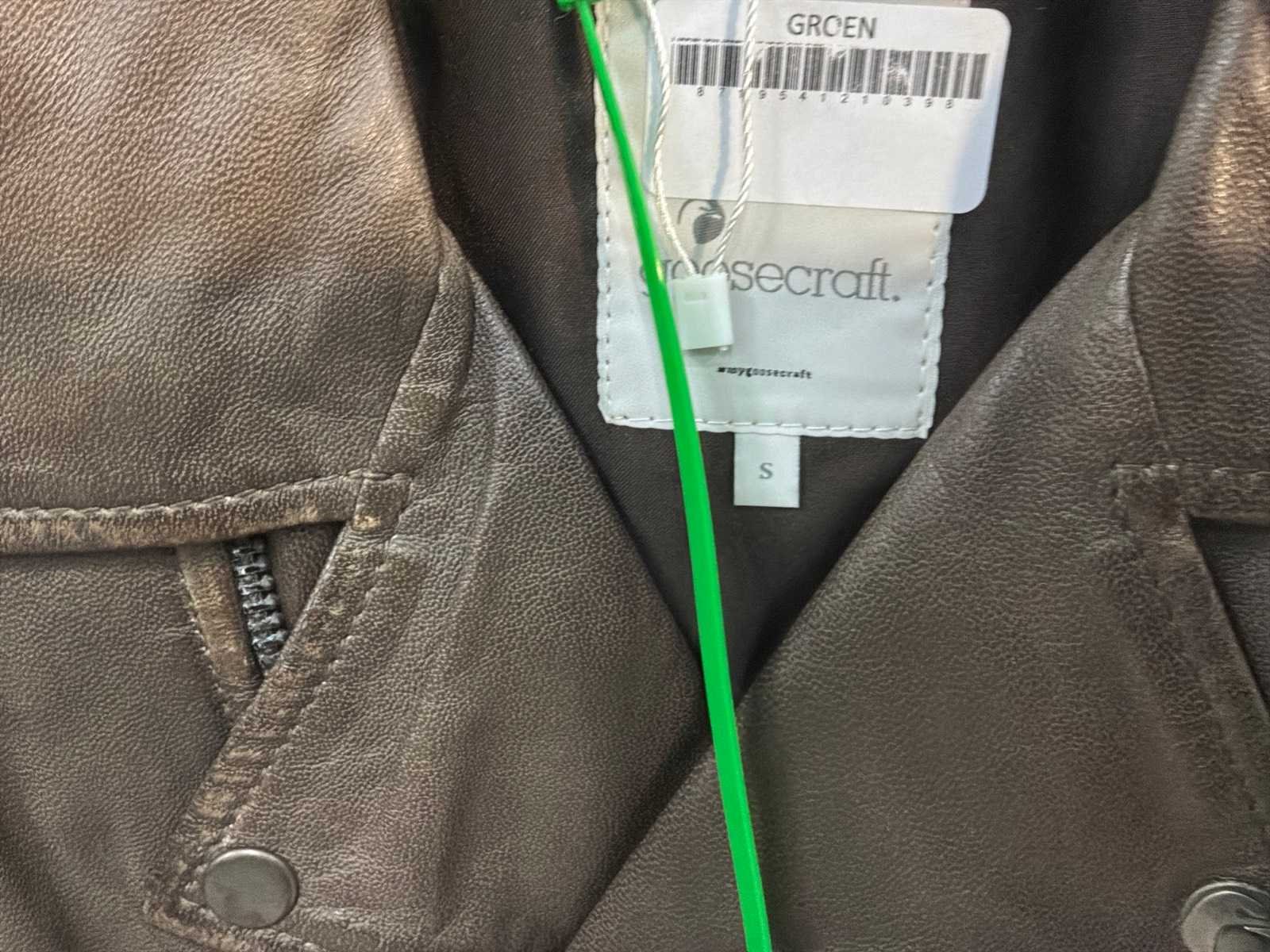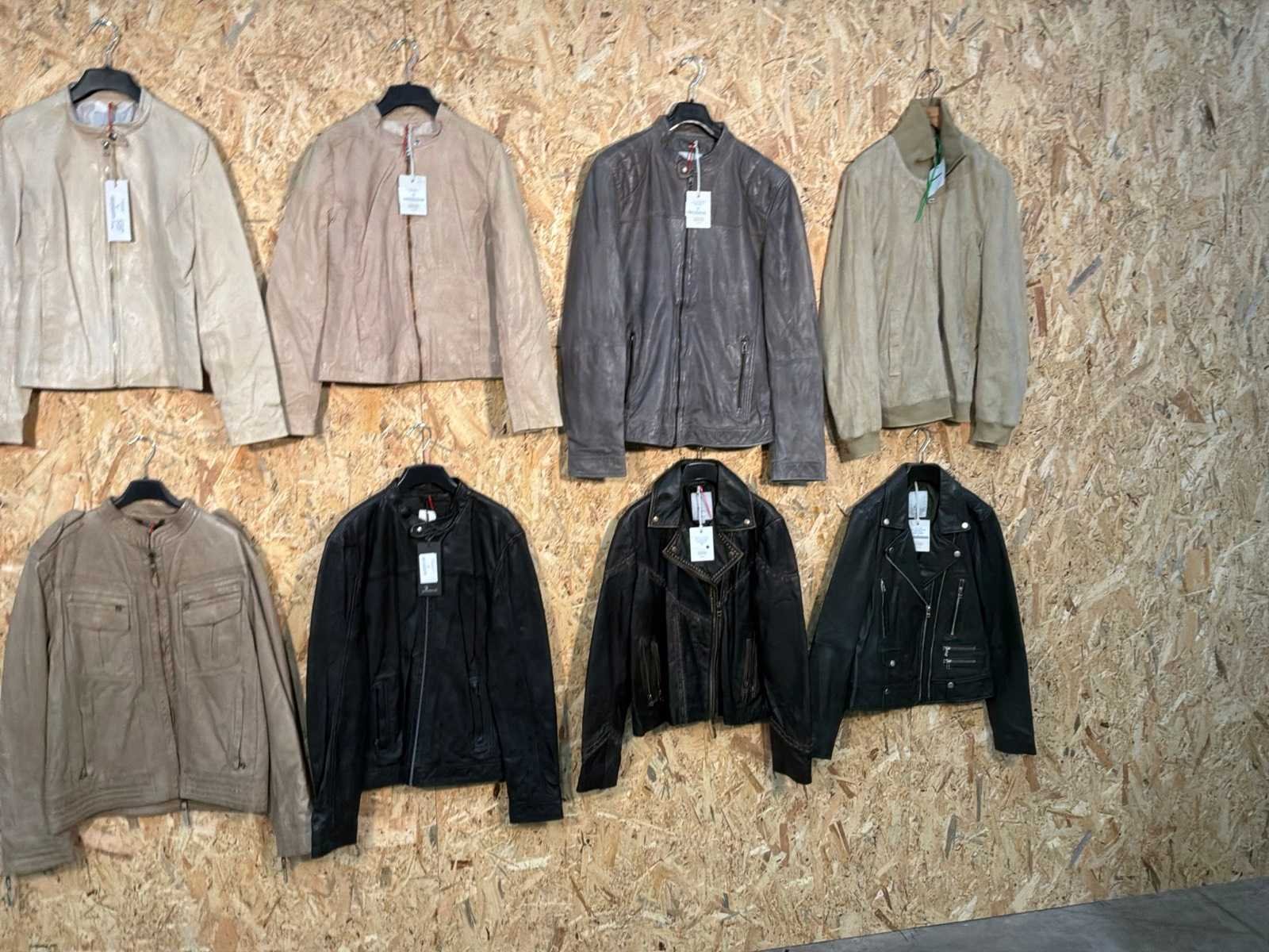Diverse heren/dames leren jassen in verschillende modellen, kleuren en maten. Inclusief kledinghangers. Mochten erop de items beveiligingstags zitten worden deze nog verwijderd voor de uitleverdag. Merk: Goose-craft