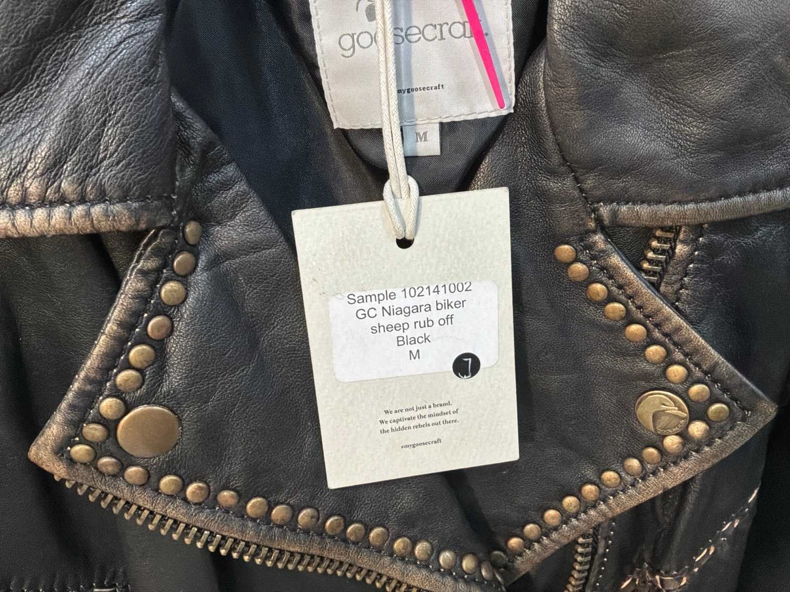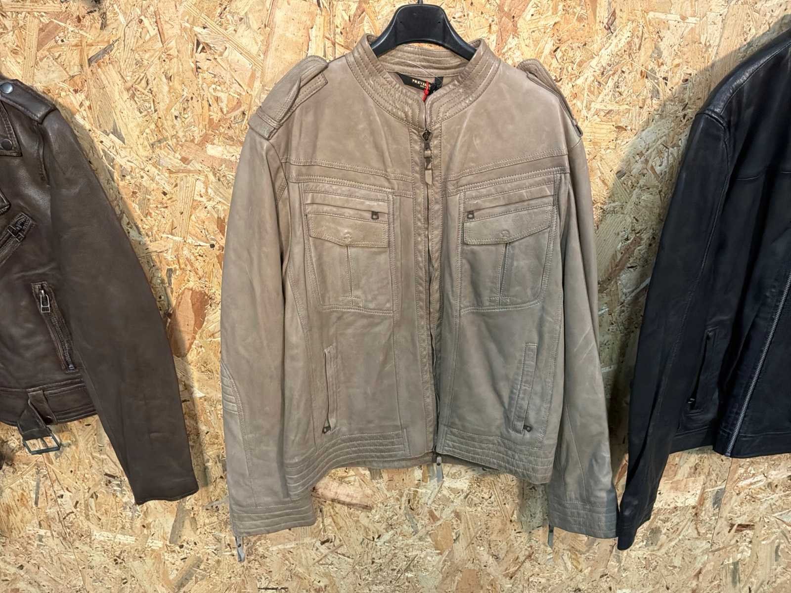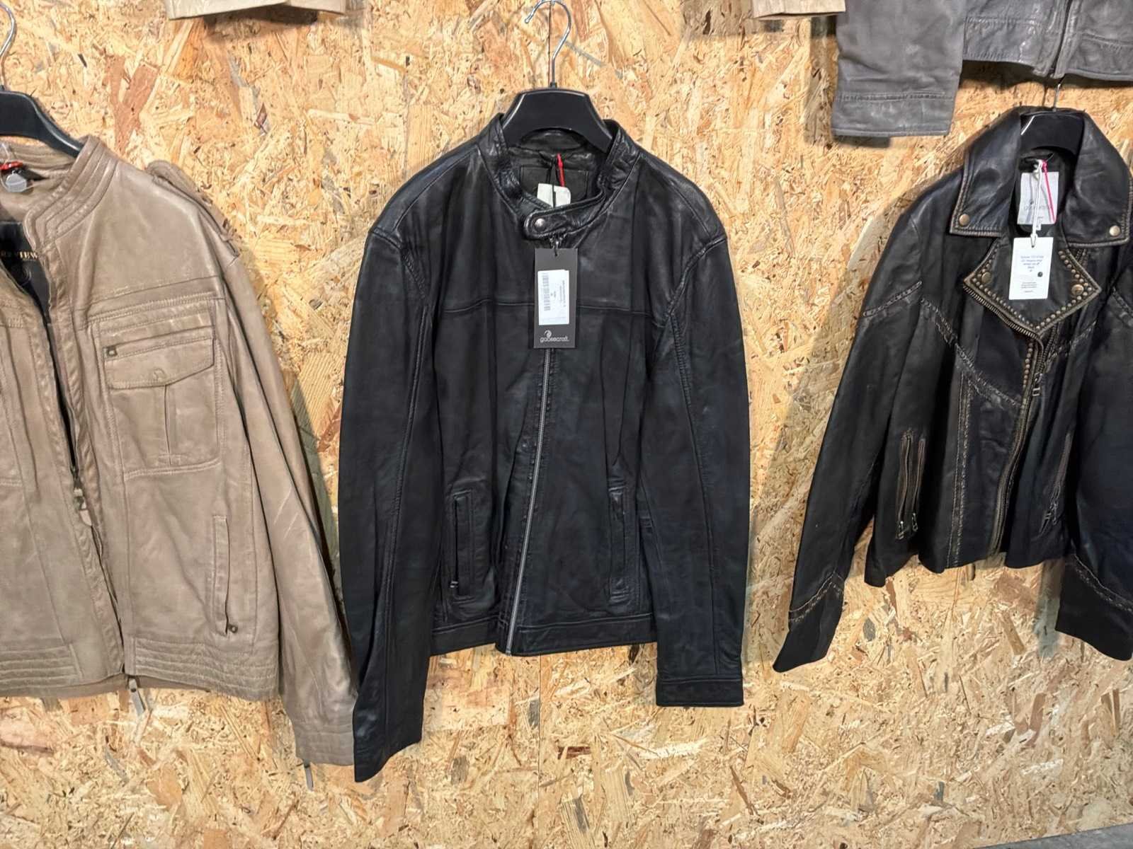 Diverse heren/dames leren jassen in verschillende modellen, kleuren en maten. Inclusief kledinghangers. Mochten erop de items beveiligingstags zitten worden deze nog verwijderd voor de uitleverdag. Merk: Goose-craft
