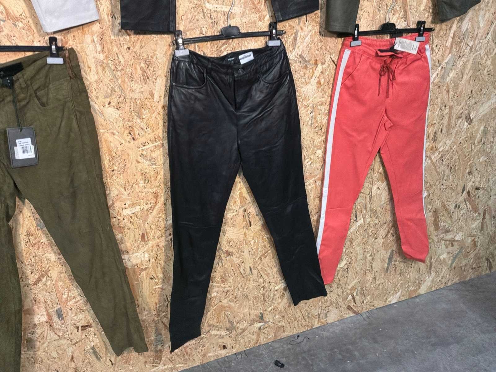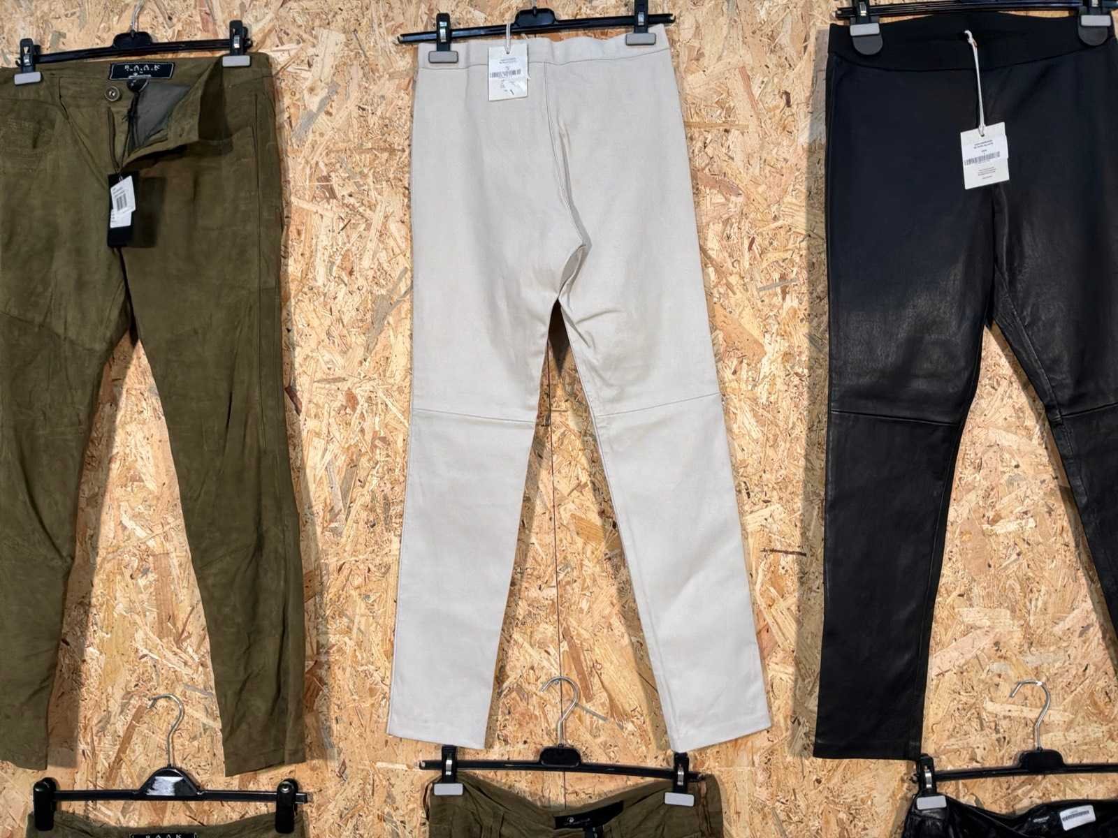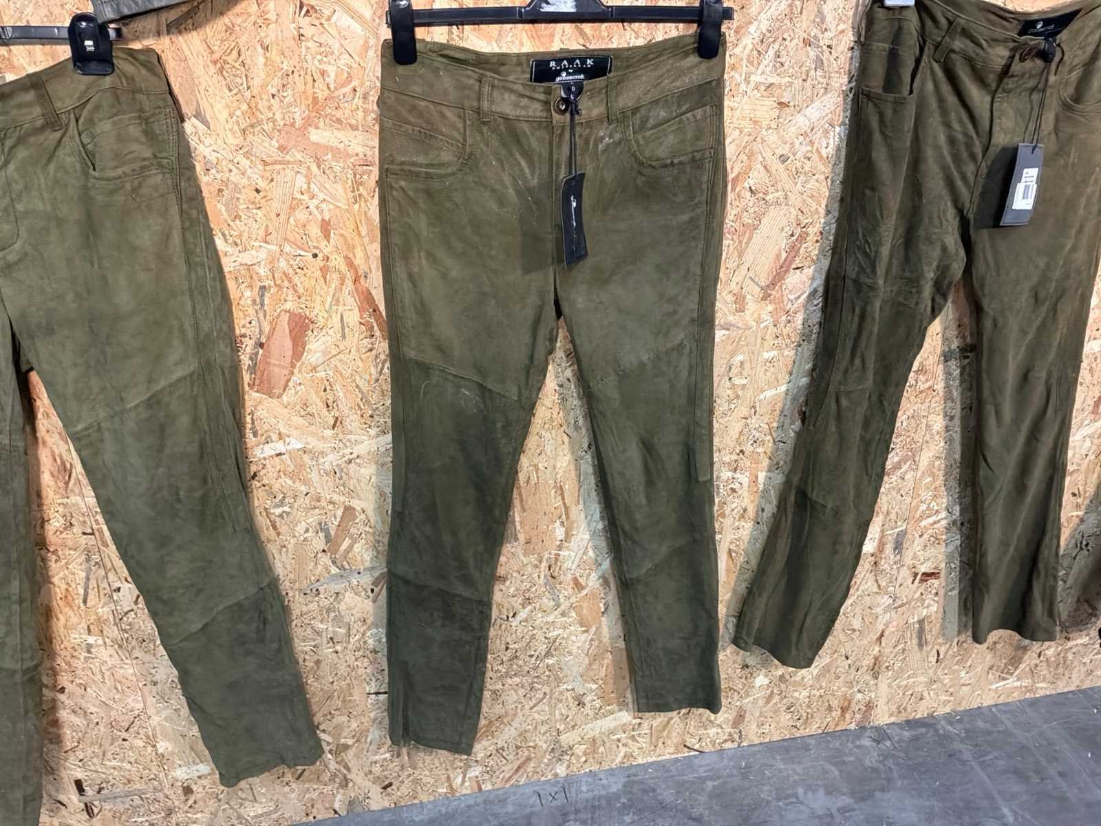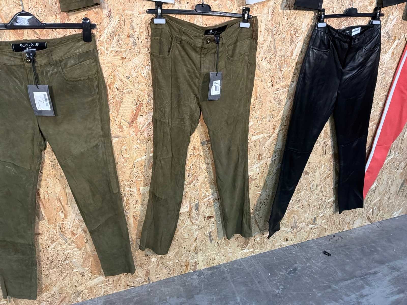 Leren en suede broeken van het merk Goosecraft. Verschillende modellen kleuren en maten. Zie foto’s Mochten erop de items beveiligingstags zitten worden deze nog verwijderd voor de uitleverdag. Merk: Goose-craft Model: Leer/suede