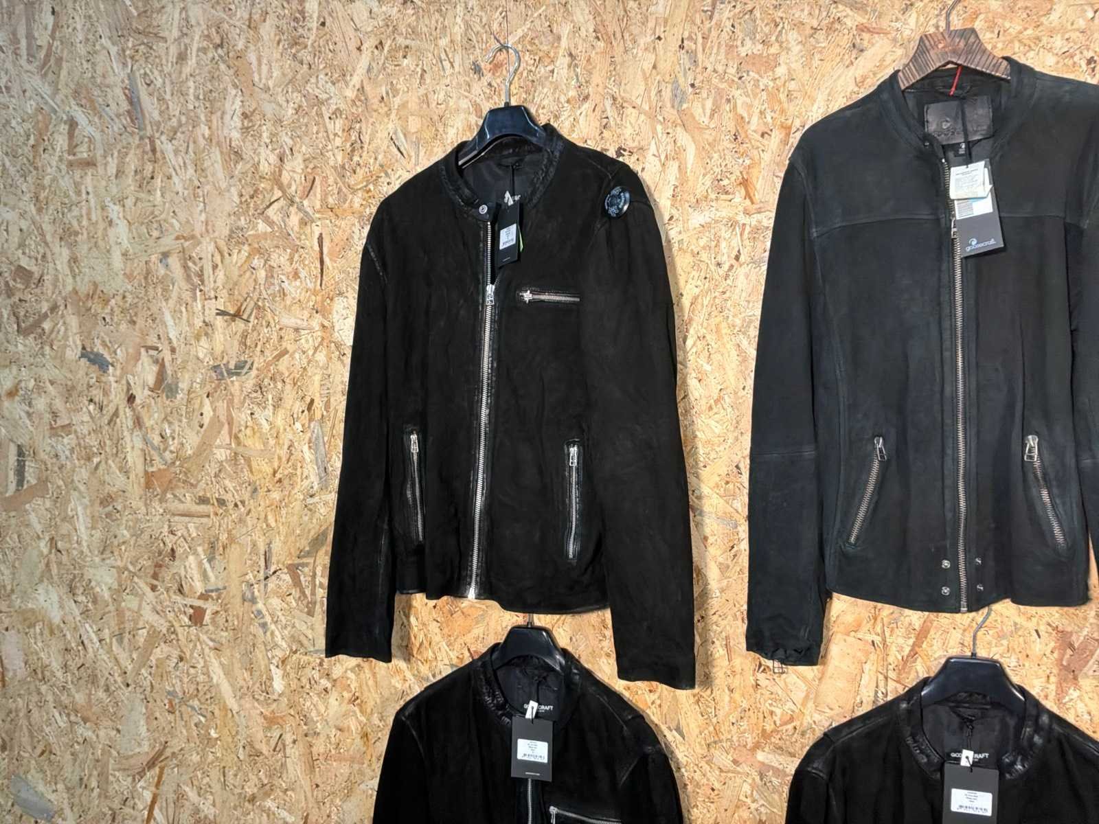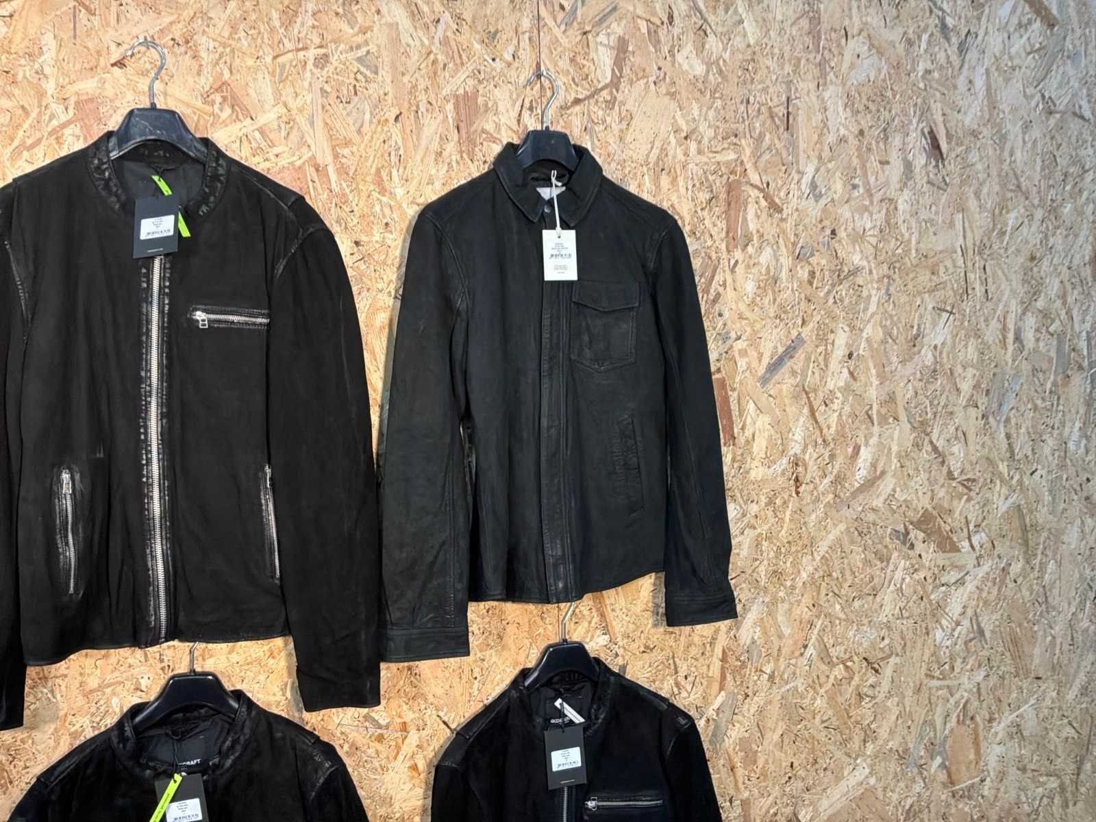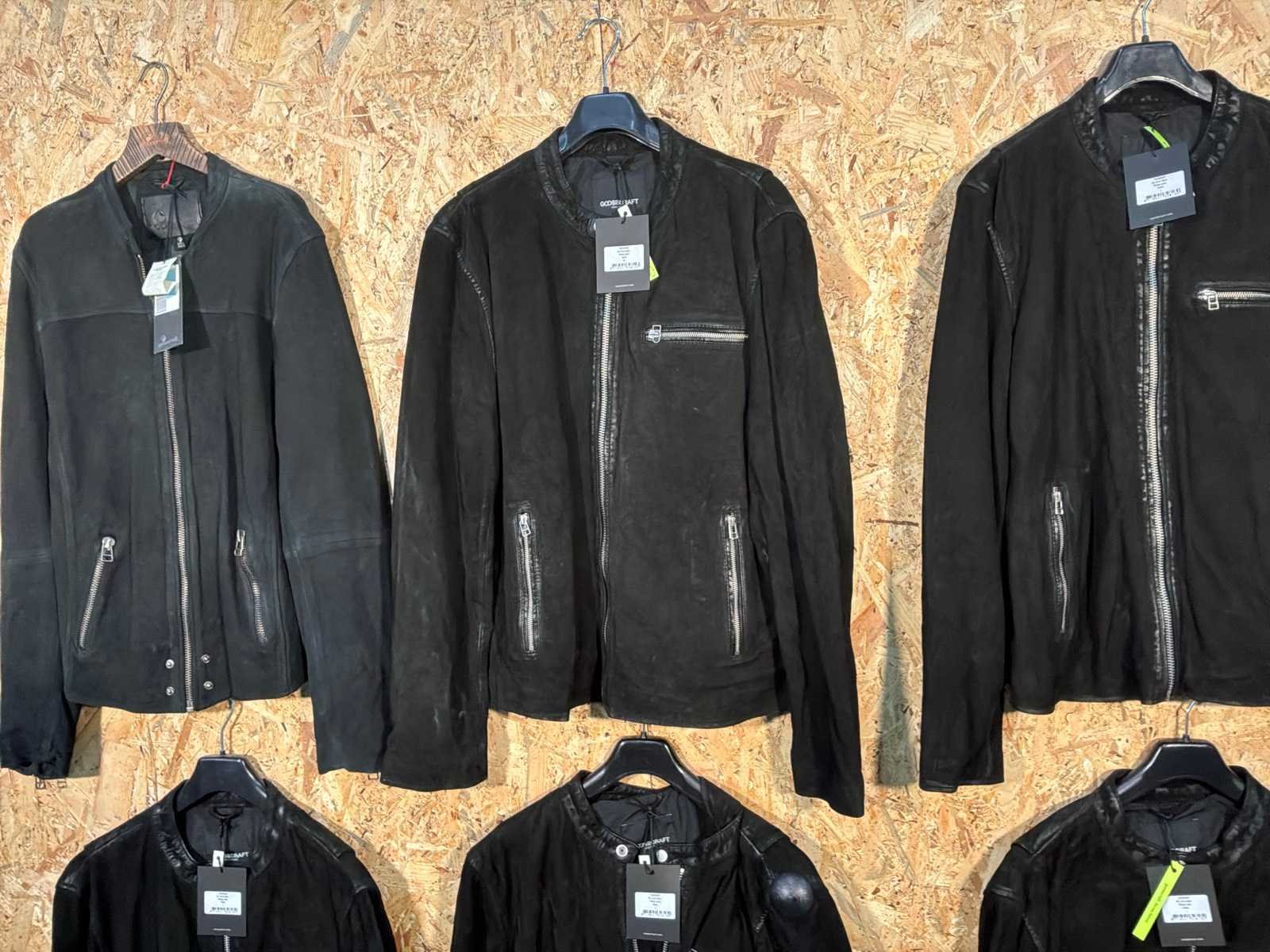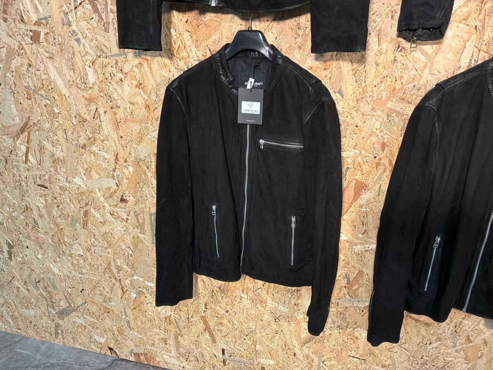 Diverse heren leren jassen in verschillende modellen, kleuren en maten. Inclusief kledinghangers. Mochten erop de items beveiligingstags zitten worden deze nog verwijderd voor de uitleverdag. Merk: Goose-craft