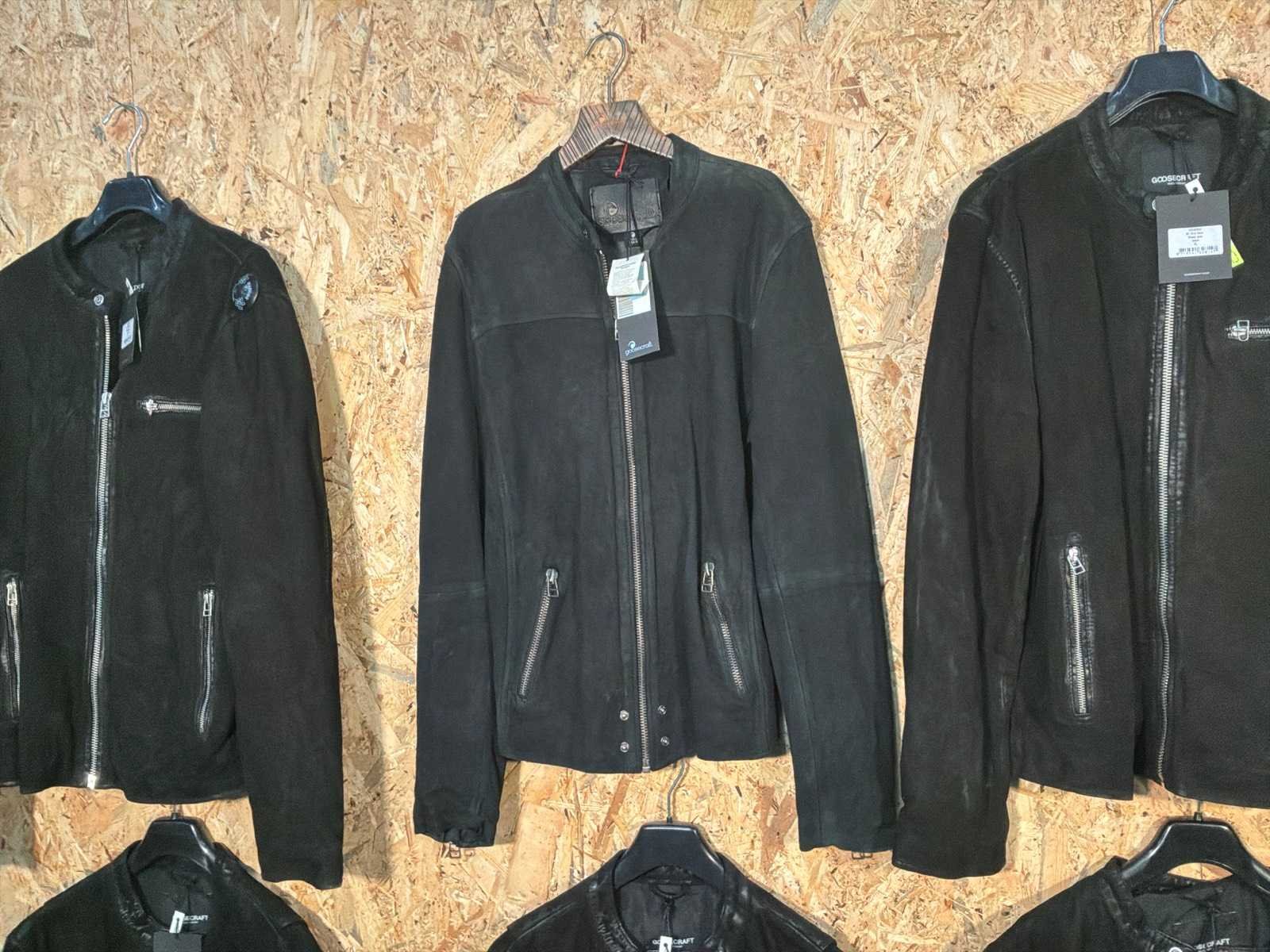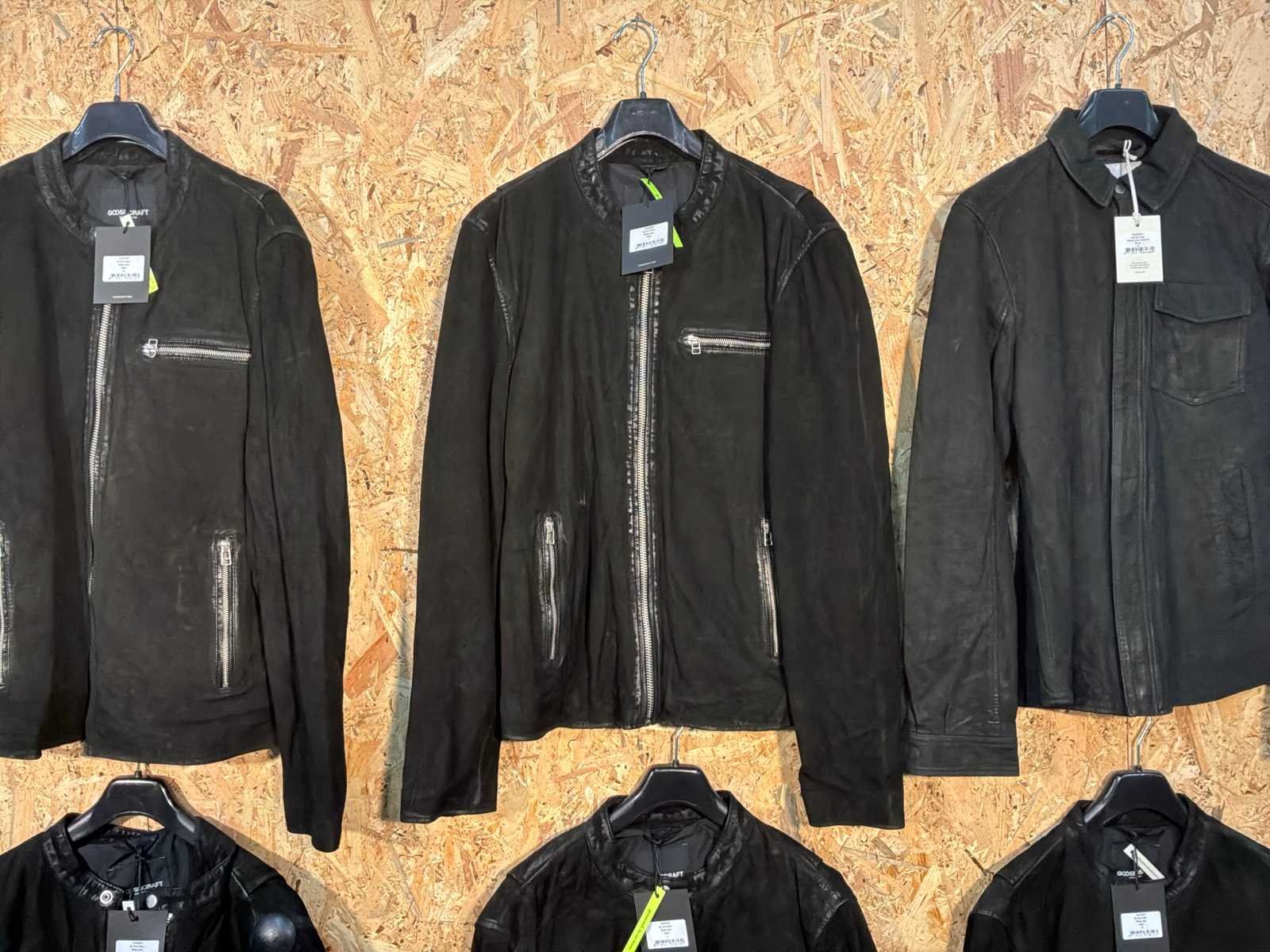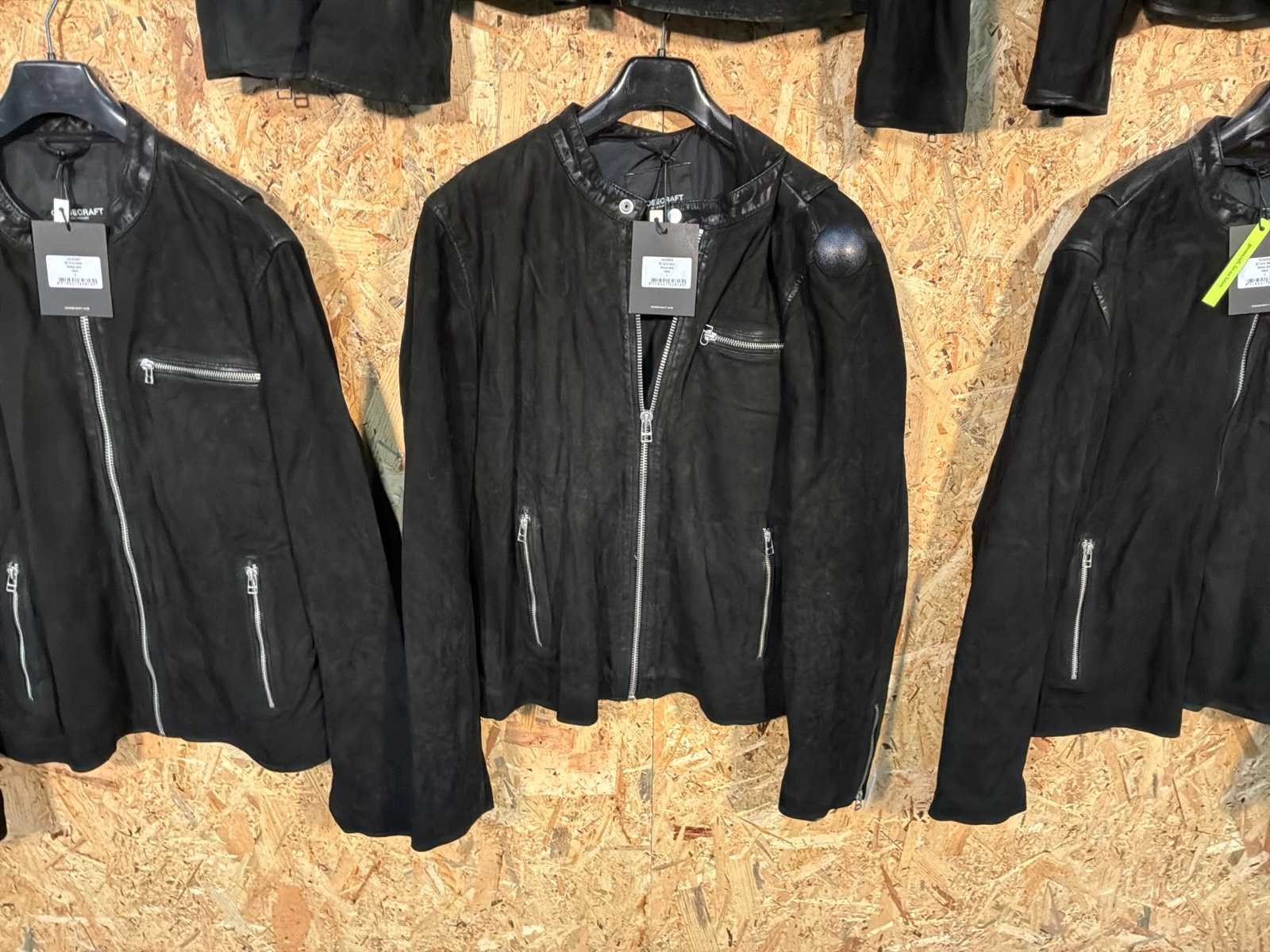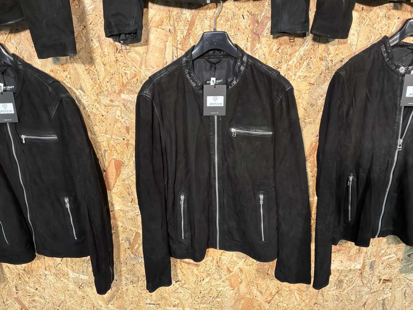 Diverse heren leren jassen in verschillende modellen, kleuren en maten. Inclusief kledinghangers. Mochten erop de items beveiligingstags zitten worden deze nog verwijderd voor de uitleverdag. Merk: Goose-craft