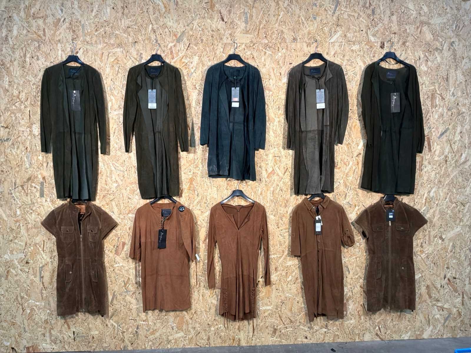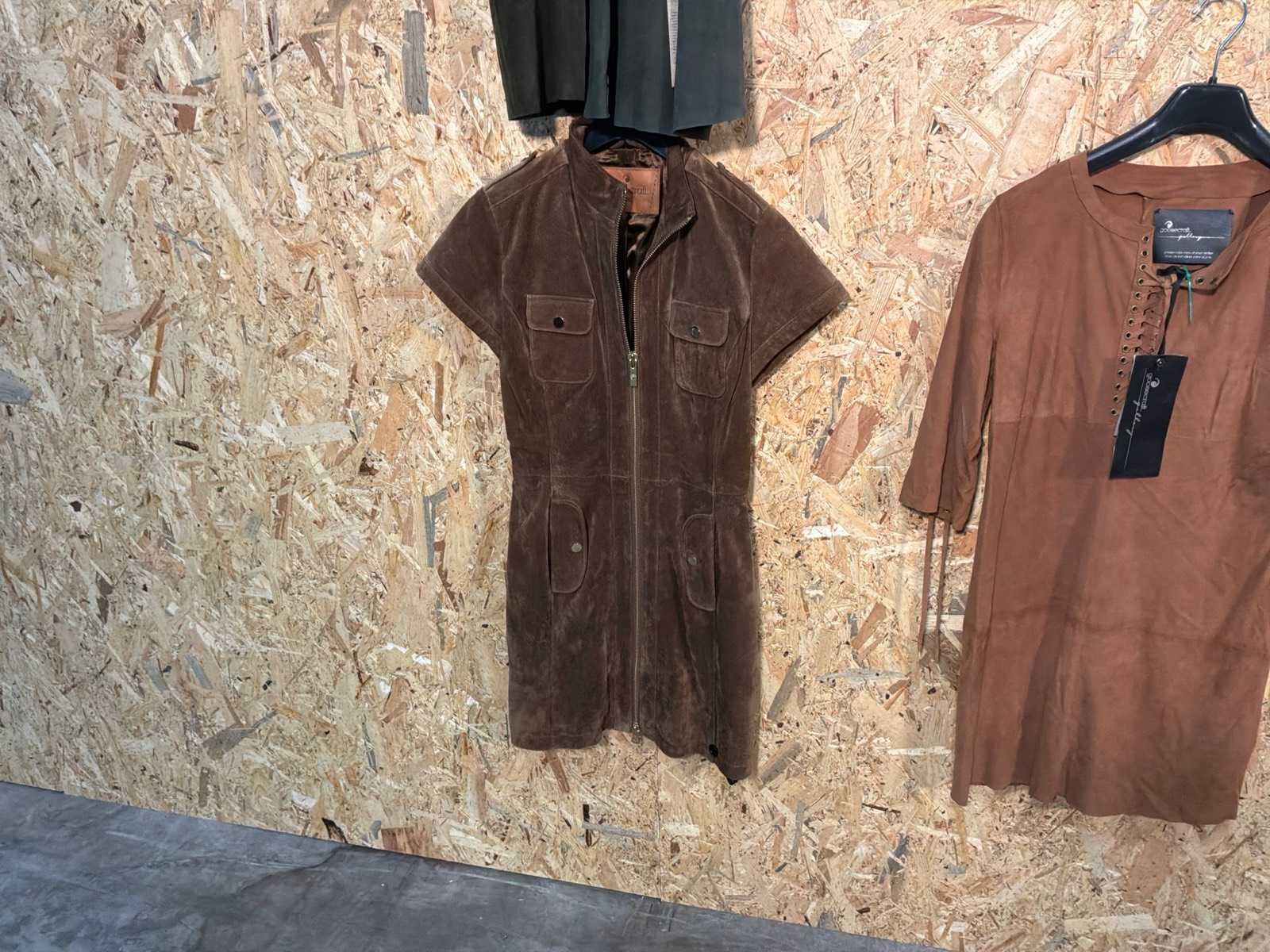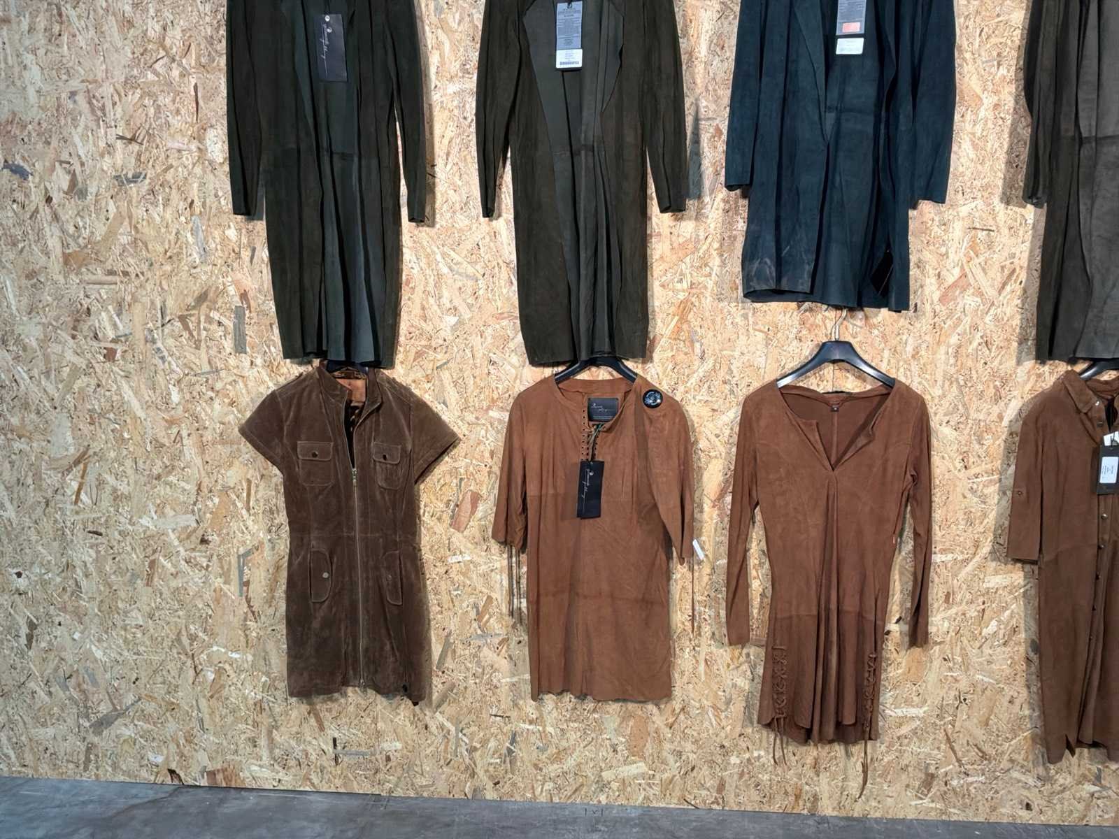 Diverse leren dames jurken in verschillende modellen, kleuren en maten. Inclusief kledinghangers. Mochten erop de items beveiligingstags zitten worden deze nog verwijderd voor de uitleverdag. Merk: Goose-craft