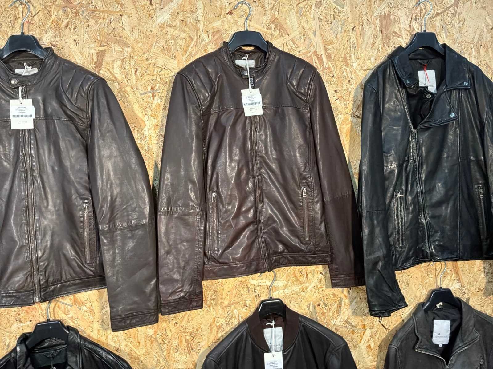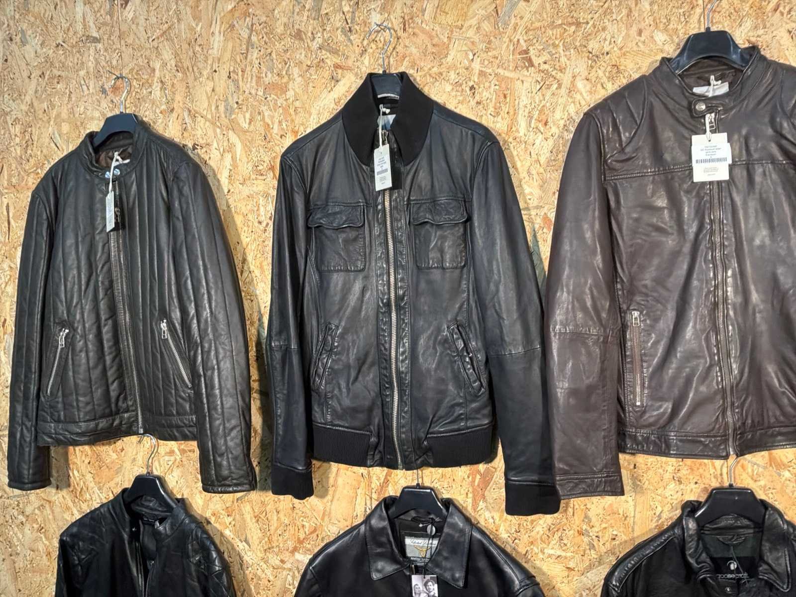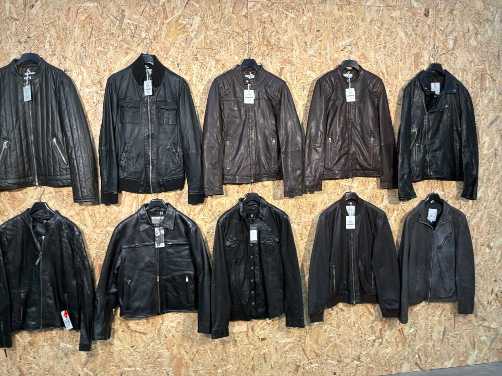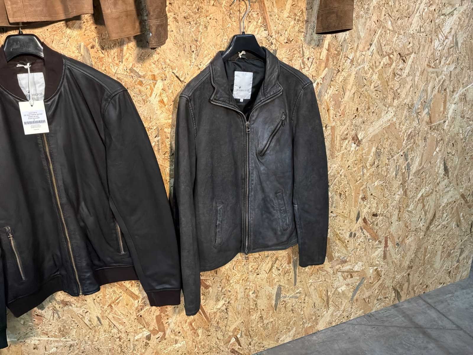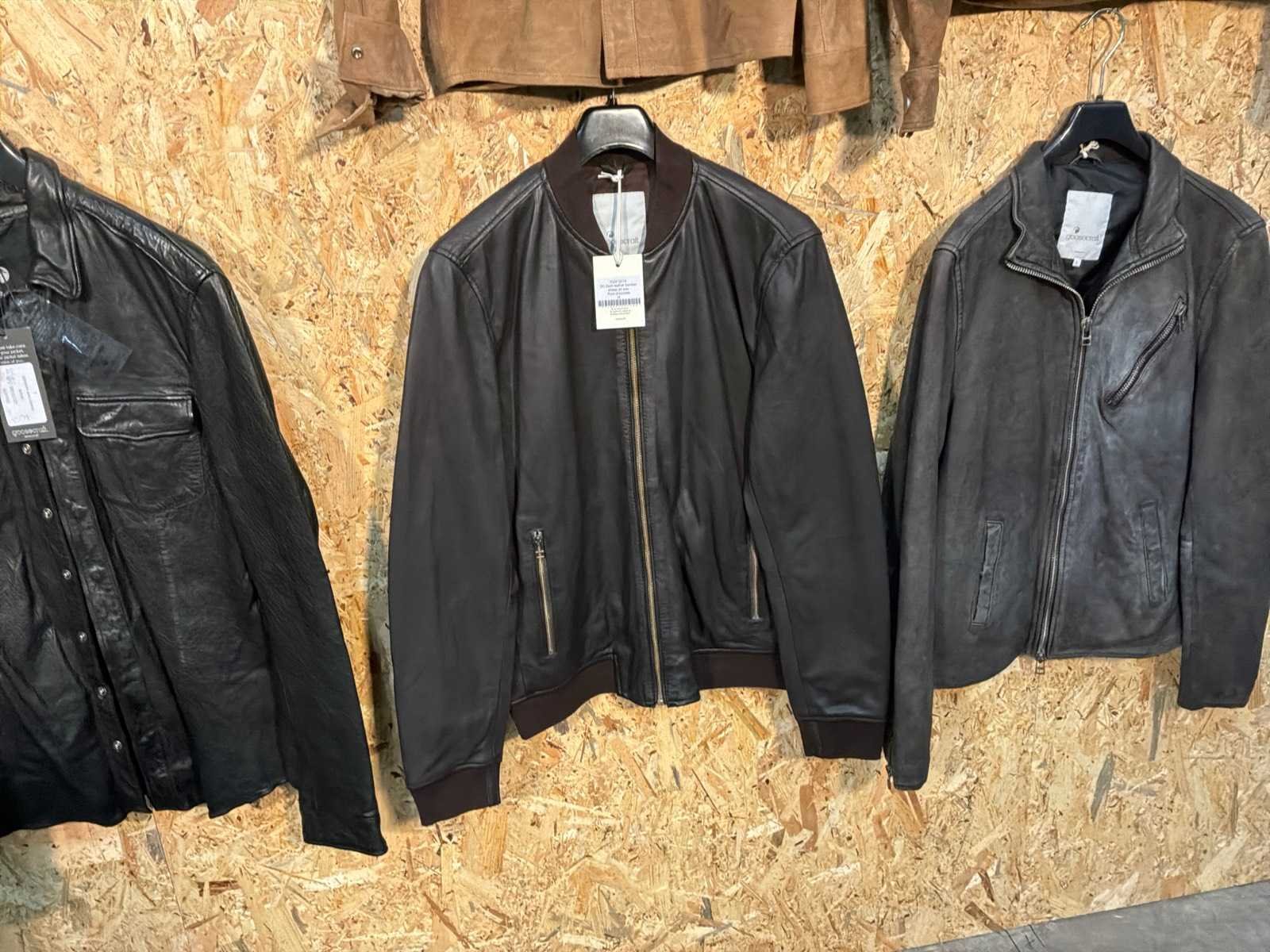 Diverse heren leren jassen in verschillende modellen, kleuren en maten. Inclusief kledinghangers. Mochten erop de items beveiligingstags zitten worden deze nog verwijderd voor de uitleverdag. Merk: Goose-craft