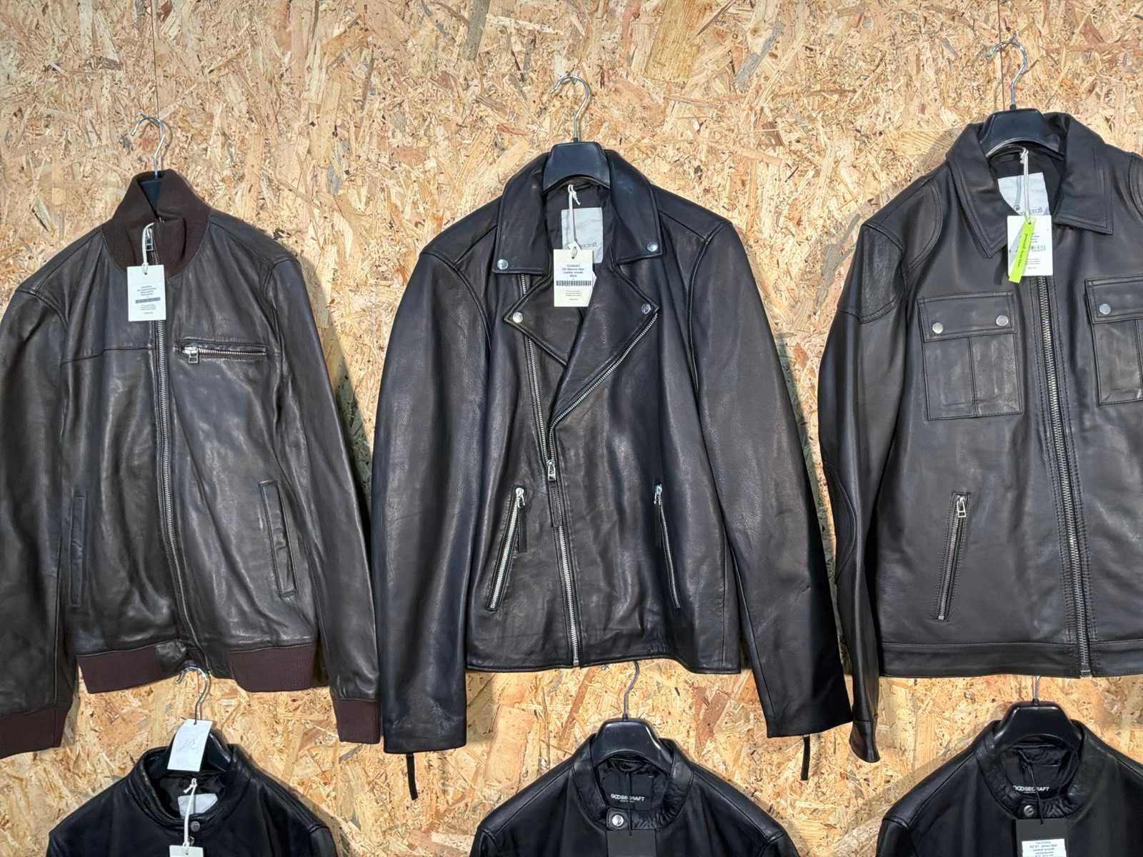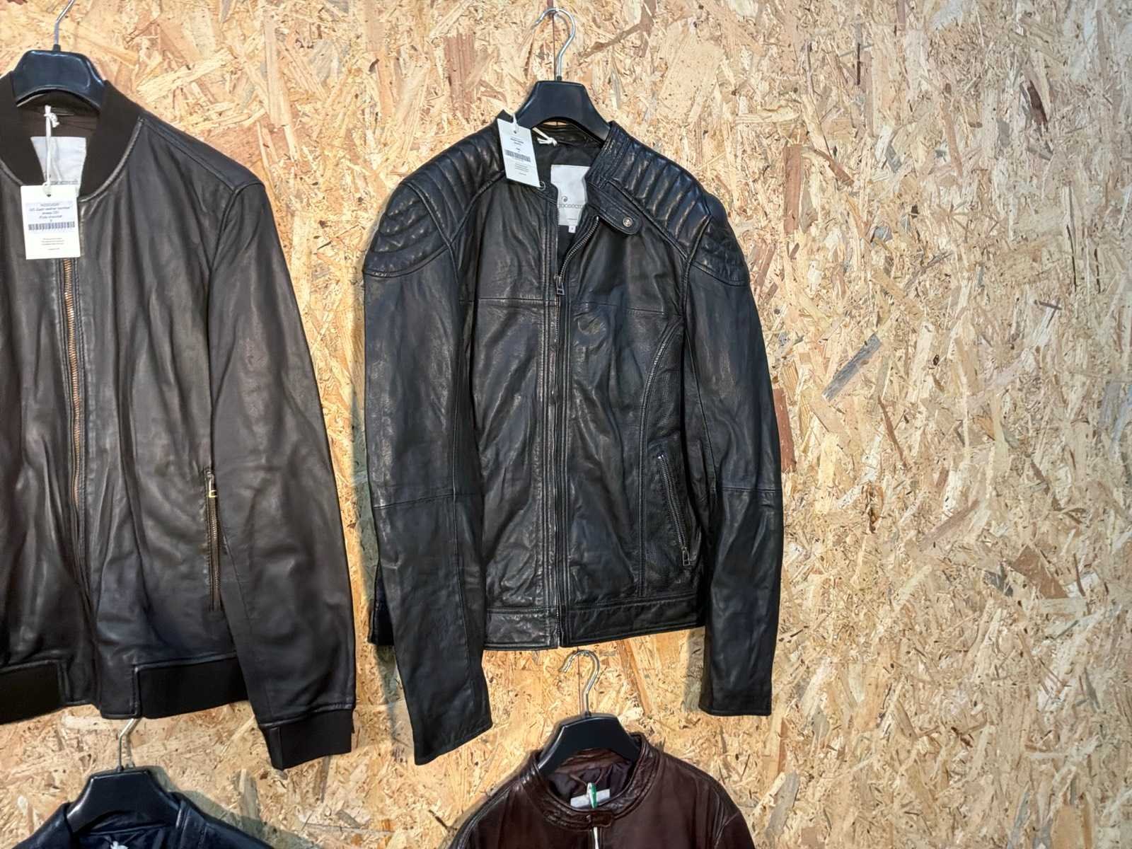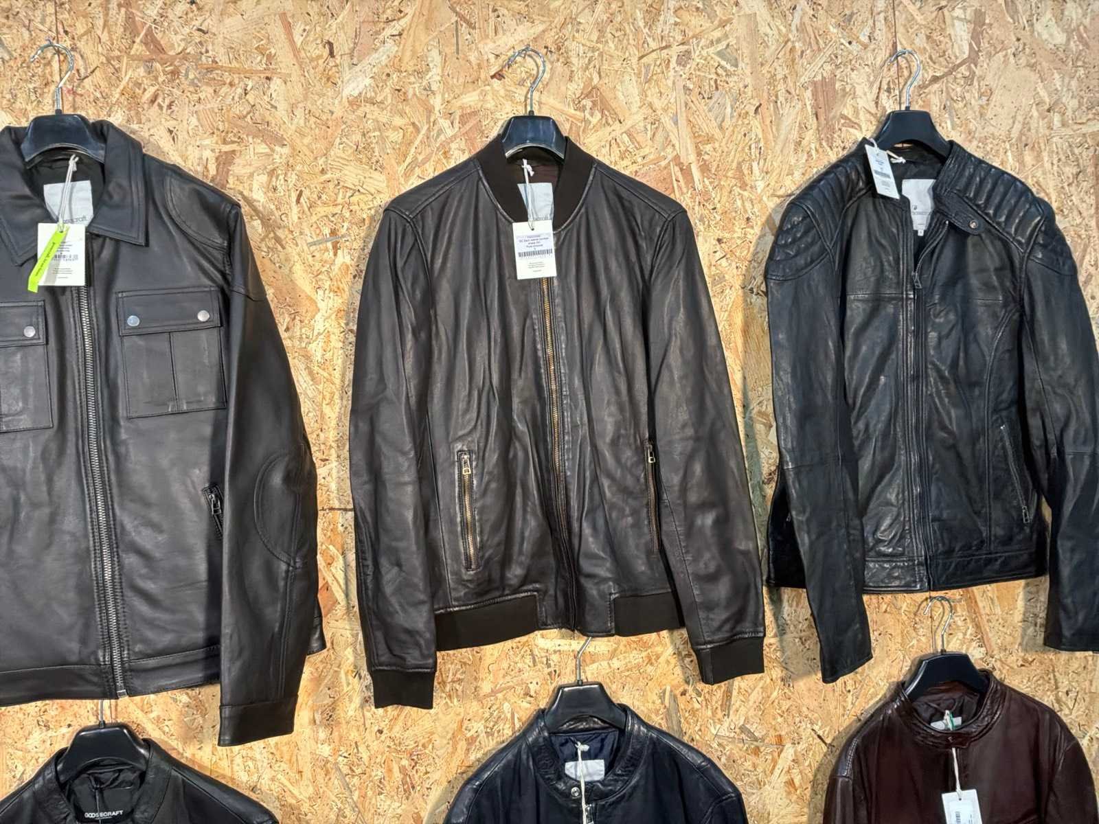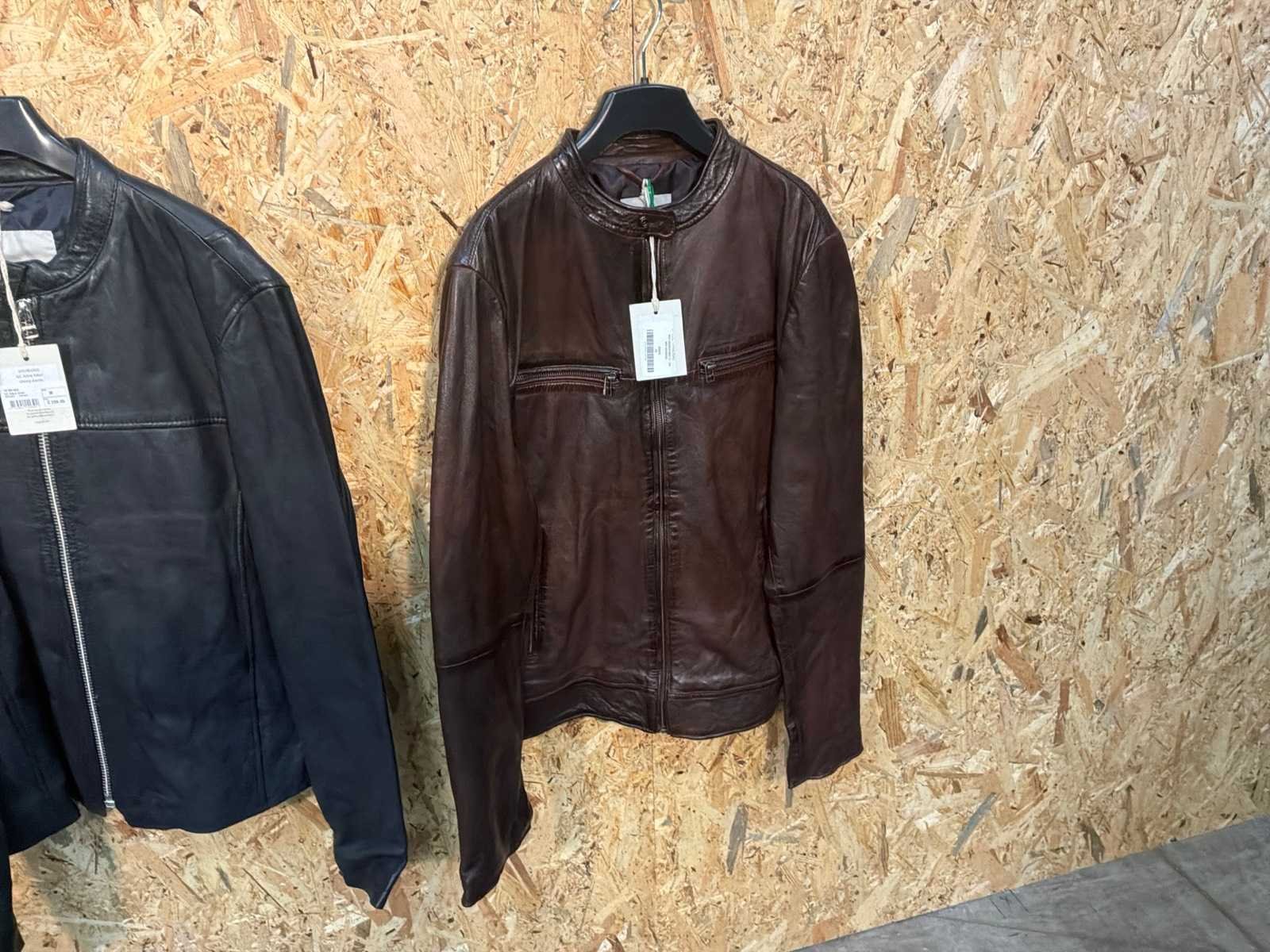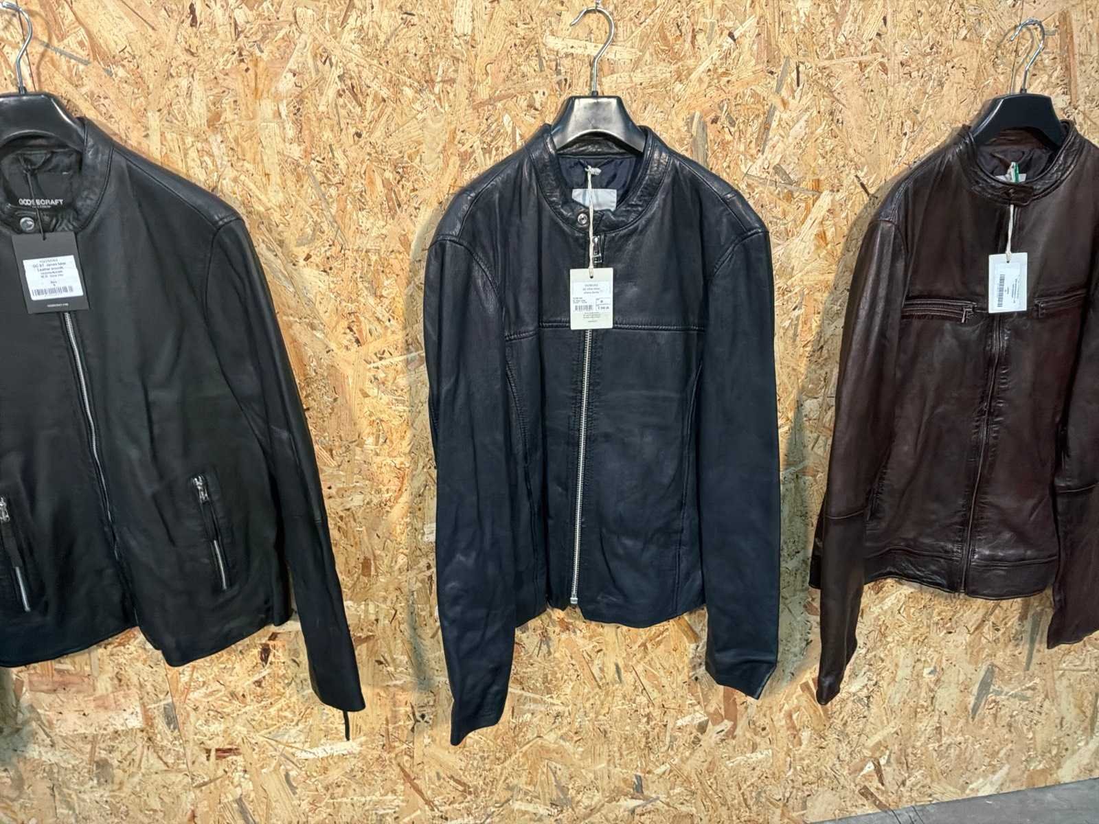 Diverse heren leren jassen in verschillende modellen, kleuren en maten. Inclusief kledinghangers. Mochten erop de items beveiligingstags zitten worden deze nog verwijderd voor de uitleverdag. Merk: Goose-craft