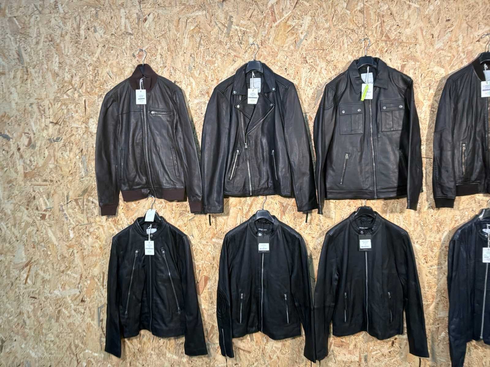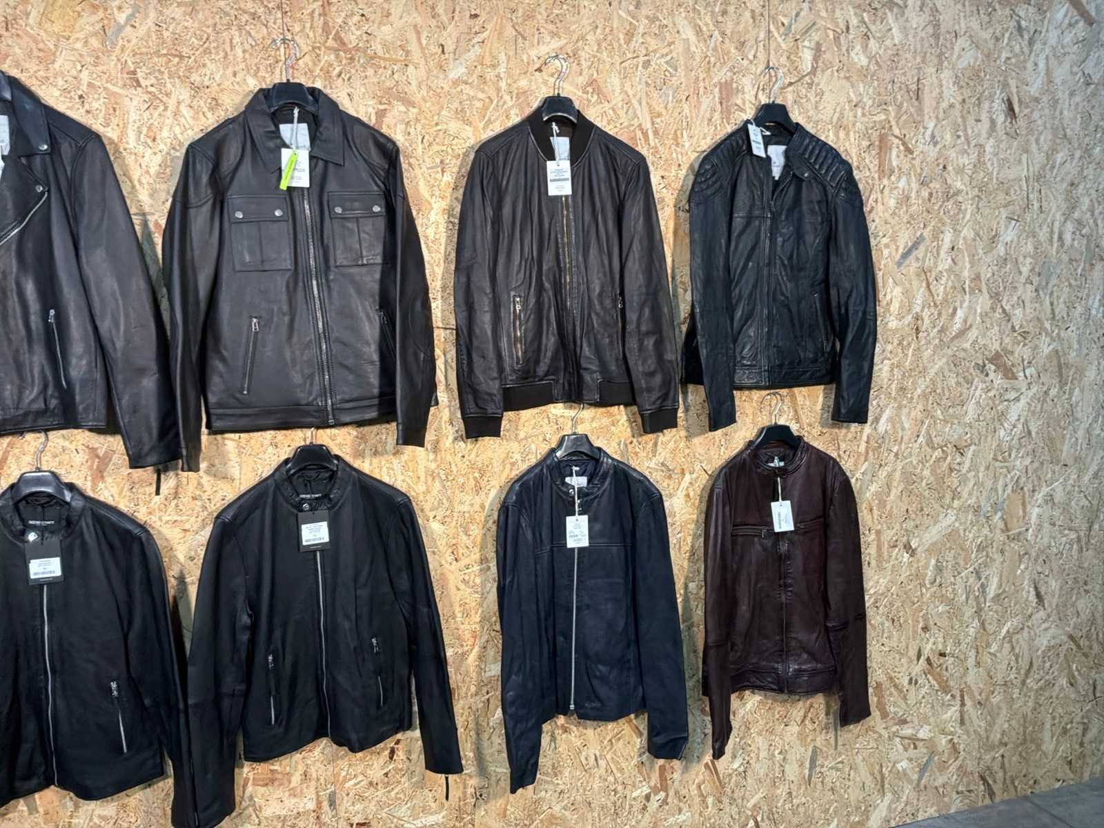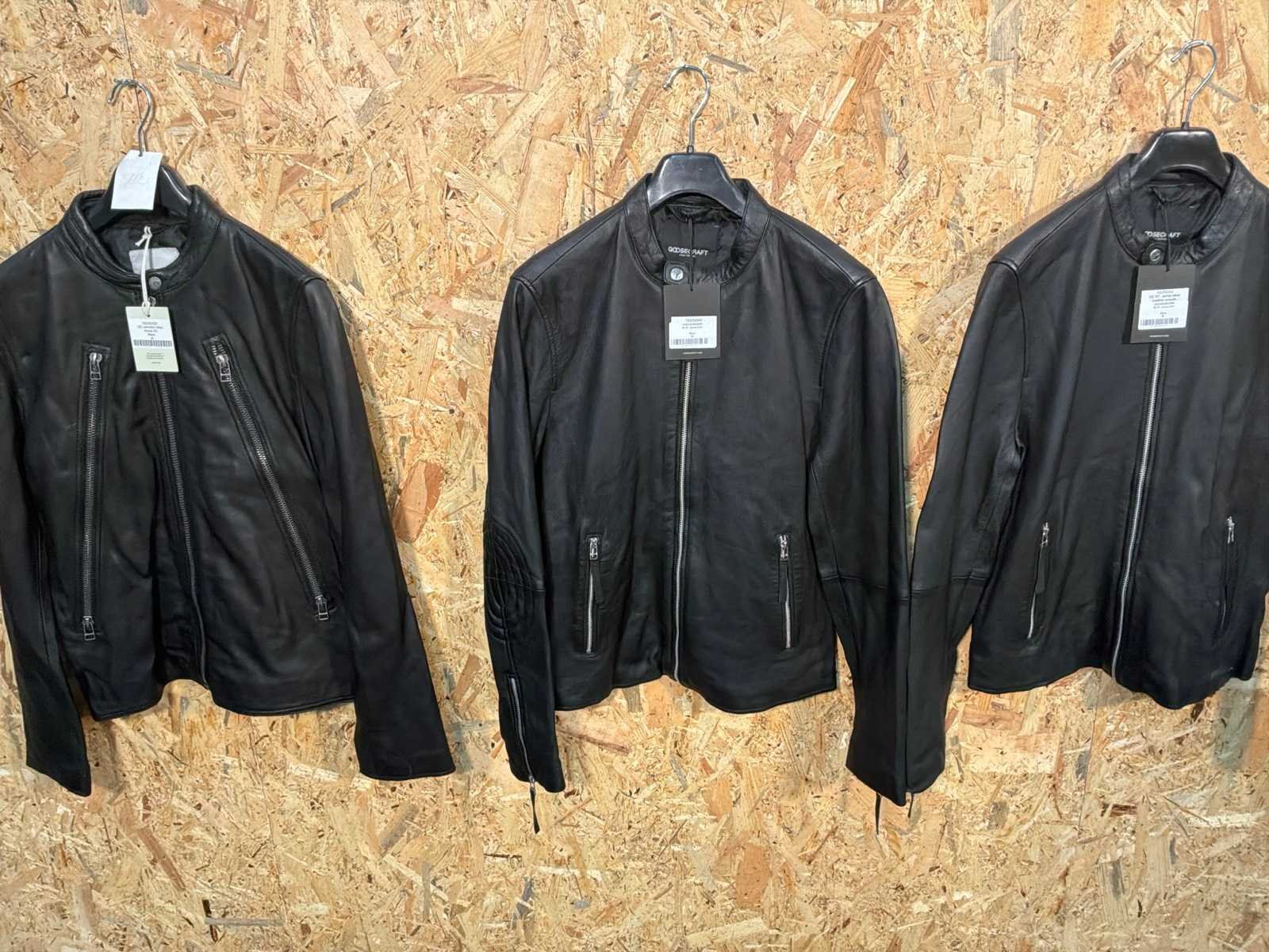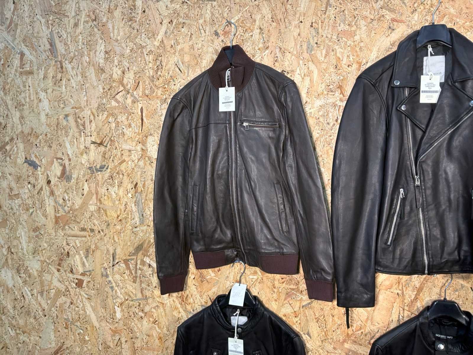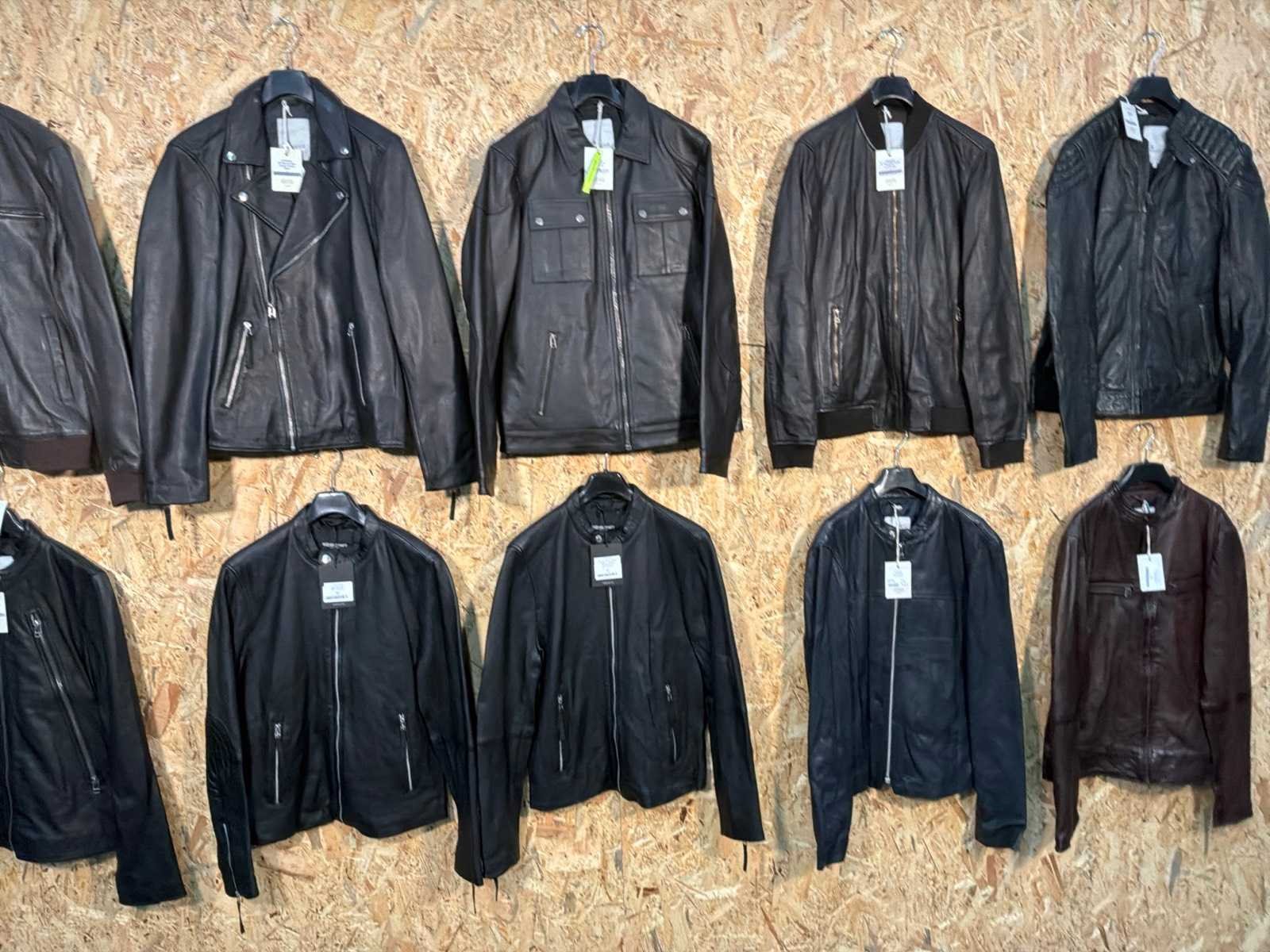 Diverse heren leren jassen in verschillende modellen, kleuren en maten. Inclusief kledinghangers. Mochten erop de items beveiligingstags zitten worden deze nog verwijderd voor de uitleverdag. Merk: Goose-craft