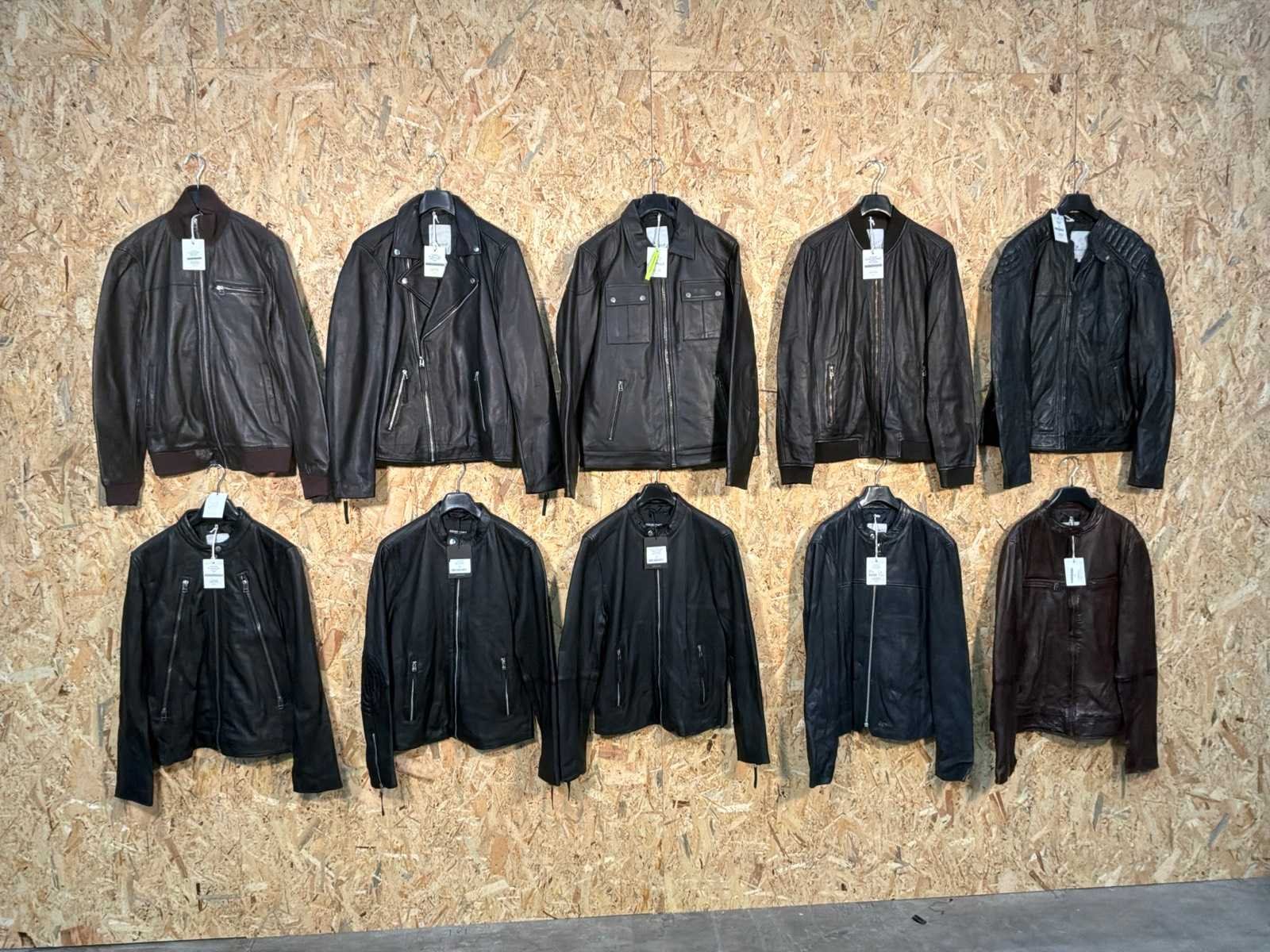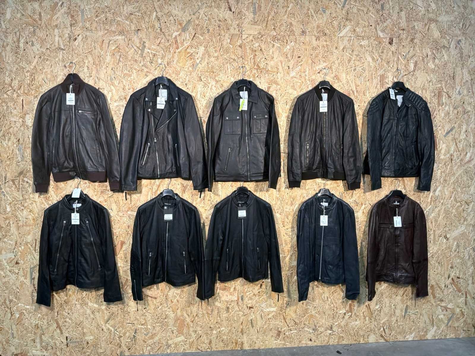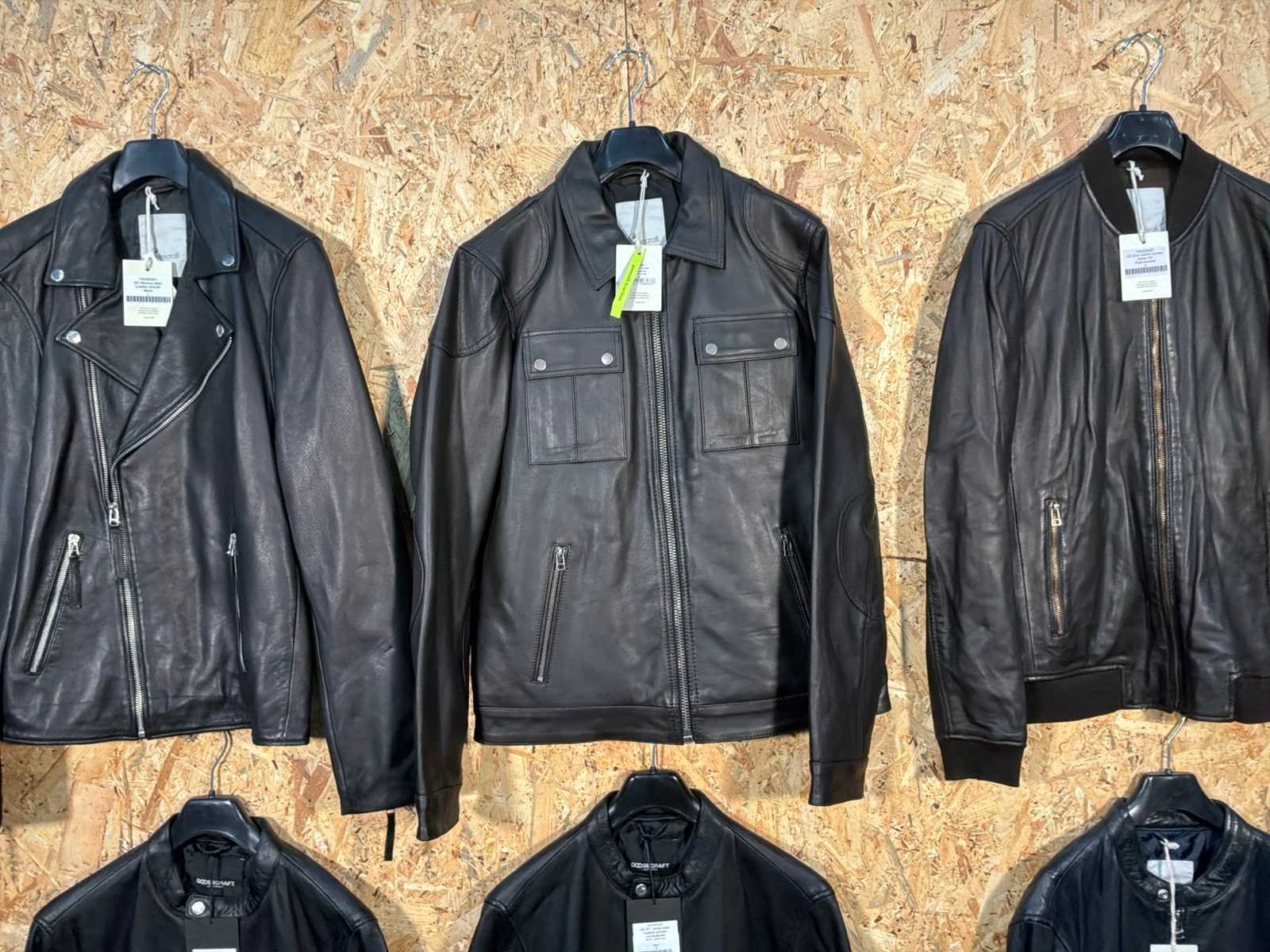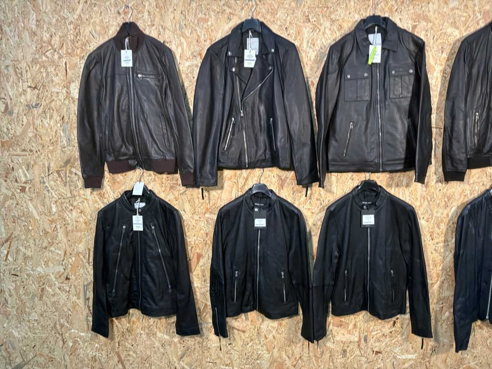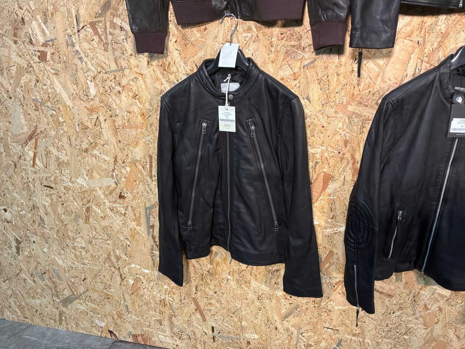 Diverse heren leren jassen in verschillende modellen, kleuren en maten. Inclusief kledinghangers. Mochten erop de items beveiligingstags zitten worden deze nog verwijderd voor de uitleverdag. Merk: Goose-craft