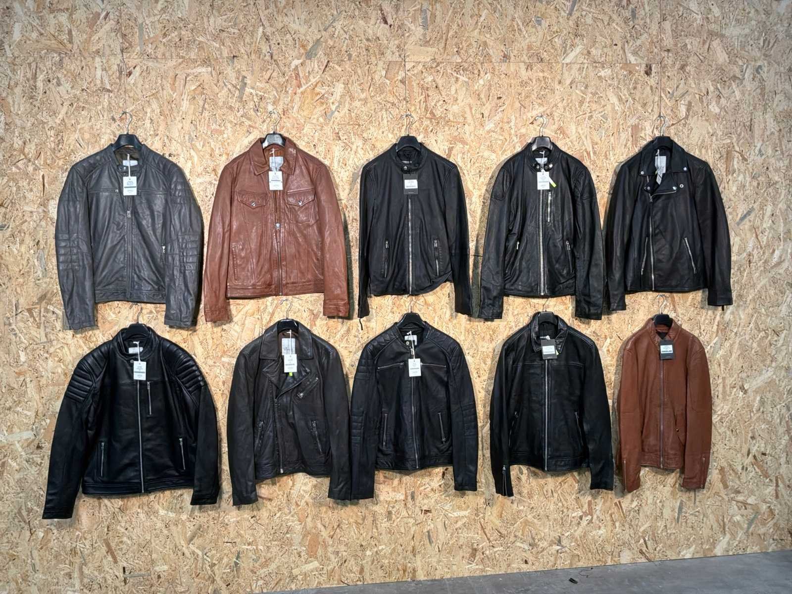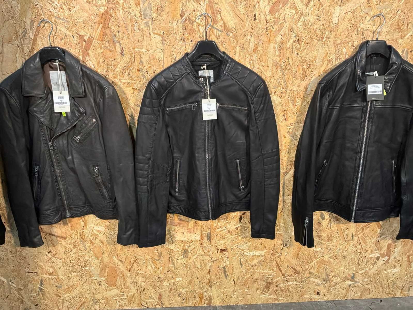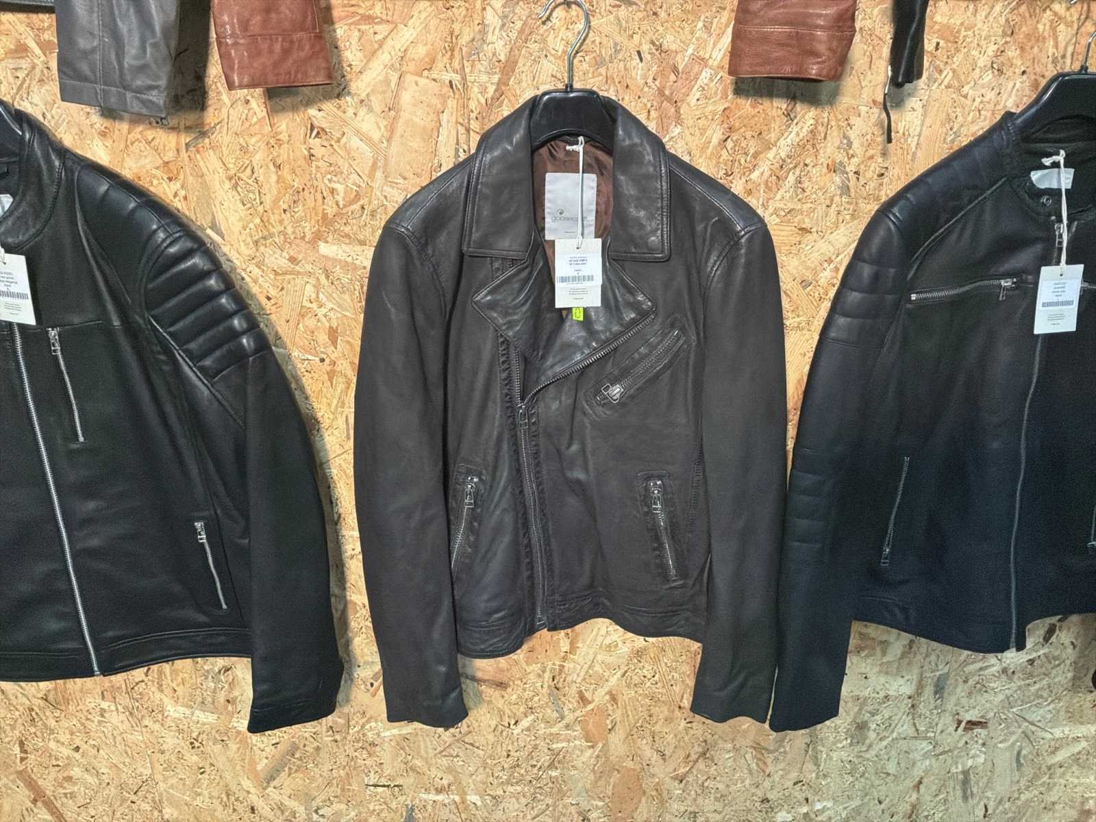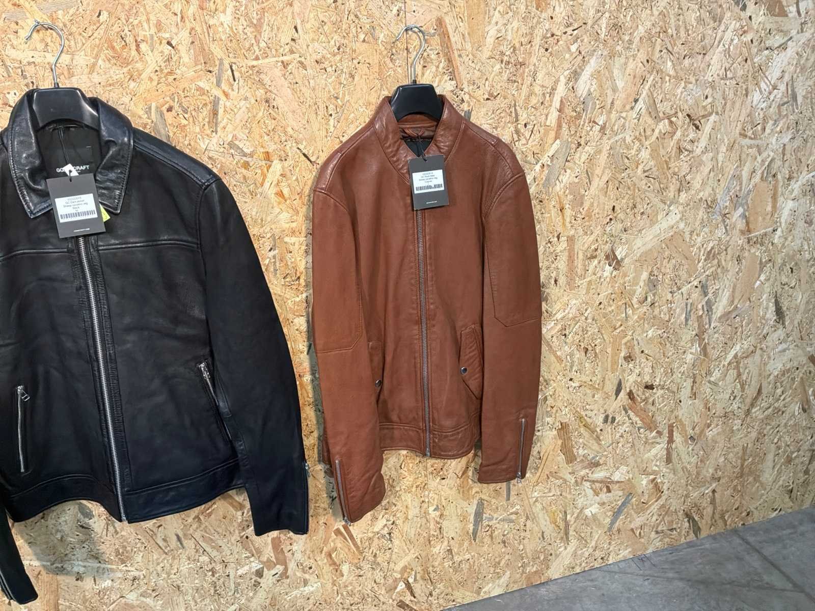 Diverse heren leren jassen in verschillende modellen, kleuren en maten. Inclusief kledinghangers. Mochten erop de items beveiligingstags zitten worden deze nog verwijderd voor de uitleverdag. Merk: Goose-craft