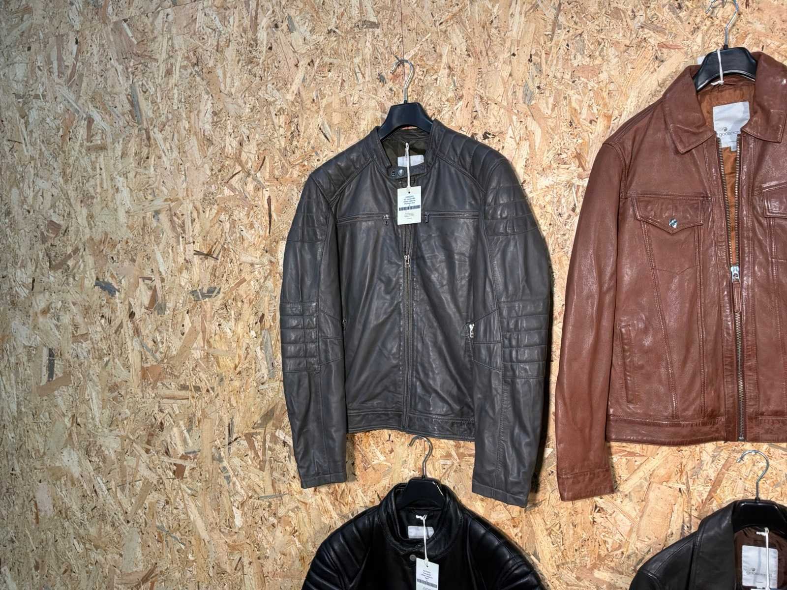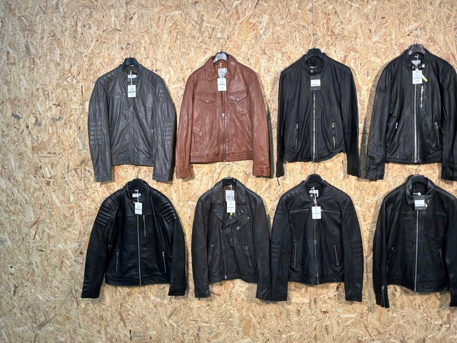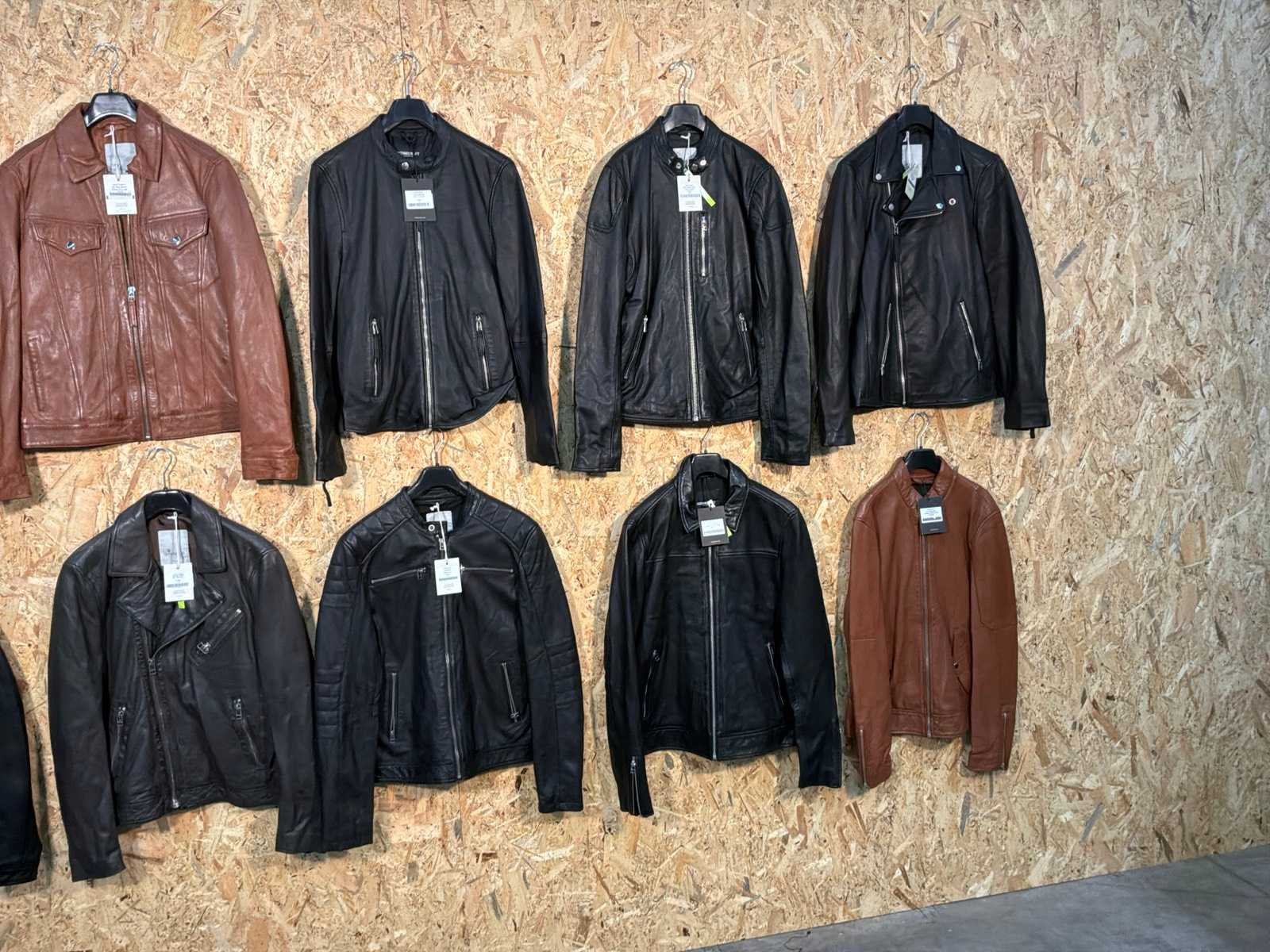 Diverse heren leren jassen in verschillende modellen, kleuren en maten. Inclusief kledinghangers. Mochten erop de items beveiligingstags zitten worden deze nog verwijderd voor de uitleverdag. Merk: Goose-craft