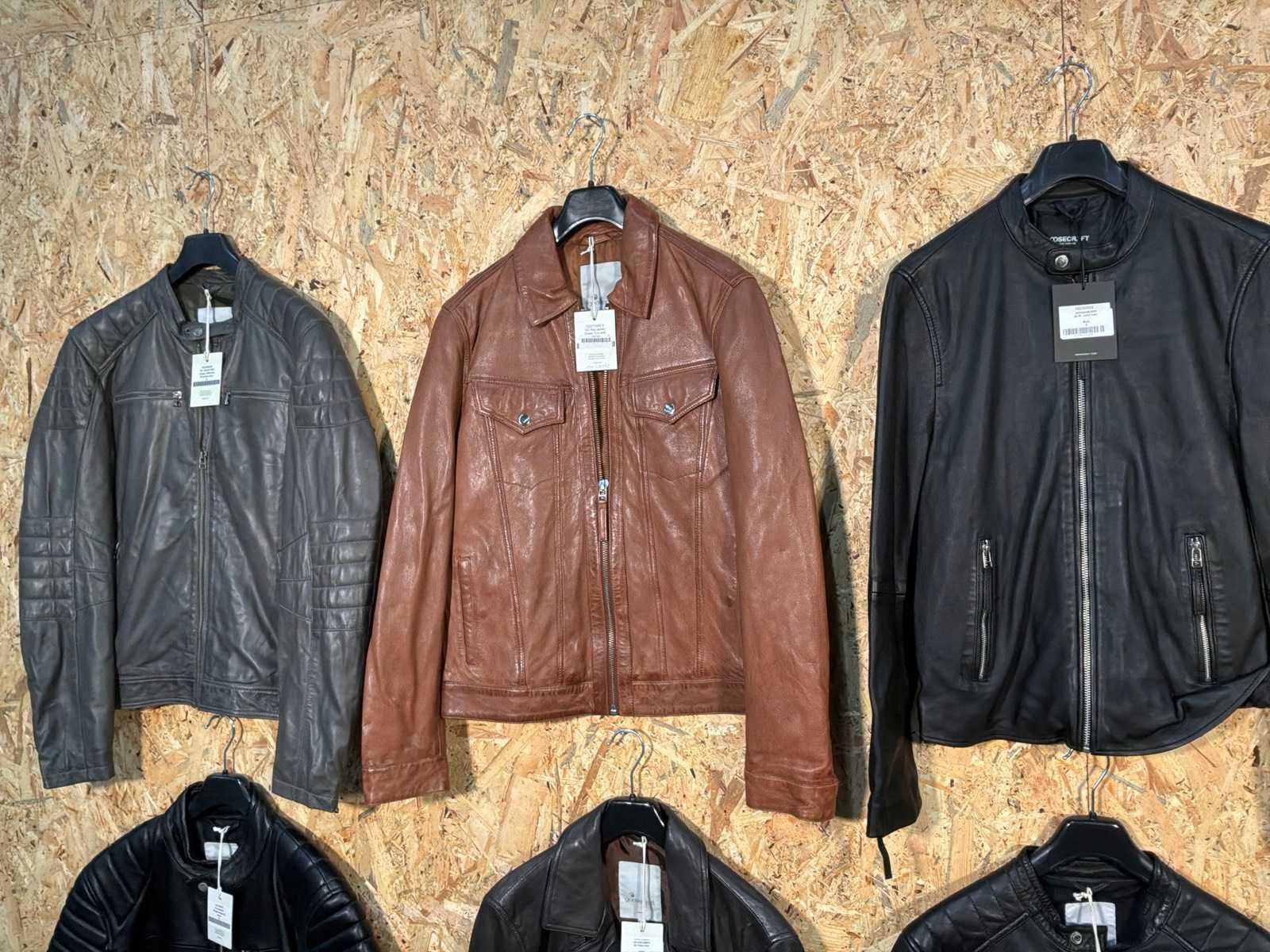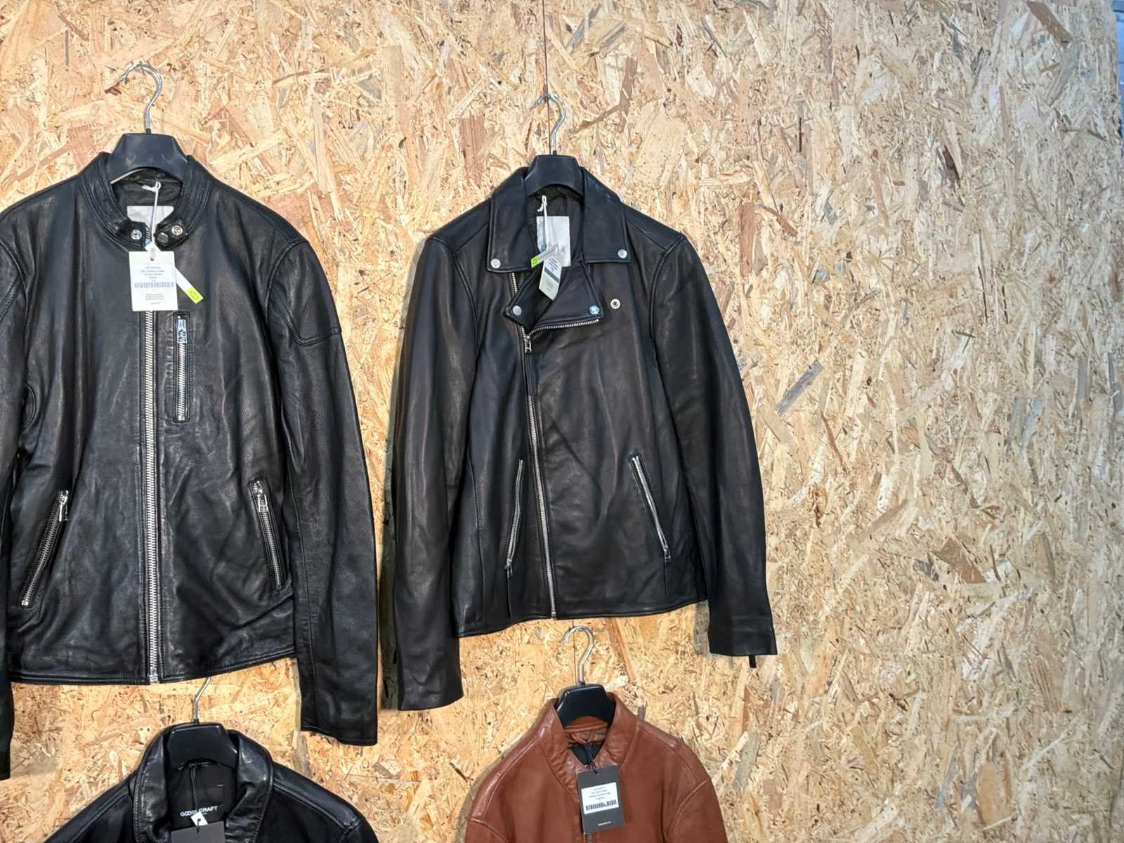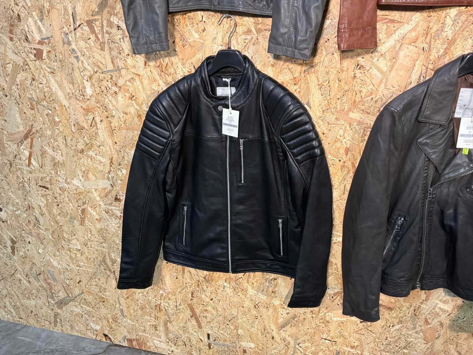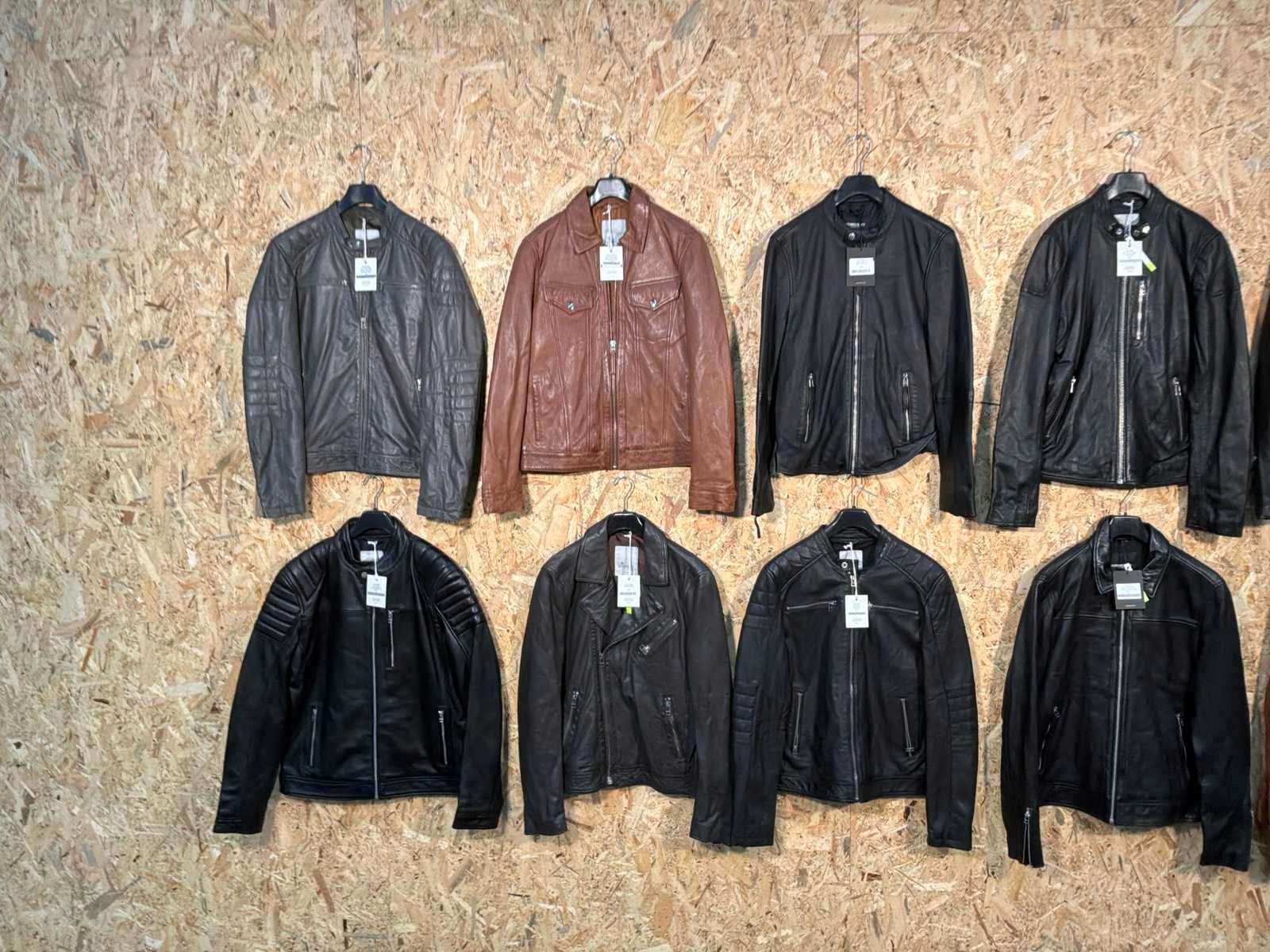 Diverse heren leren jassen in verschillende modellen, kleuren en maten. Inclusief kledinghangers. Mochten erop de items beveiligingstags zitten worden deze nog verwijderd voor de uitleverdag. Merk: Goose-craft