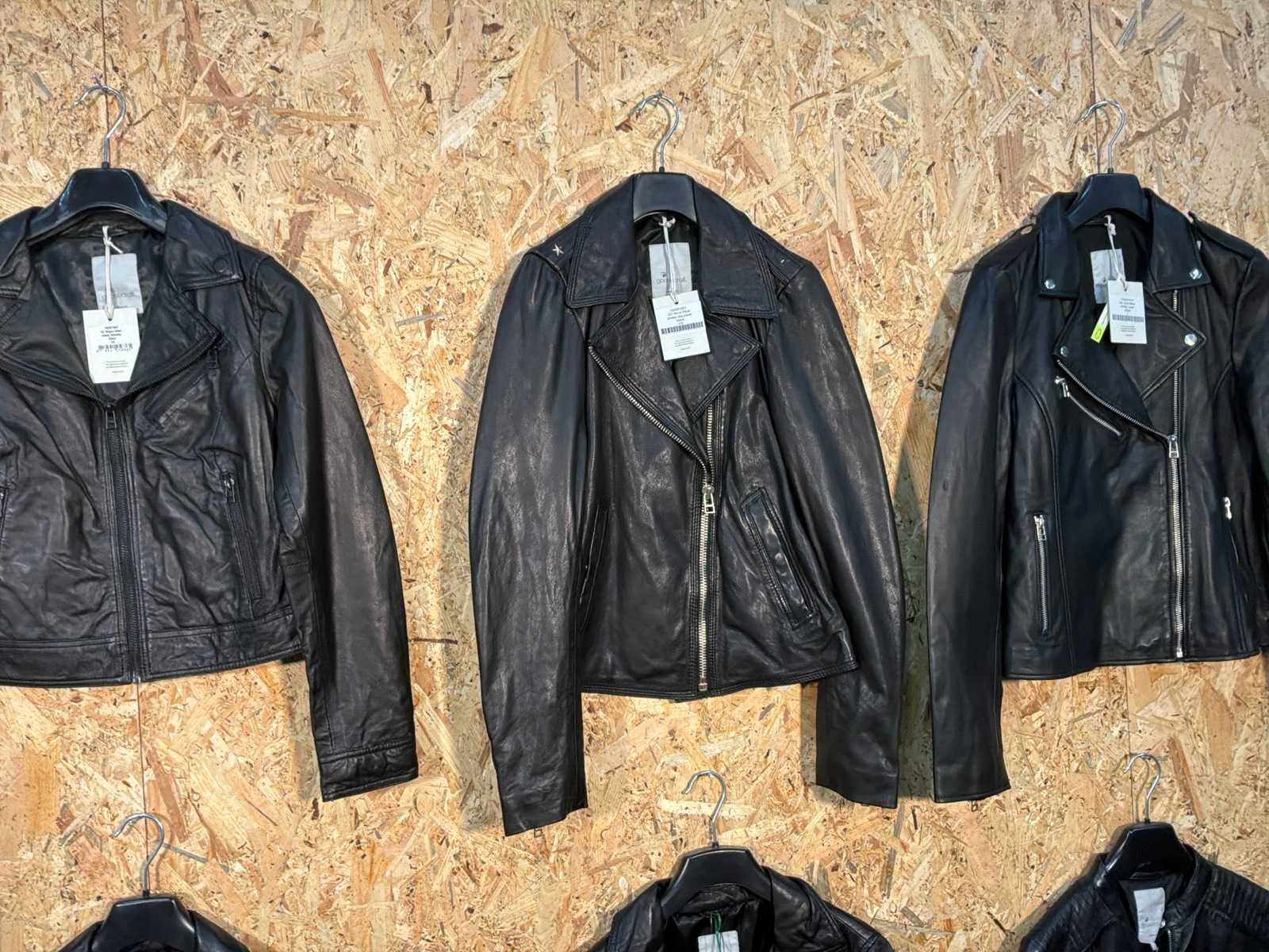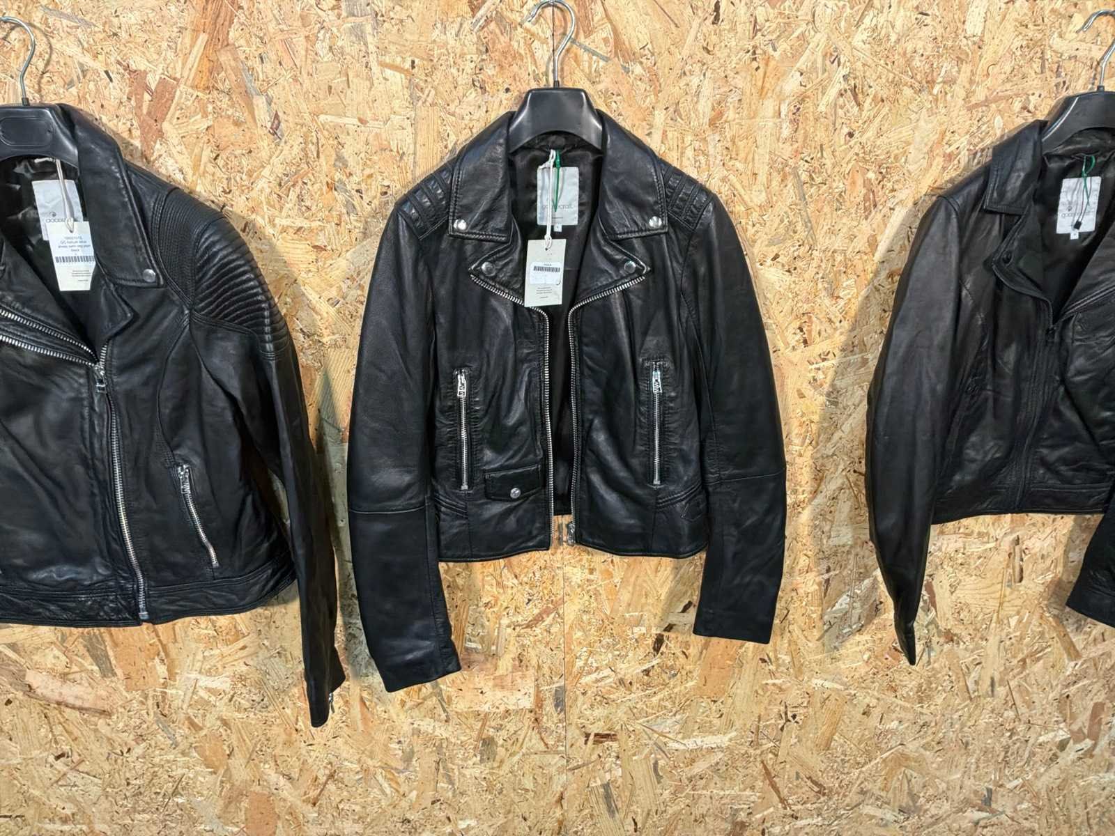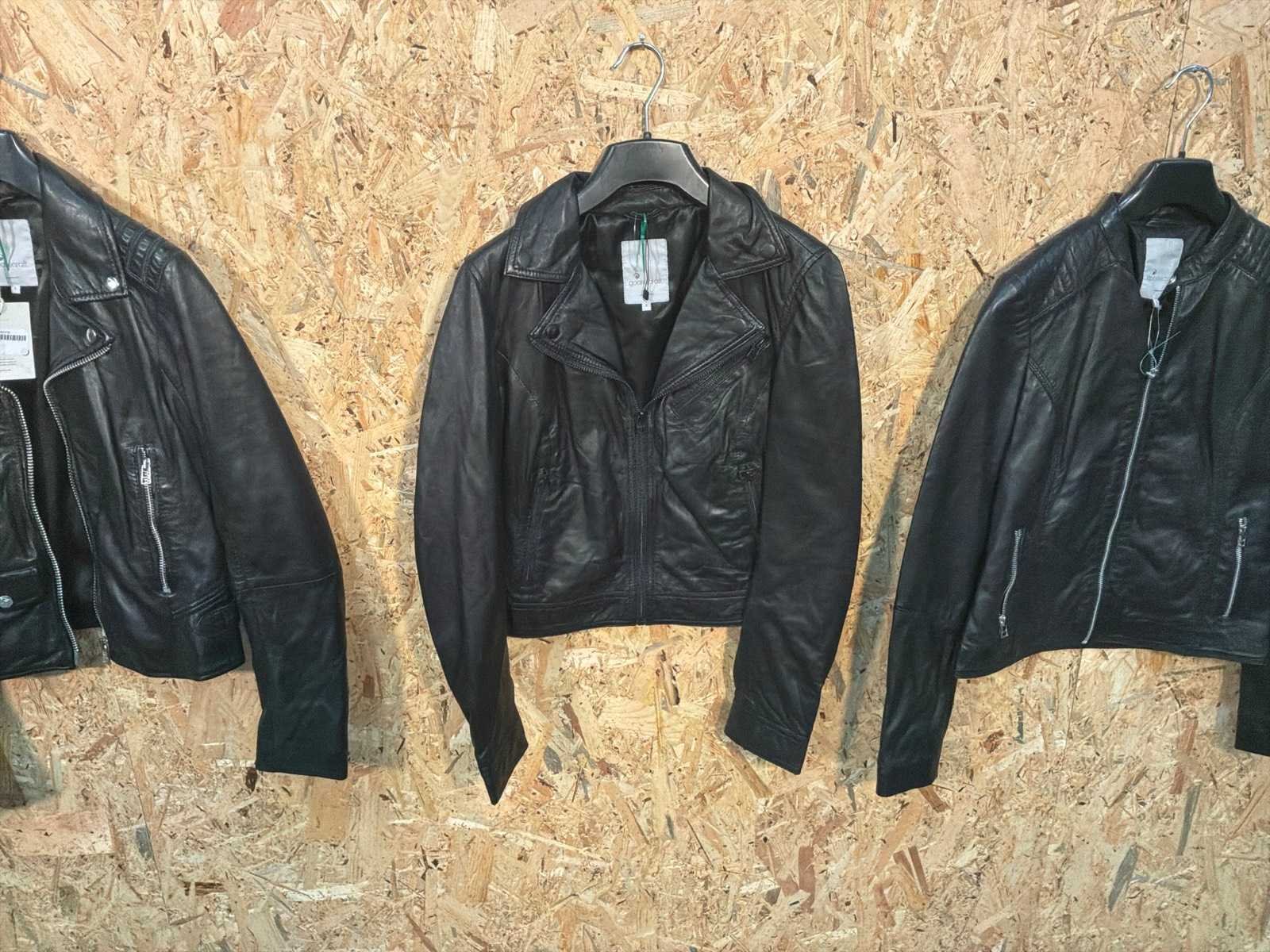 Diverse leren dames jassen in verschillende modellen, kleuren en maten. Inclusief kledinghangers. Mochten erop de items beveiligingstags zitten worden deze nog verwijderd voor de uitleverdag. Merk: Goose-craft