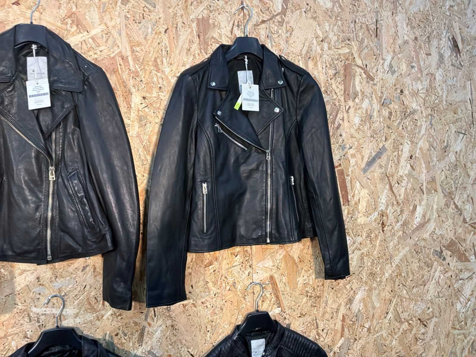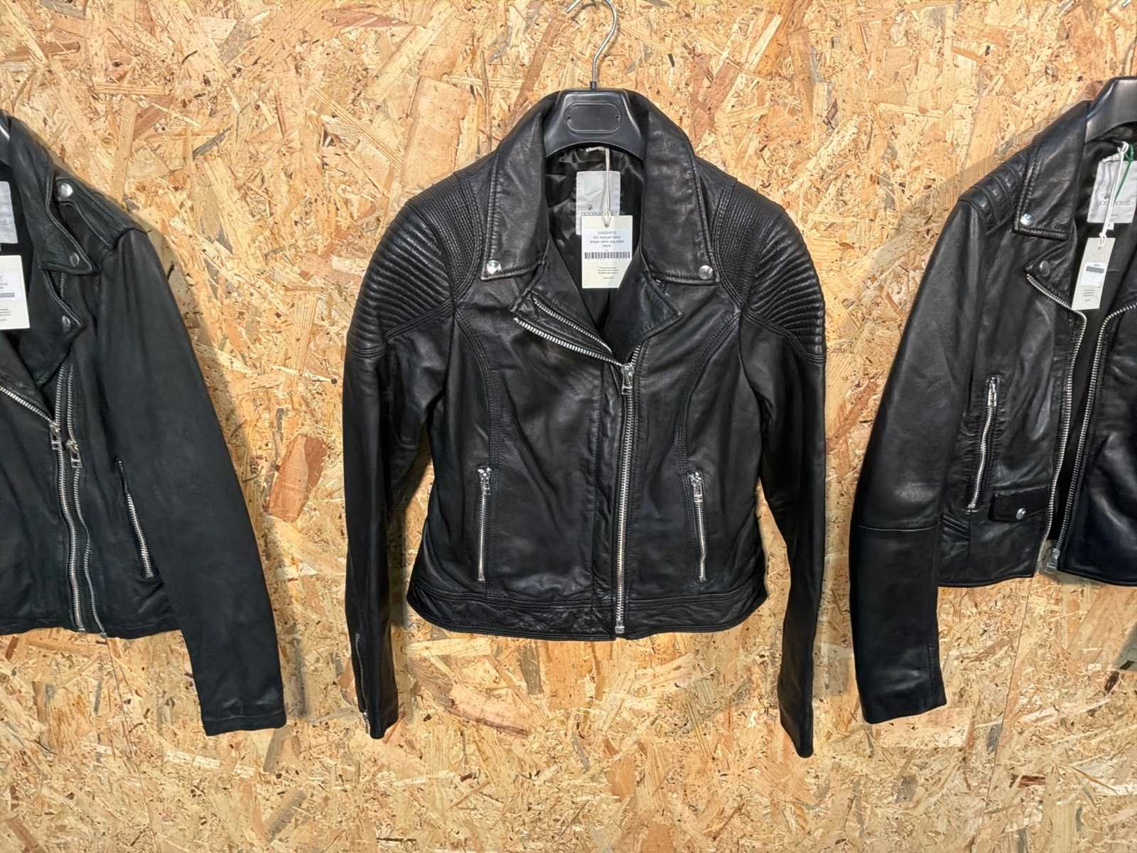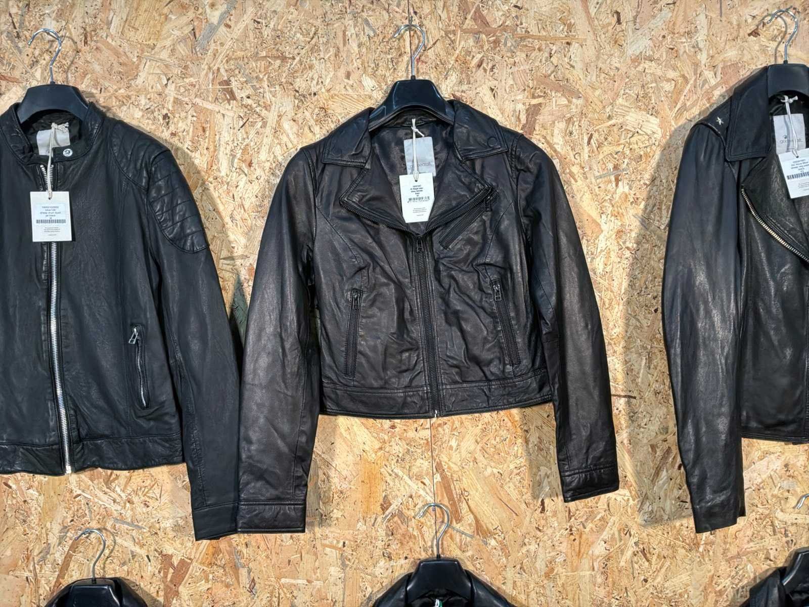 Diverse leren dames jassen in verschillende modellen, kleuren en maten. Inclusief kledinghangers. Mochten erop de items beveiligingstags zitten worden deze nog verwijderd voor de uitleverdag. Merk: Goose-craft