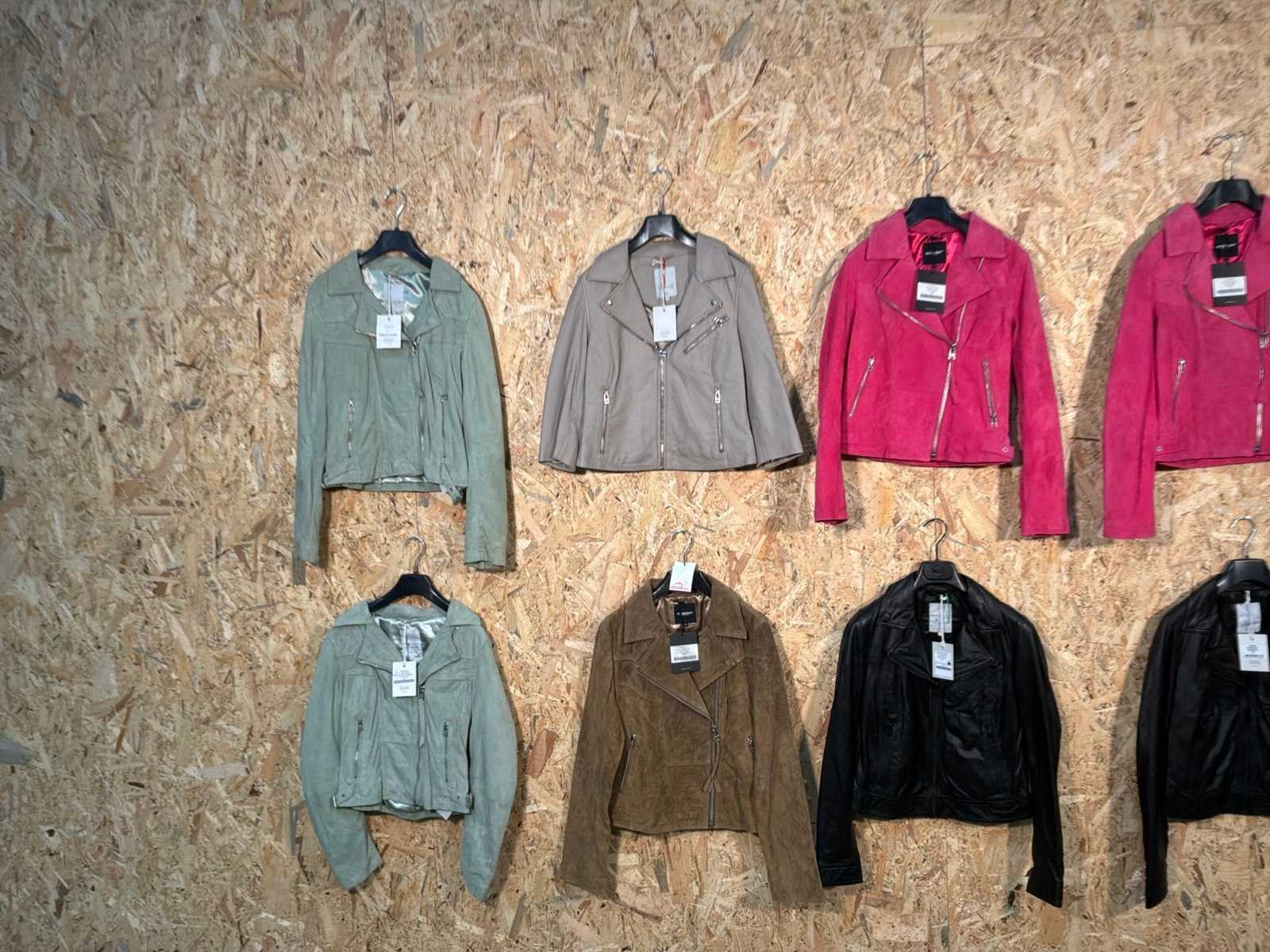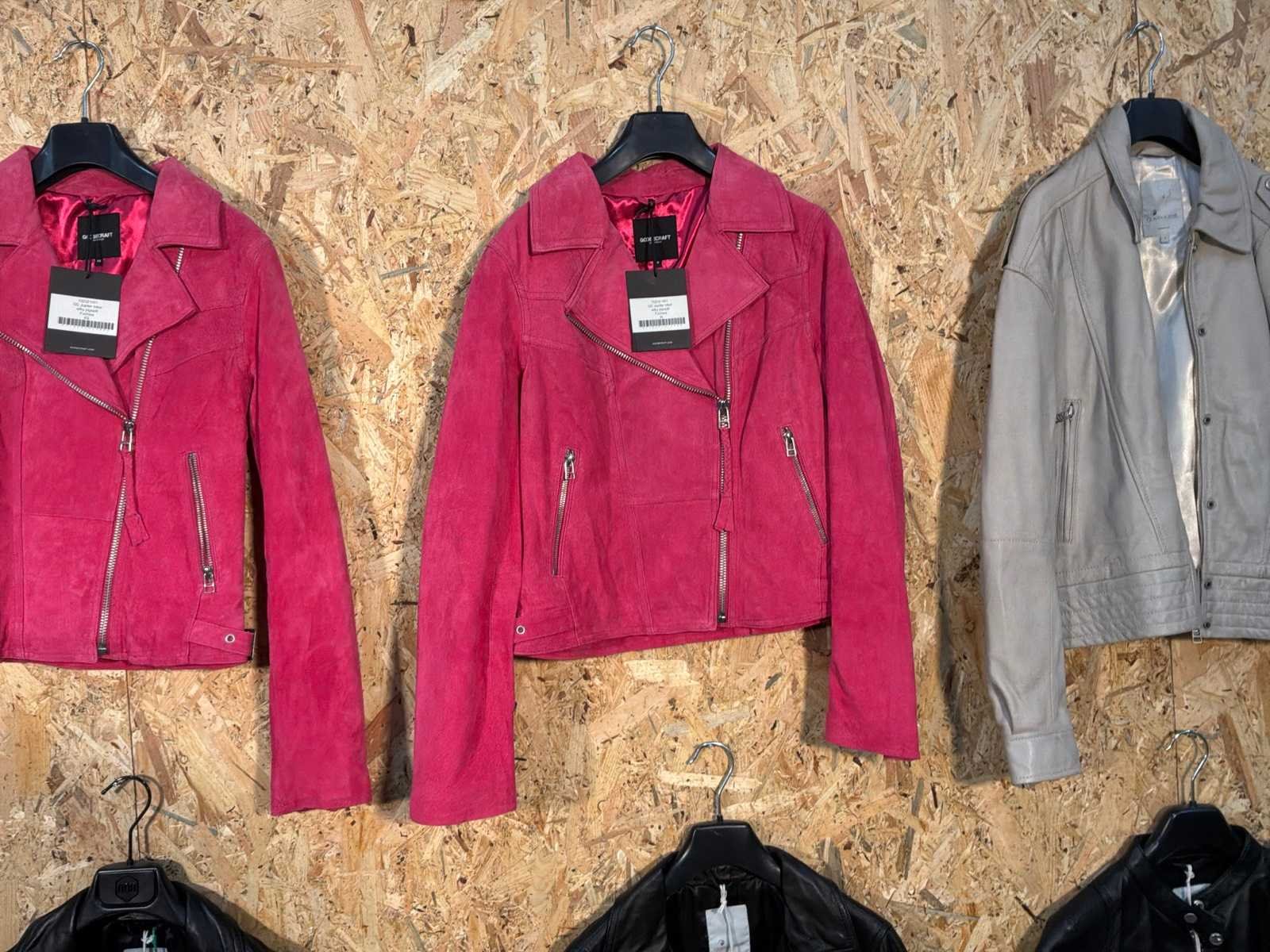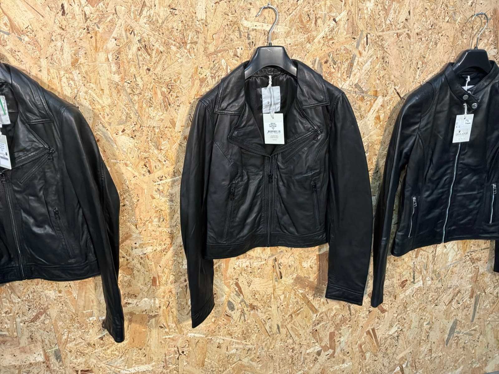 Diverse leren dames jassen in verschillende modellen, kleuren en maten. Inclusief kledinghangers. Mochten erop de items beveiligingstags zitten worden deze nog verwijderd voor de uitleverdag. Merk: Goose-craft