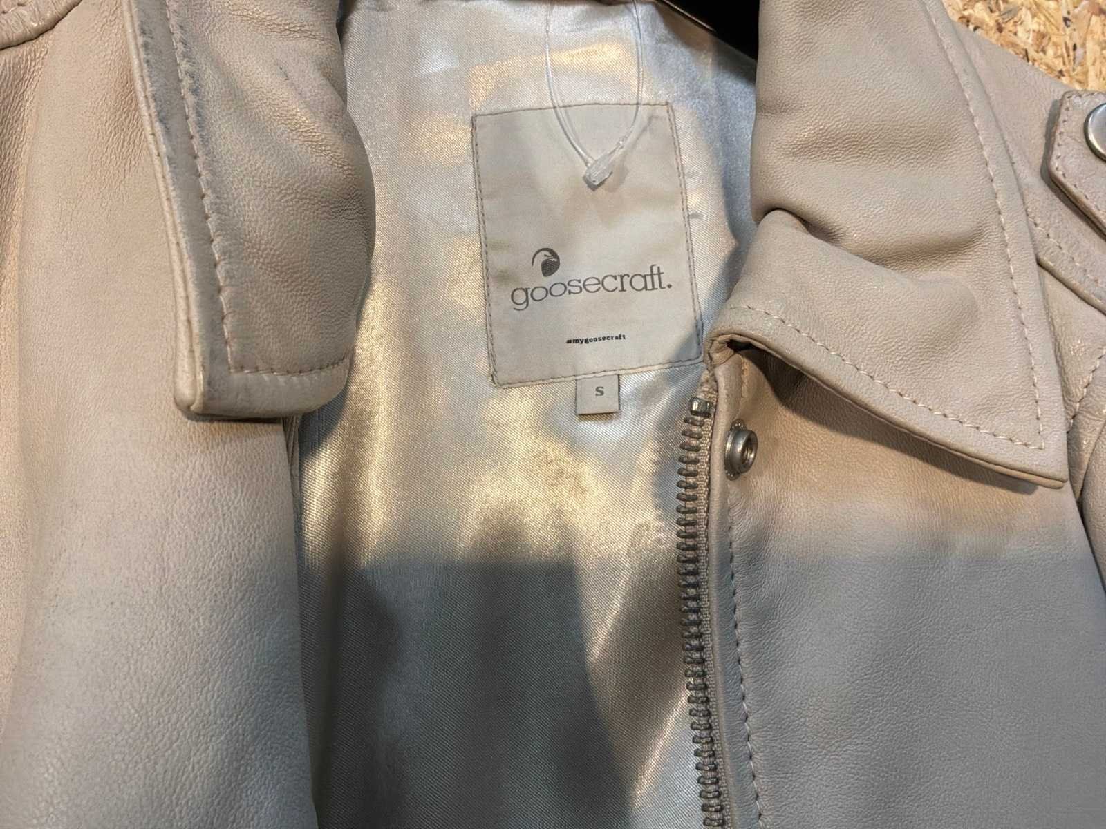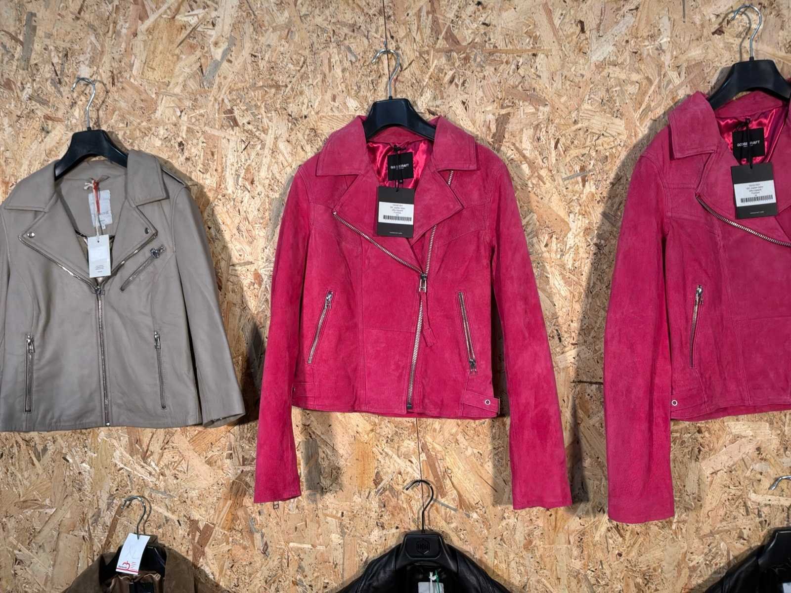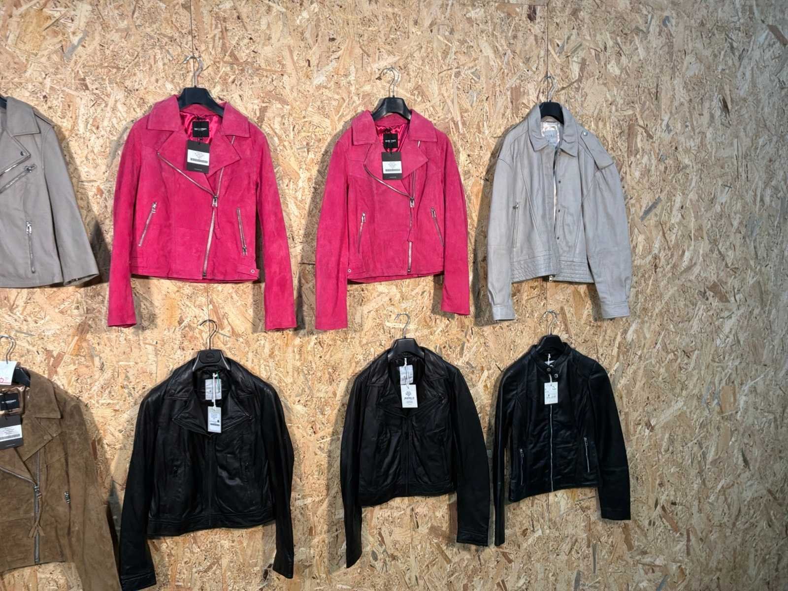 Diverse leren dames jassen in verschillende modellen, kleuren en maten. Inclusief kledinghangers. Mochten erop de items beveiligingstags zitten worden deze nog verwijderd voor de uitleverdag. Merk: Goose-craft
