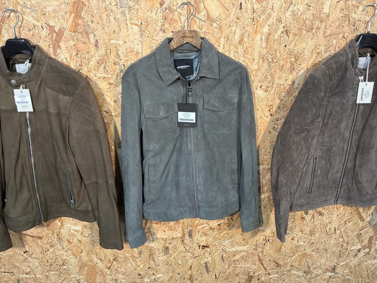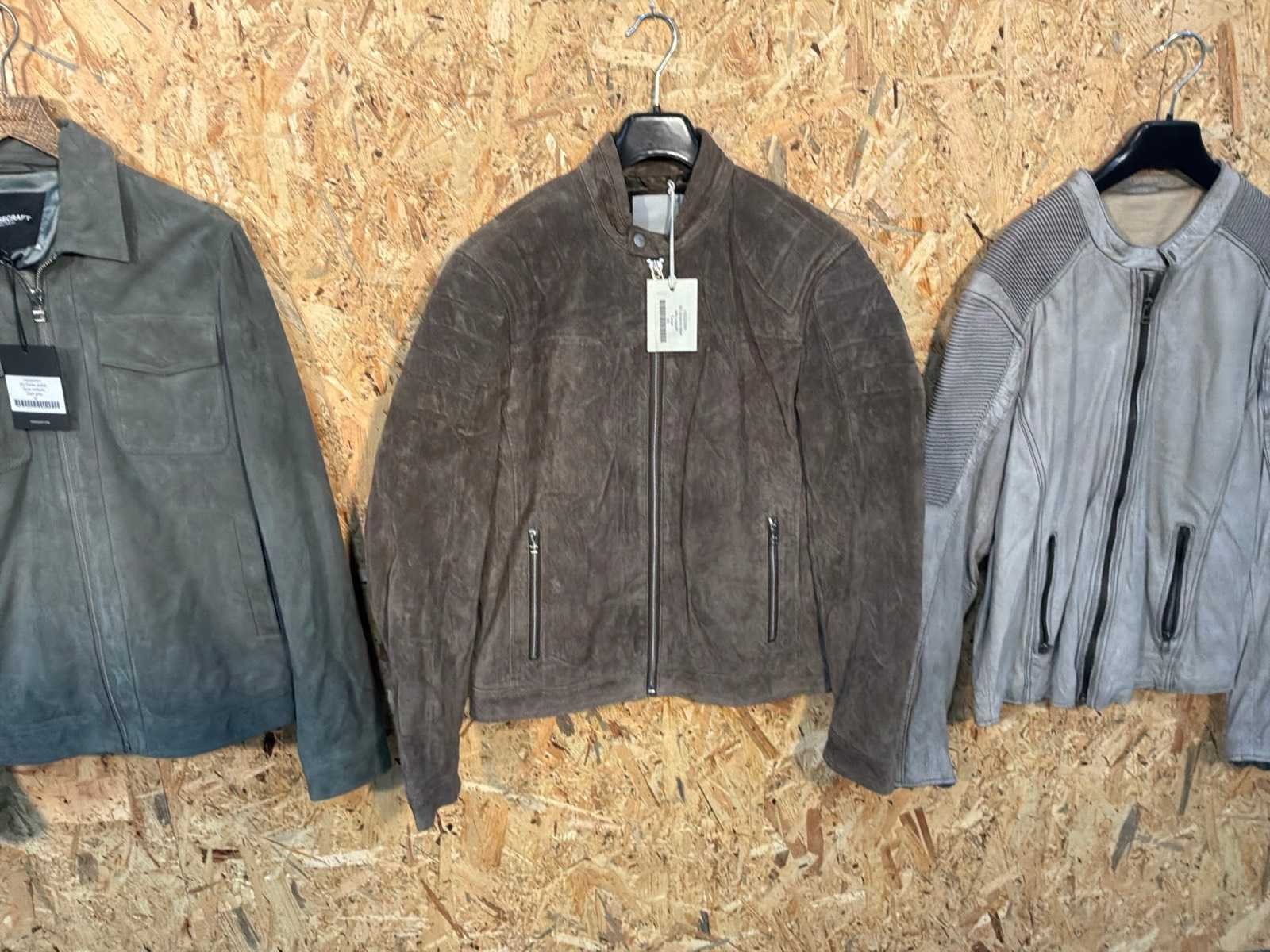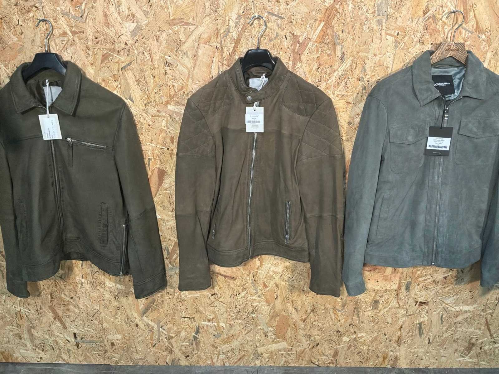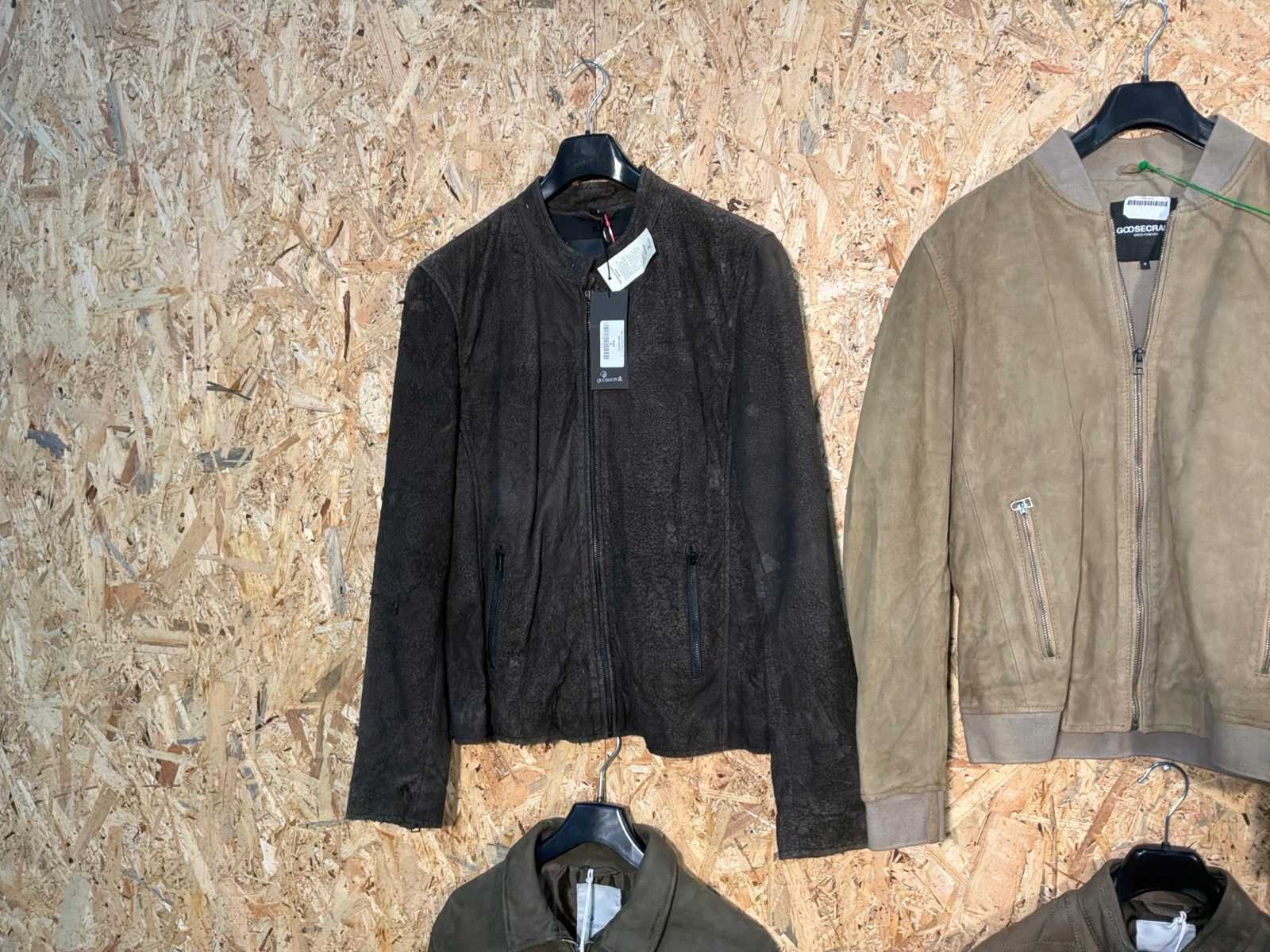 Diverse heren leren jassen in verschillende modellen, kleuren en maten. Inclusief kledinghangers. Mochten erop de items beveiligingstags zitten worden deze nog verwijderd voor de uitleverdag. Merk: Goose-craft