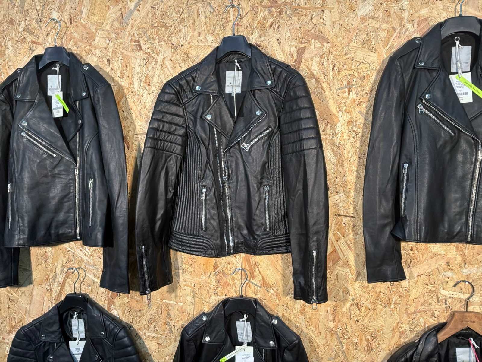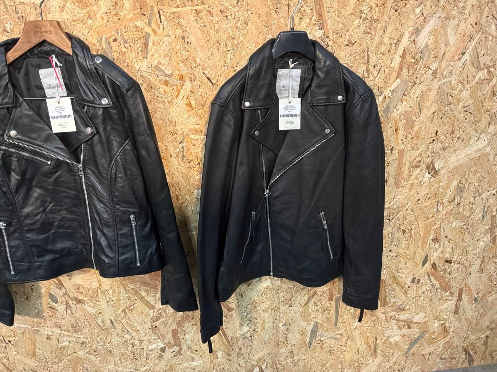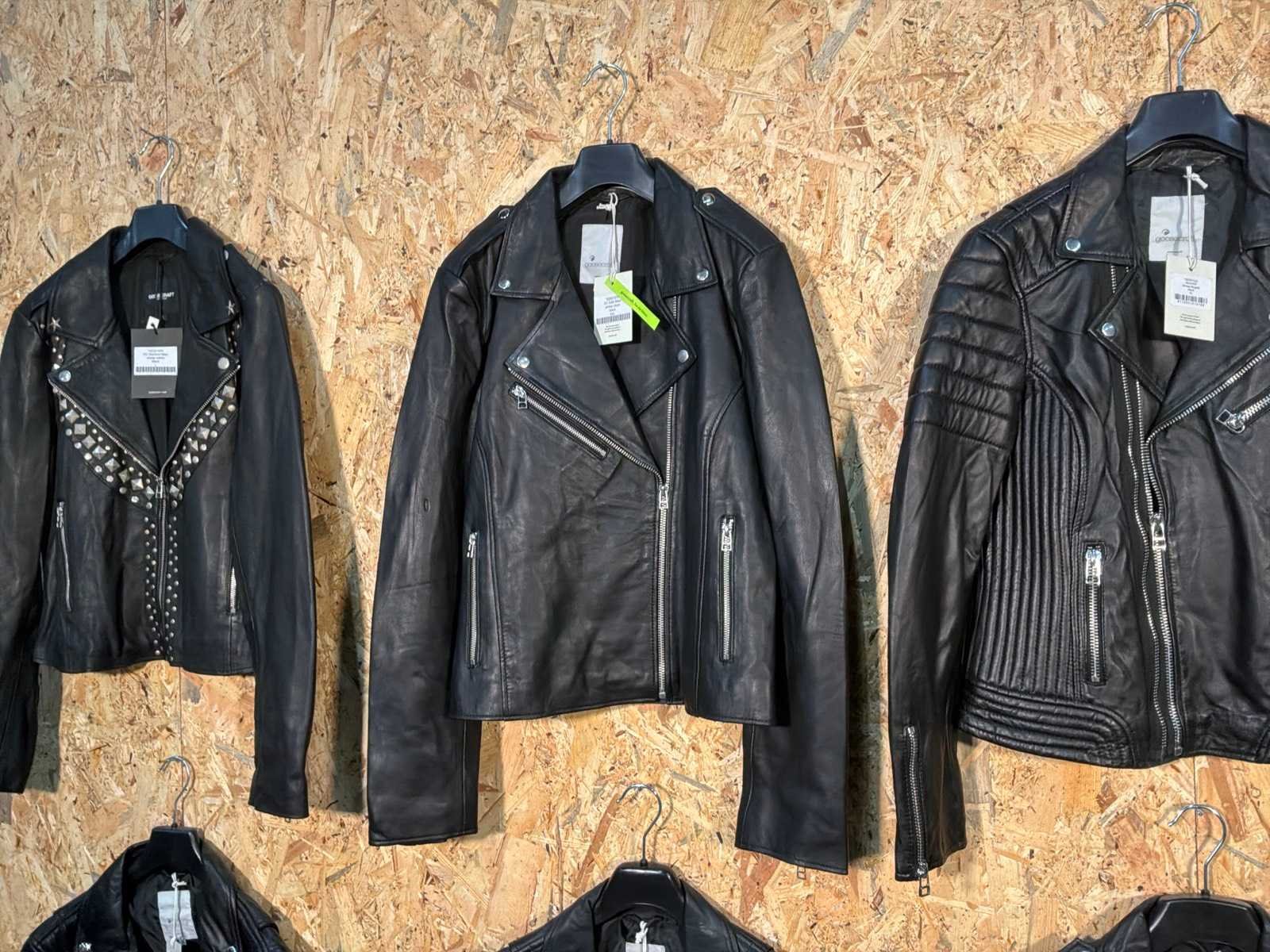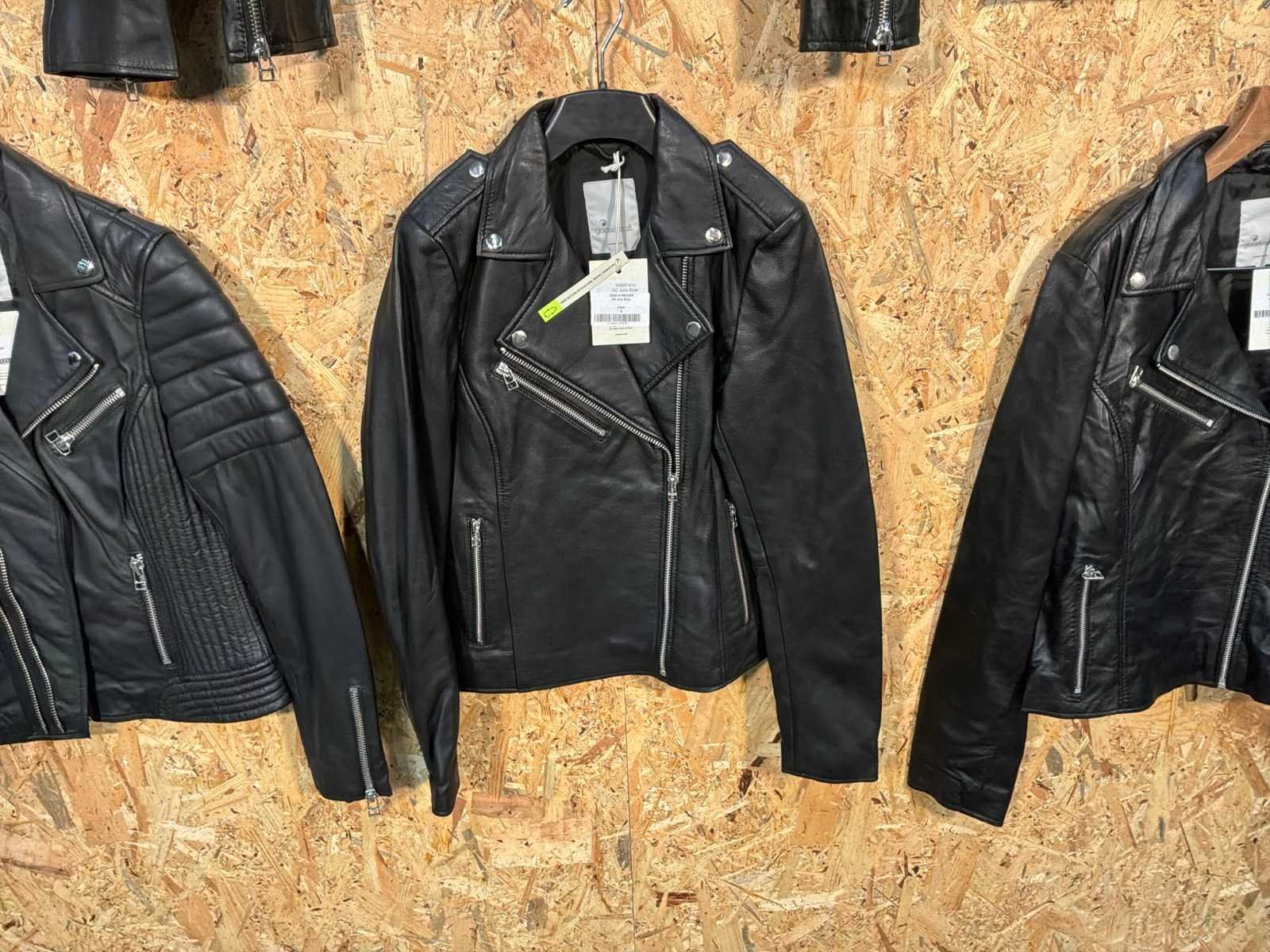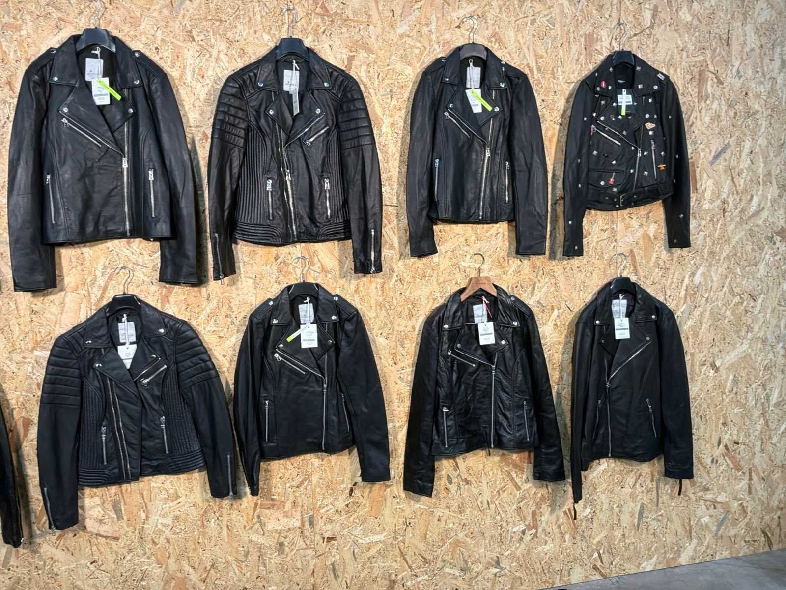 Diverse leren dames jassen in verschillende modellen, kleuren en maten. Inclusief kledinghangers. Mochten erop de items beveiligingstags zitten worden deze nog verwijderd voor de uitleverdag. Merk: Goose-craft