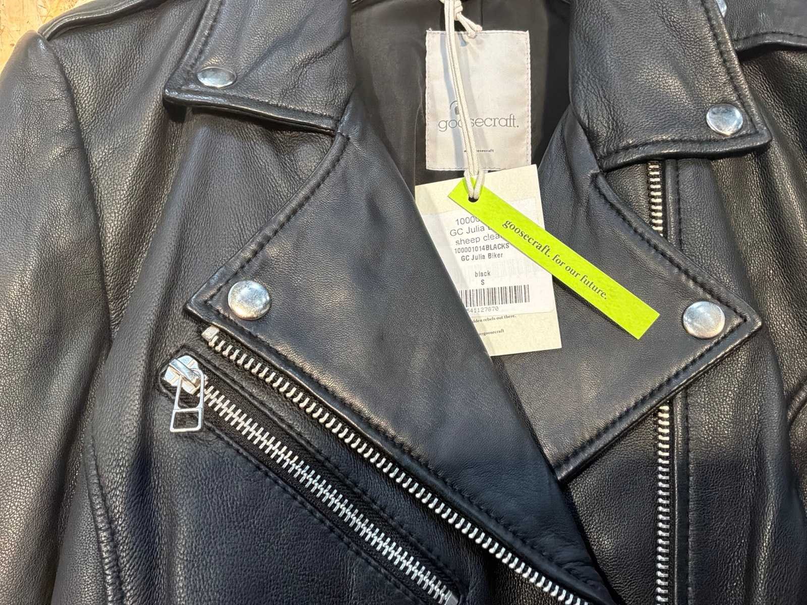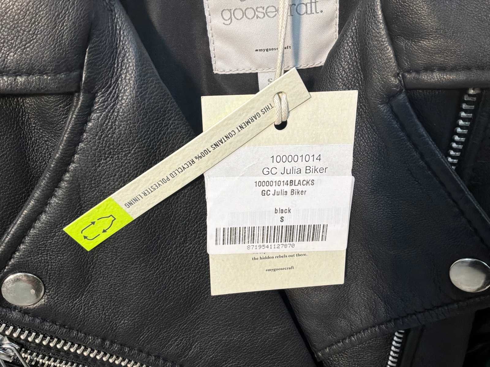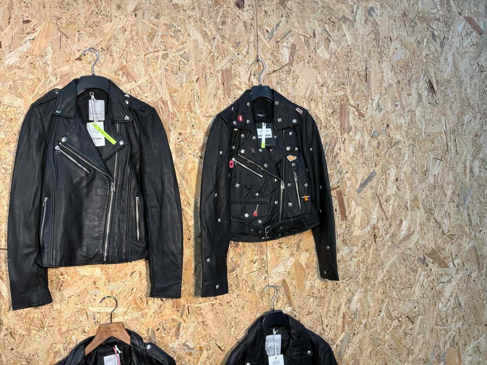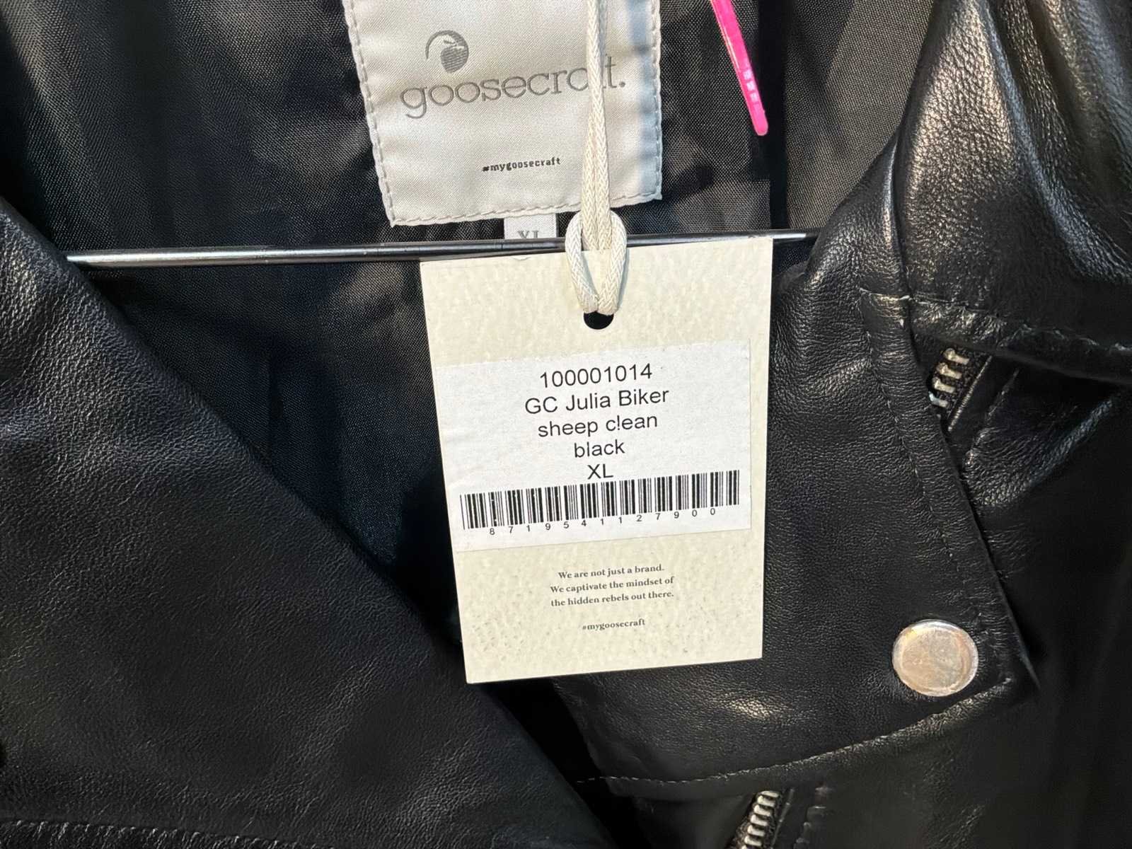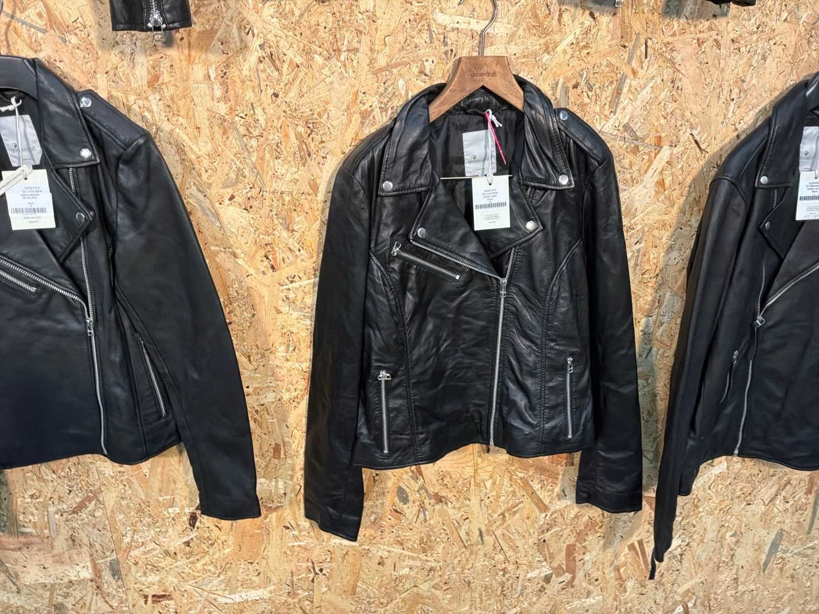 Diverse leren dames jassen in verschillende modellen, kleuren en maten. Inclusief kledinghangers. Mochten erop de items beveiligingstags zitten worden deze nog verwijderd voor de uitleverdag. Merk: Goose-craft