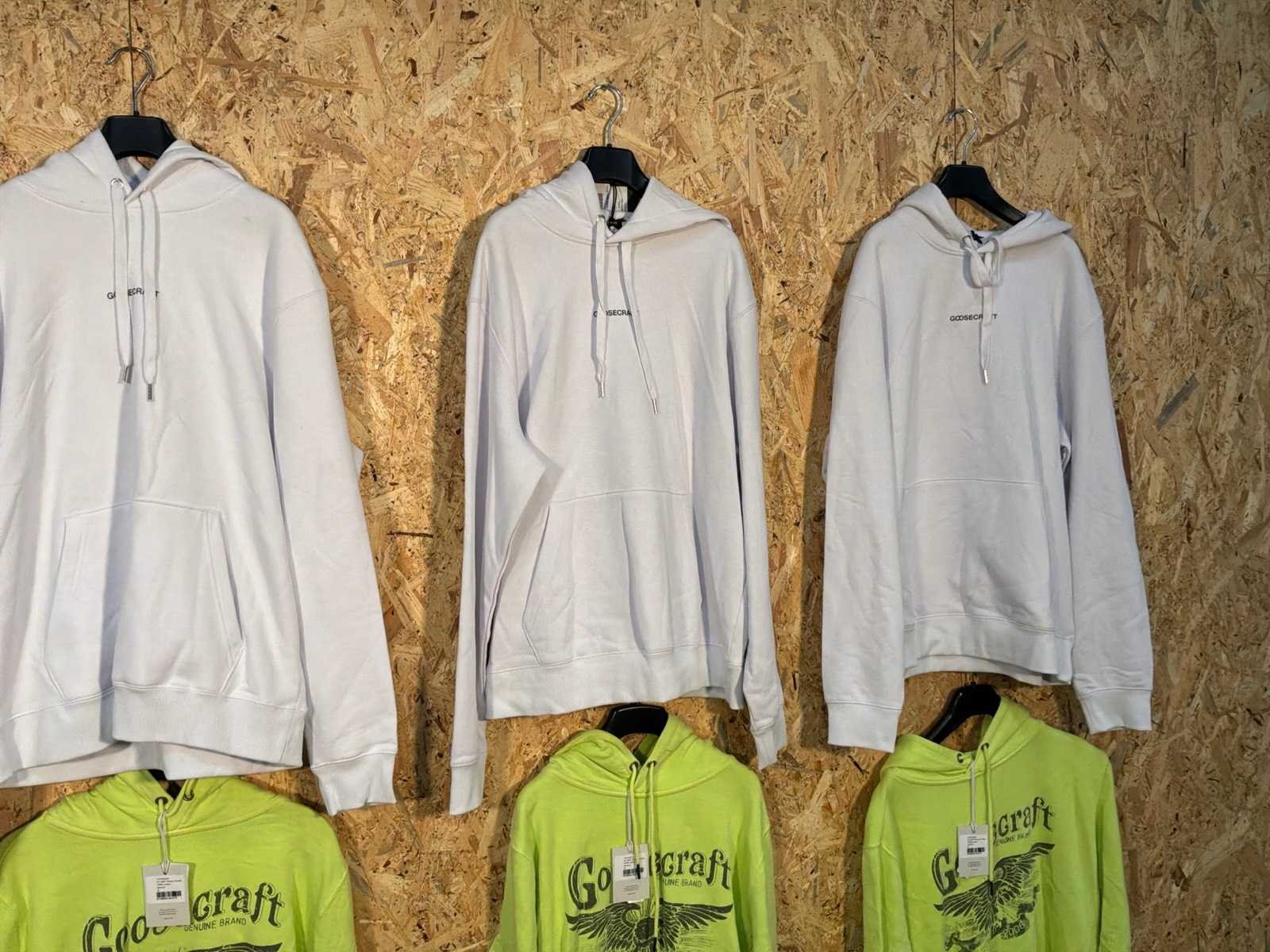 Diverse dames/heren truien in verschillende modellen, kleuren en maten. Inclusief kledinghangers. Mochten erop de items beveiligingstags zitten worden deze nog verwijderd voor de uitleverdag. Merk: Goose-craft
