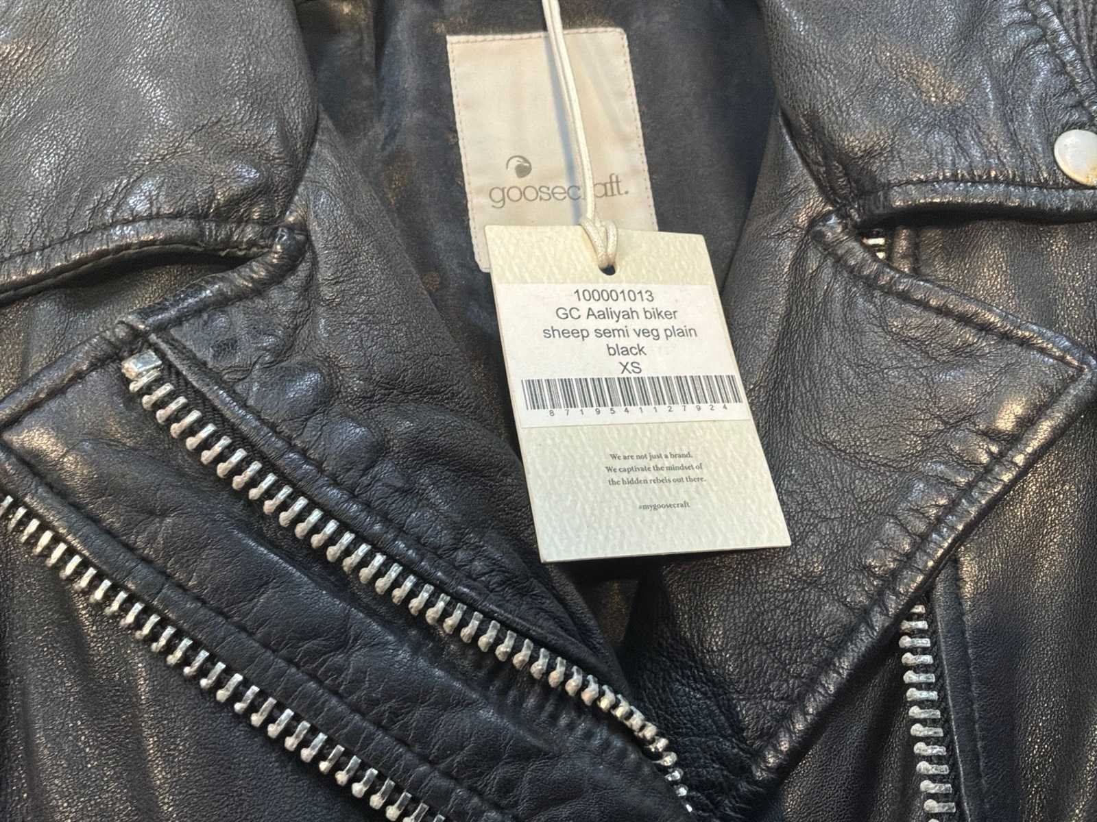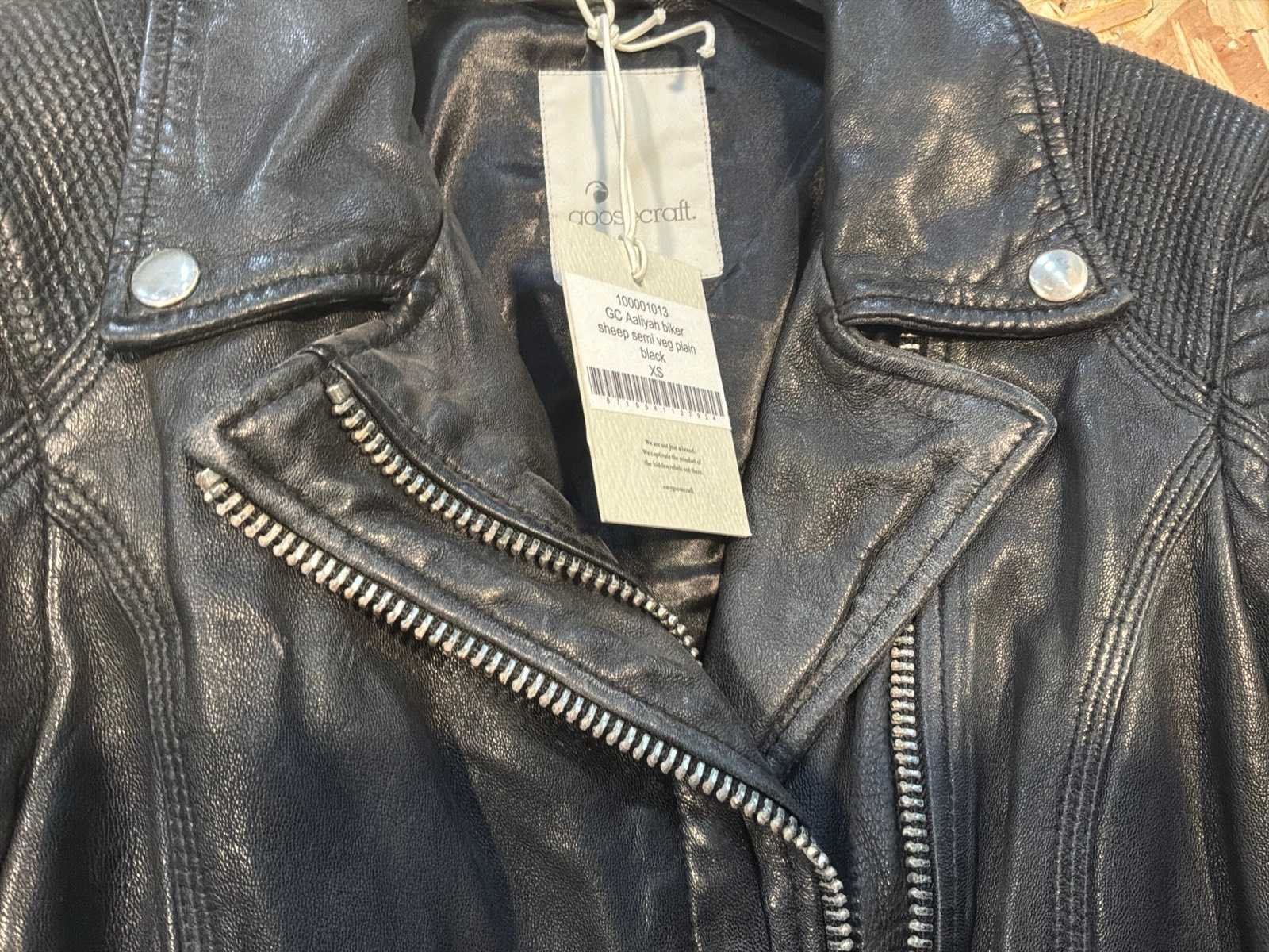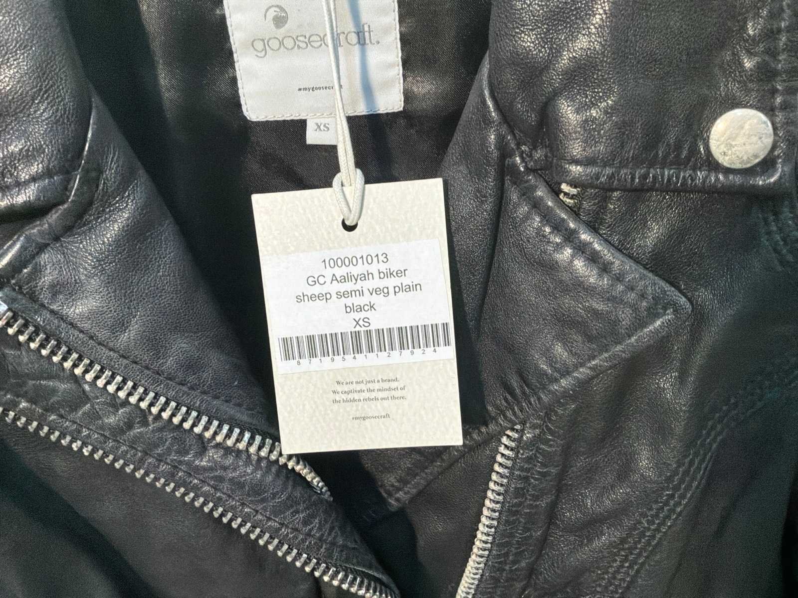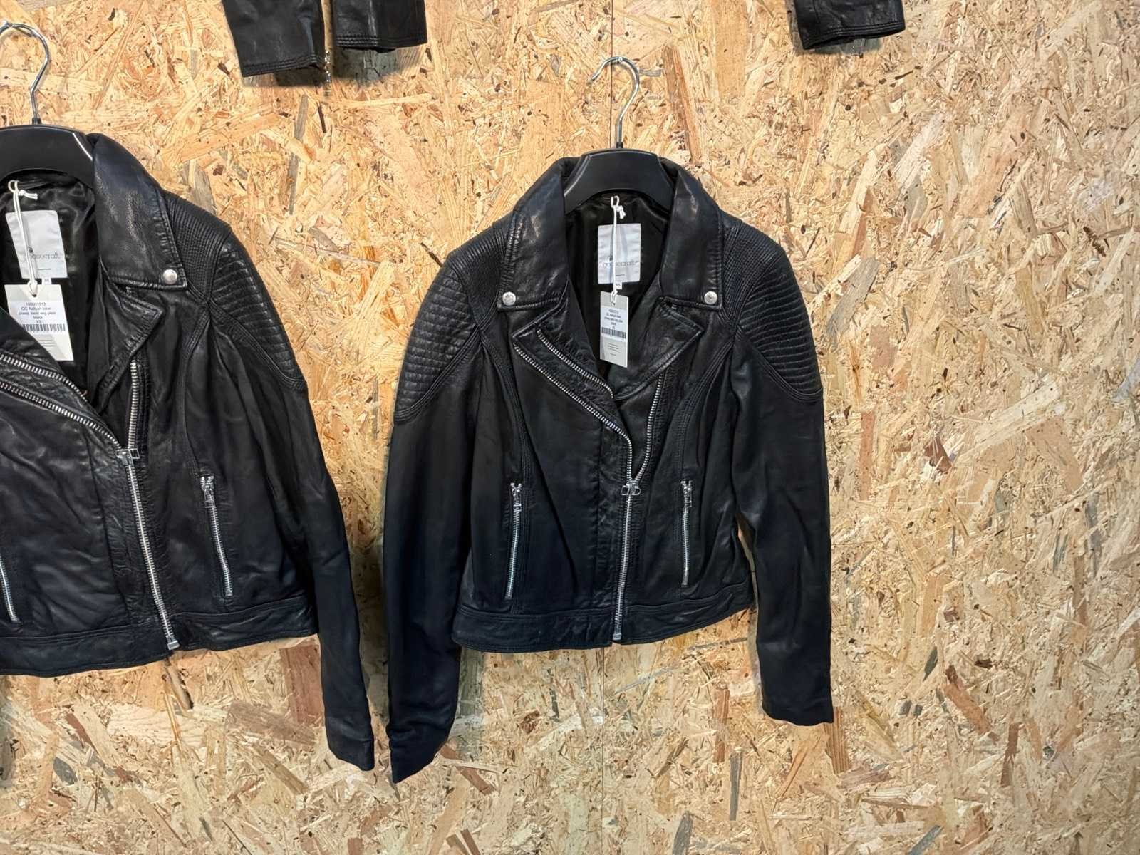 Diverse leren dames jassen in verschillende modellen, kleuren en maten. Inclusief kledinghangers. Mochten erop de items beveiligingstags zitten worden deze nog verwijderd voor de uitleverdag. Merk: Goose-craft