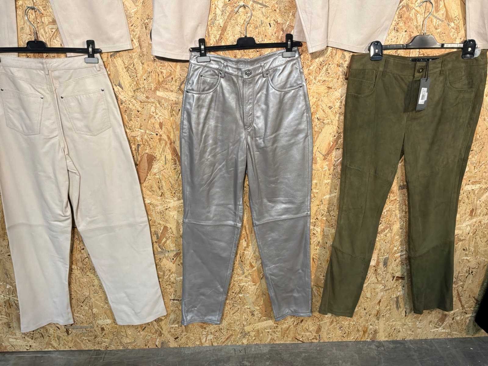 Leren en suede broeken van het merk Goosecraft. Verschillende modellen kleuren en maten. Zie foto’s Mochten erop de items beveiligingstags zitten worden deze nog verwijderd voor de uitleverdag. Merk: Goose-craft Model: Leer/suede