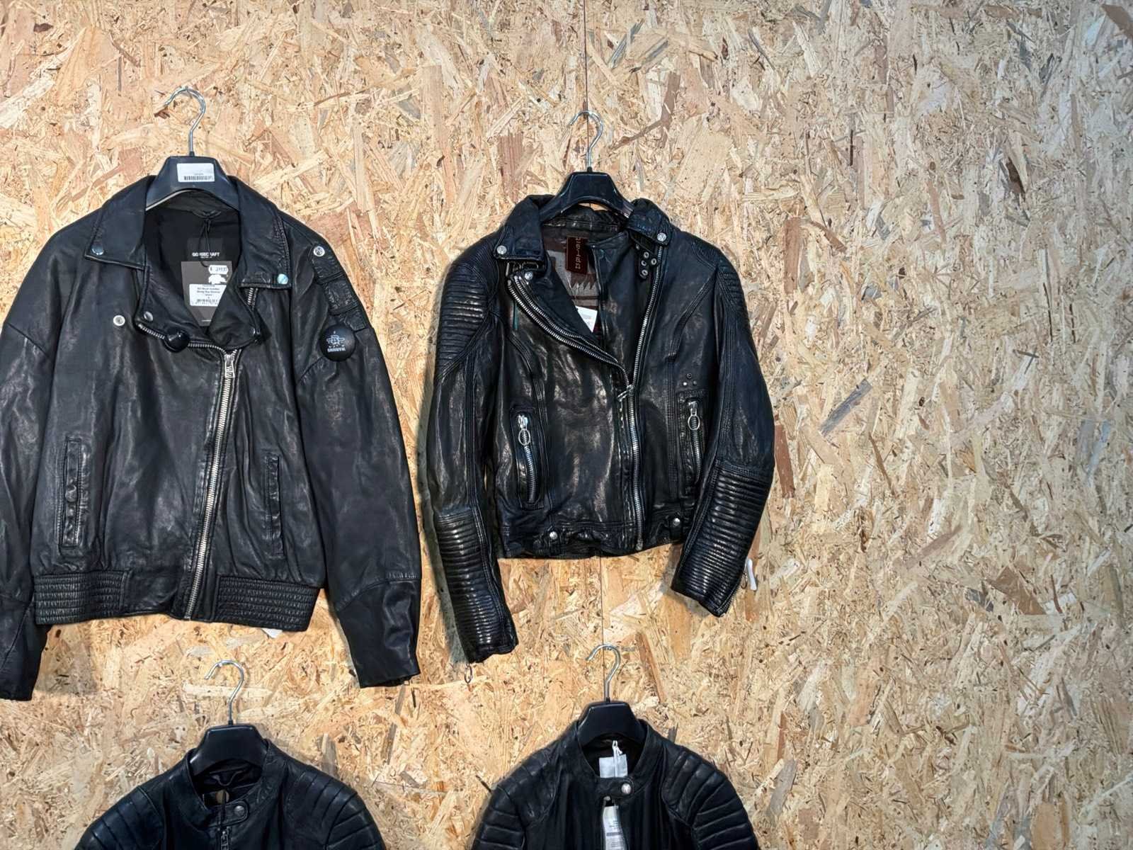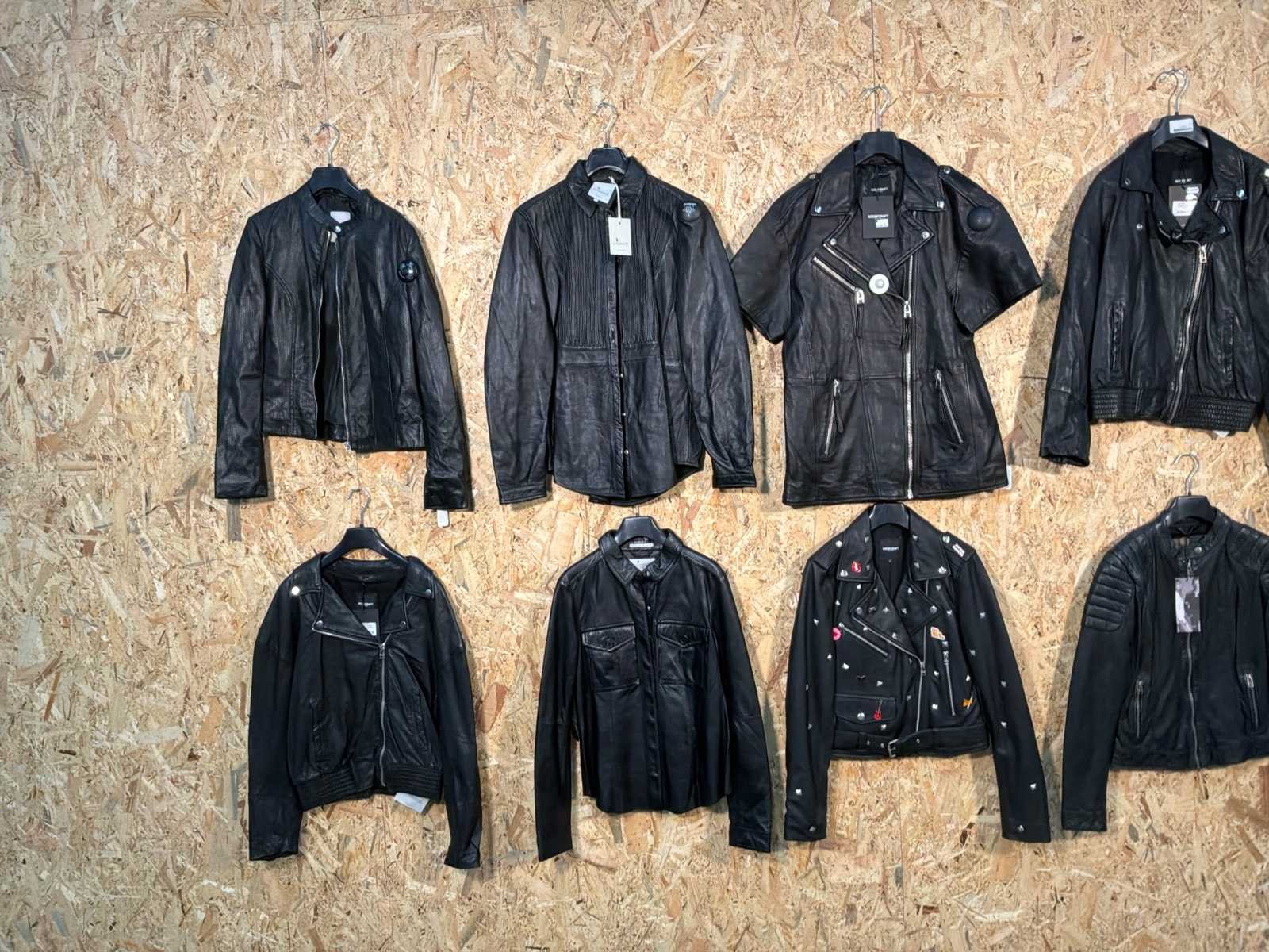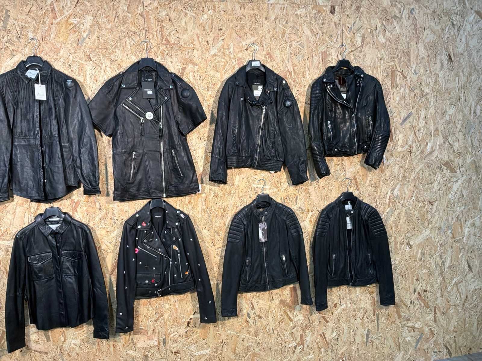 Diverse dames leren jassen en vesten in verschillende modellen, kleuren en maten. Inclusief kledinghangers. Mochten erop de items beveiligingstags zitten worden deze nog verwijderd voor de uitleverdag. Merk: Goose-craft