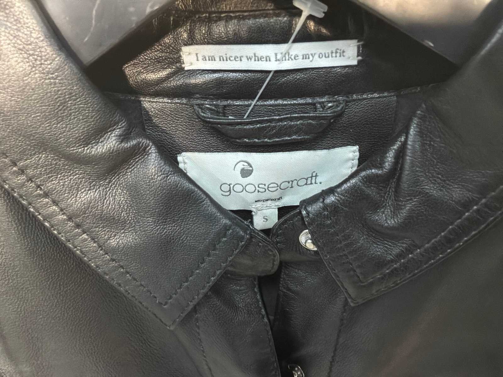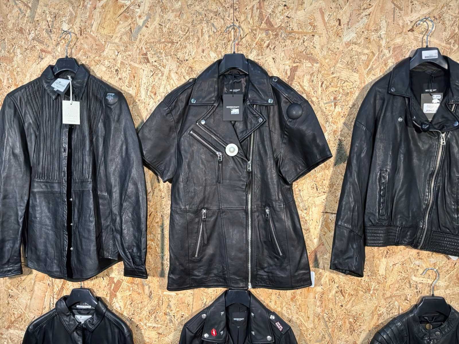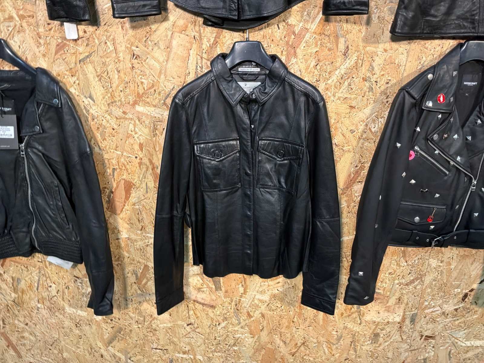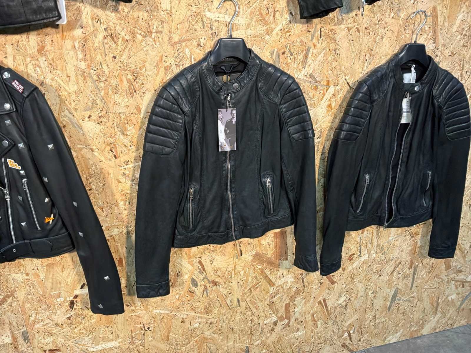 Diverse dames leren jassen en vesten in verschillende modellen, kleuren en maten. Inclusief kledinghangers. Mochten erop de items beveiligingstags zitten worden deze nog verwijderd voor de uitleverdag. Merk: Goose-craft