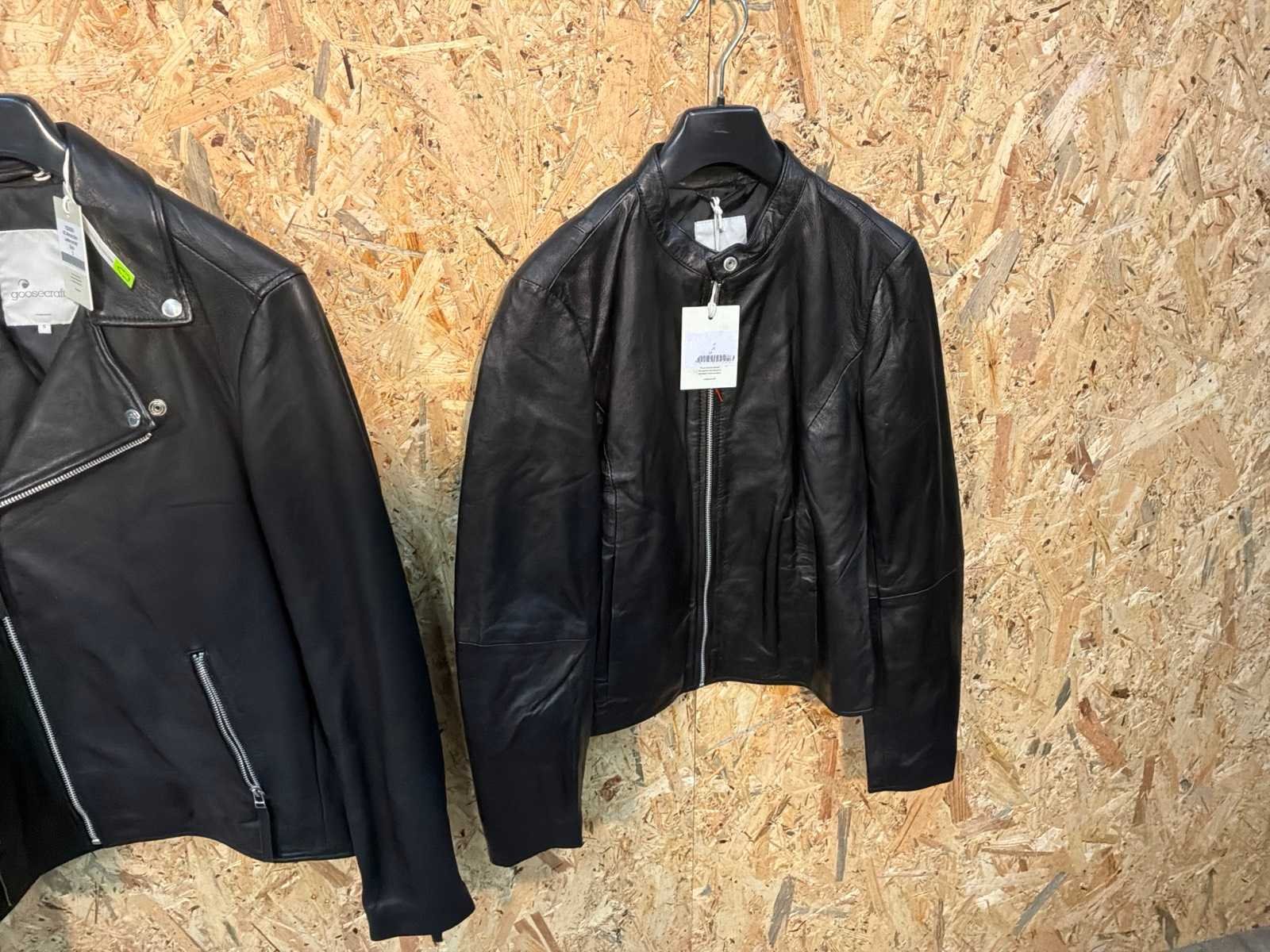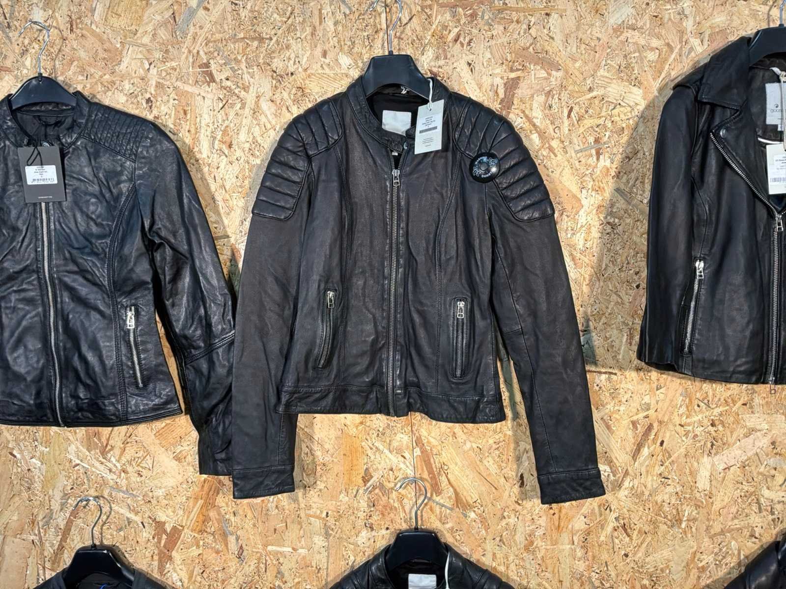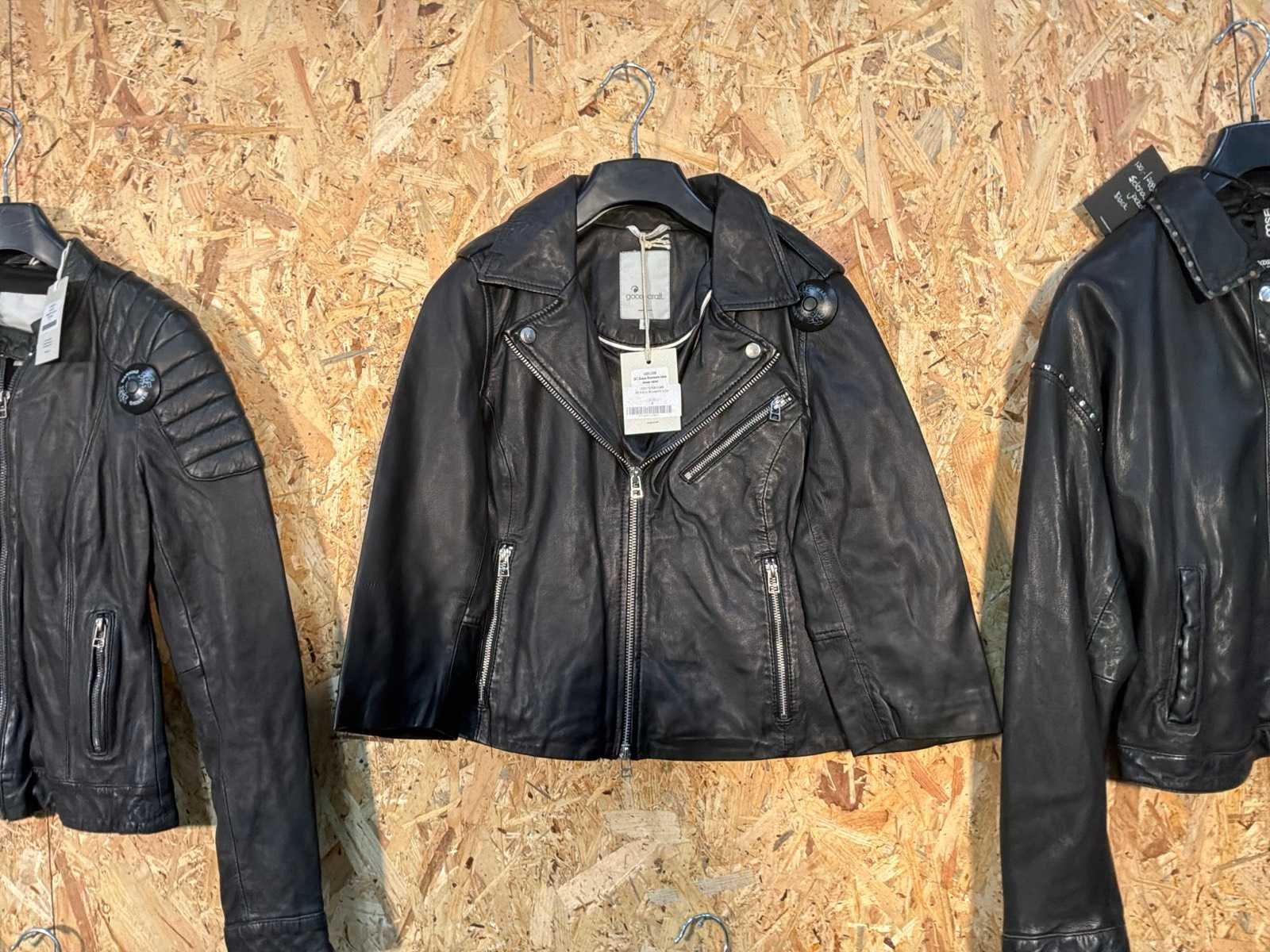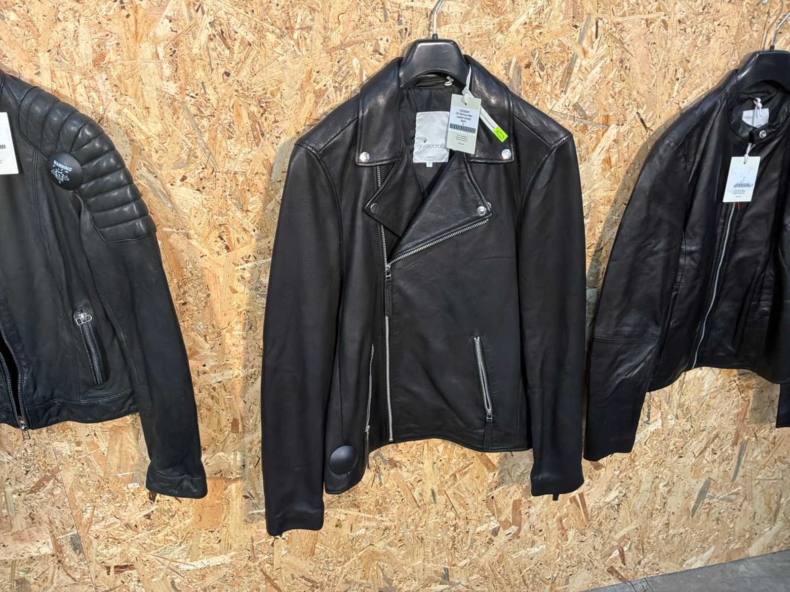 Diverse leren dames/heren jackets en vesten in verschillende modellen, kleuren en maten. Inclusief kledinghangers. Mochten erop de items beveiligingstags zitten worden deze nog verwijderd voor de uitleverdag. Merk: Goose-craft