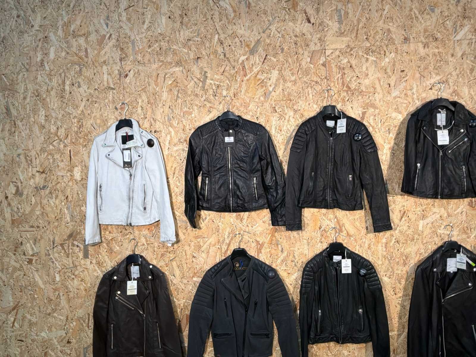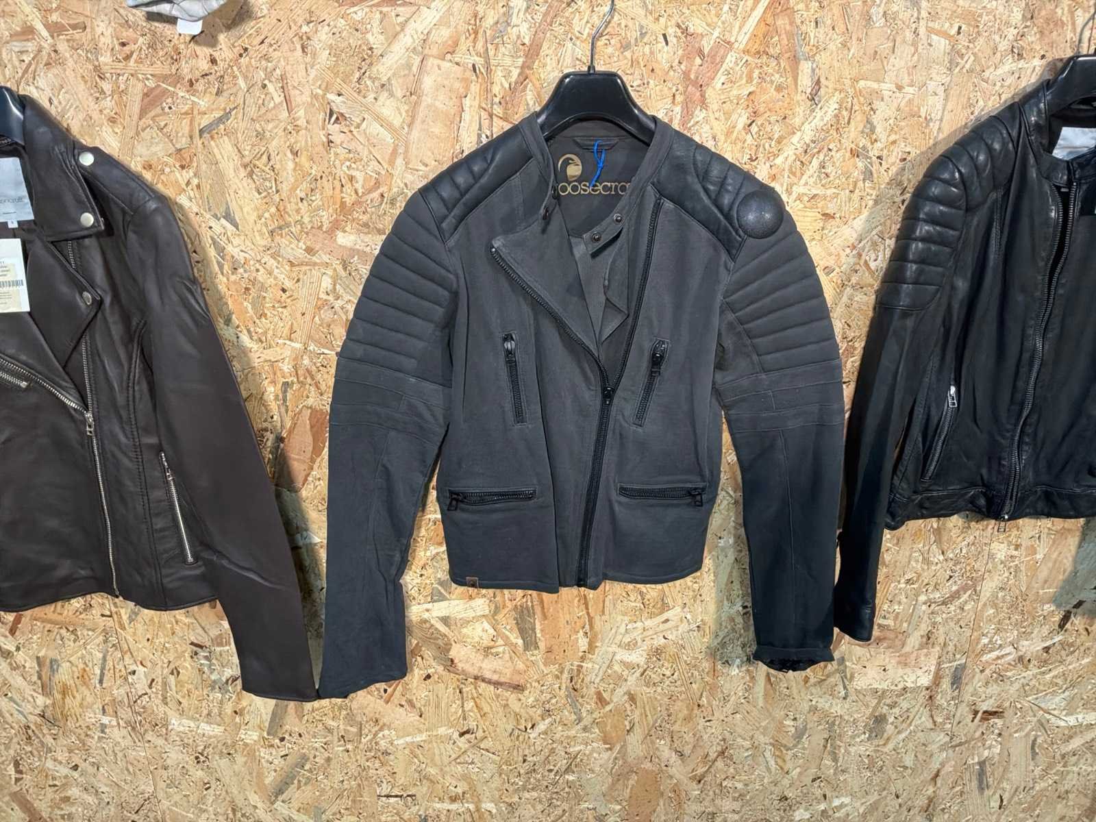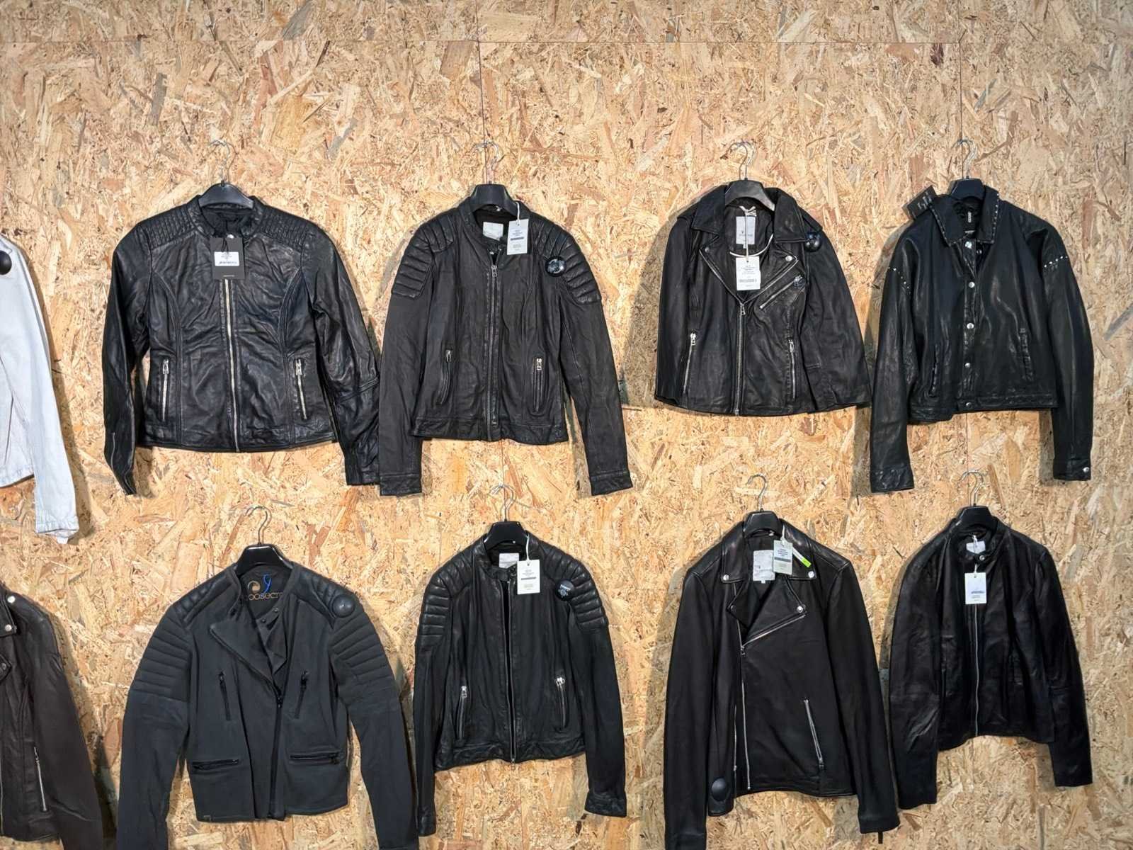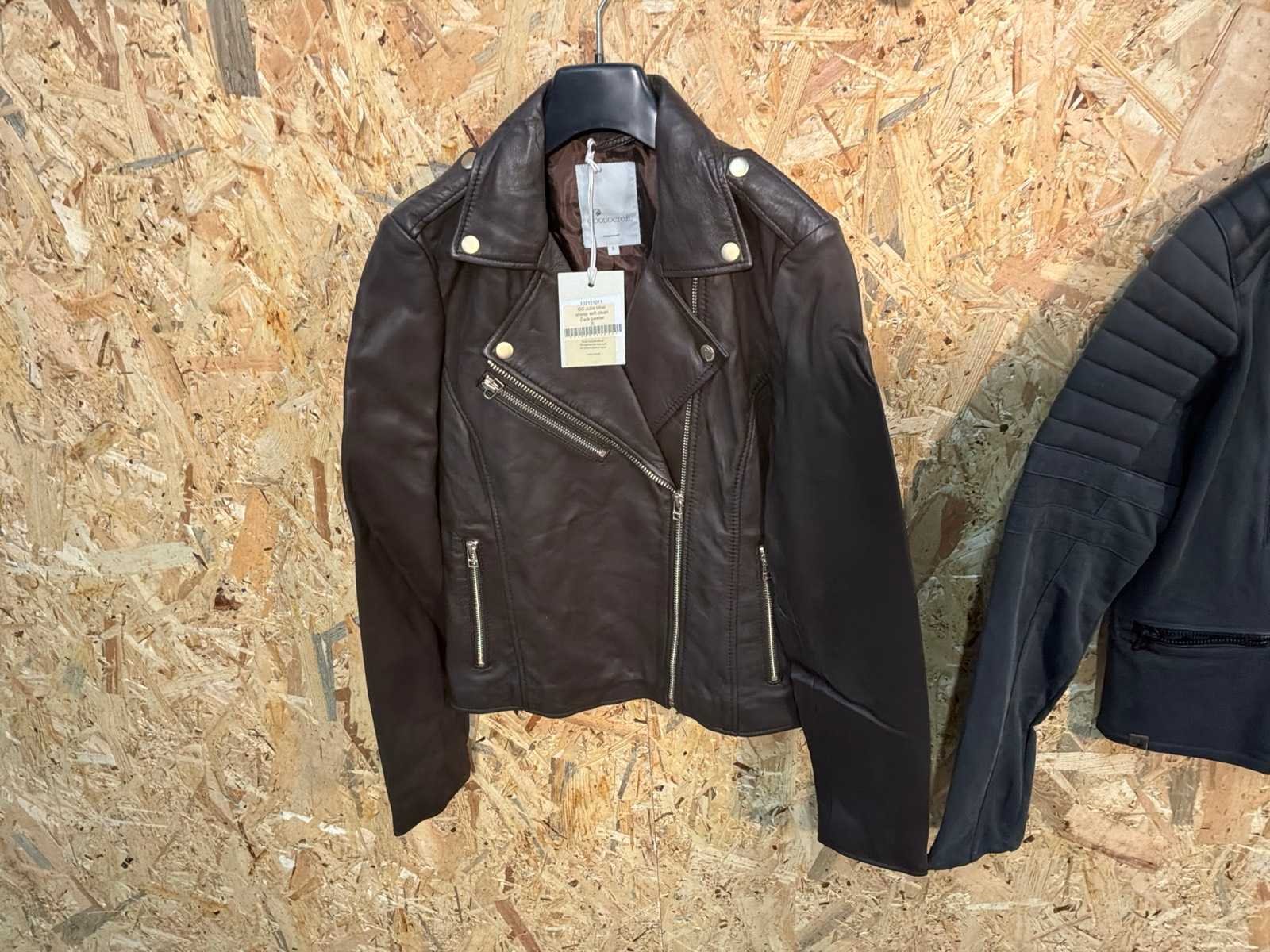 Diverse leren dames/heren jackets en vesten in verschillende modellen, kleuren en maten. Inclusief kledinghangers. Mochten erop de items beveiligingstags zitten worden deze nog verwijderd voor de uitleverdag. Merk: Goose-craft