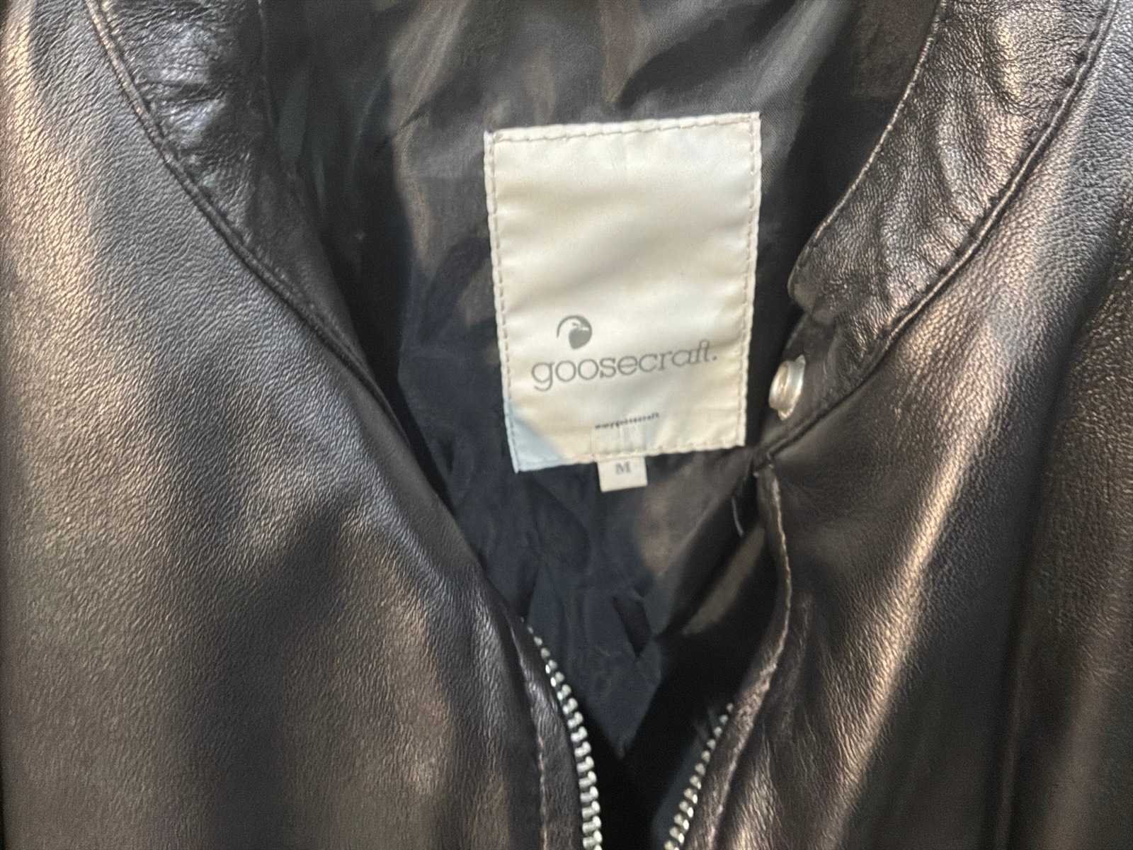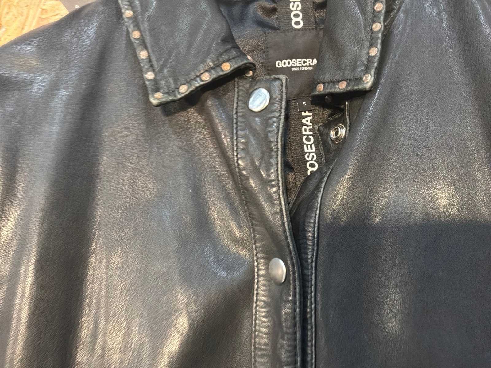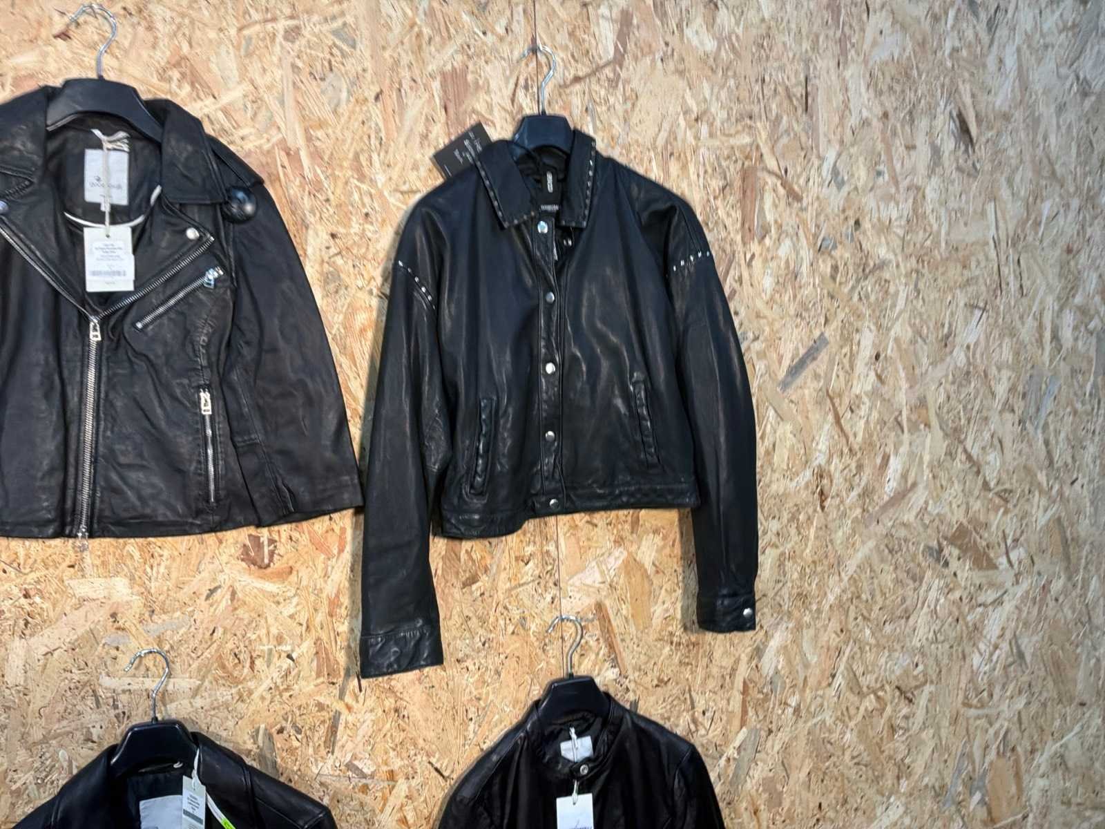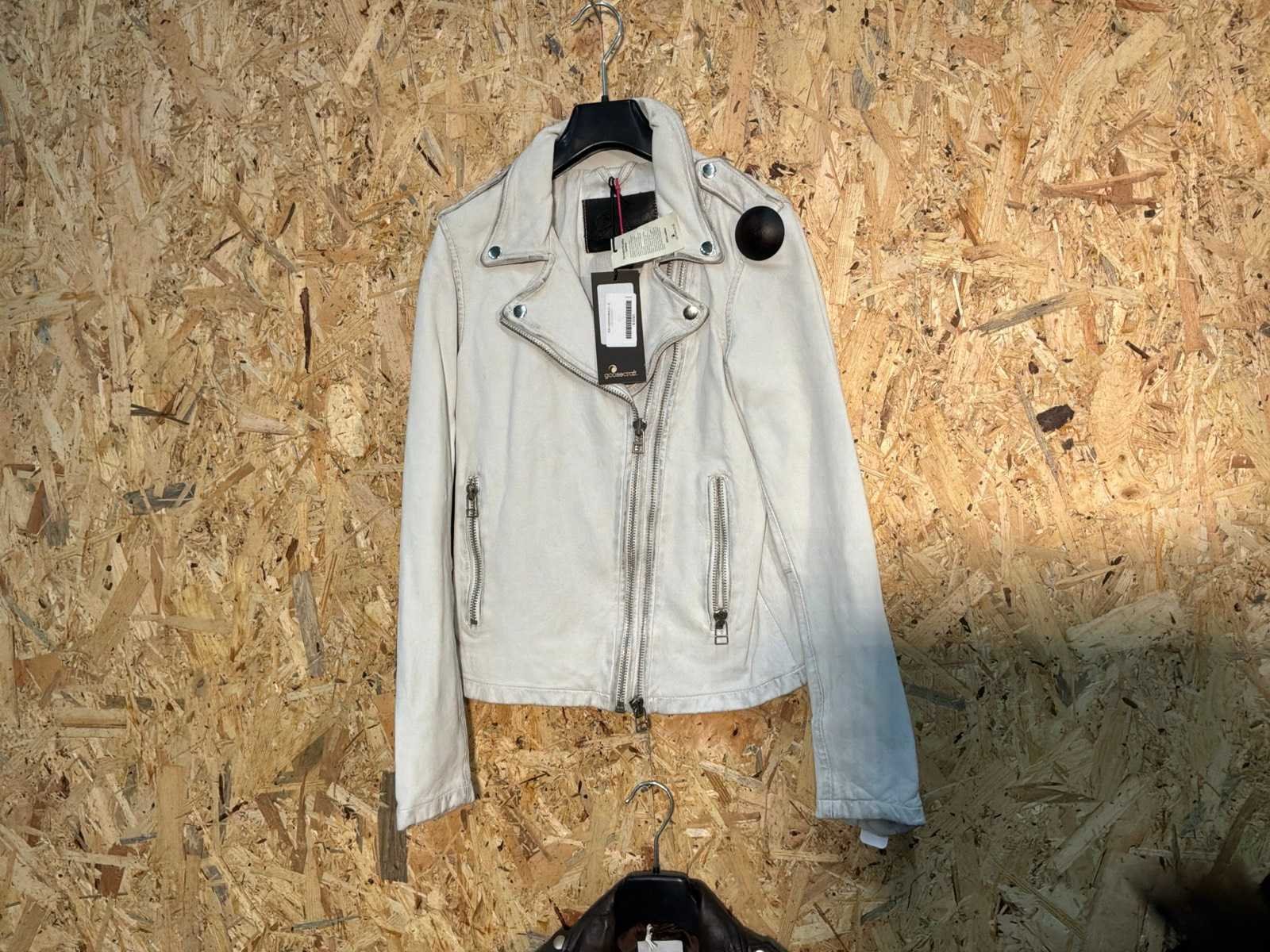 Diverse leren dames/heren jackets en vesten in verschillende modellen, kleuren en maten. Inclusief kledinghangers. Mochten erop de items beveiligingstags zitten worden deze nog verwijderd voor de uitleverdag. Merk: Goose-craft