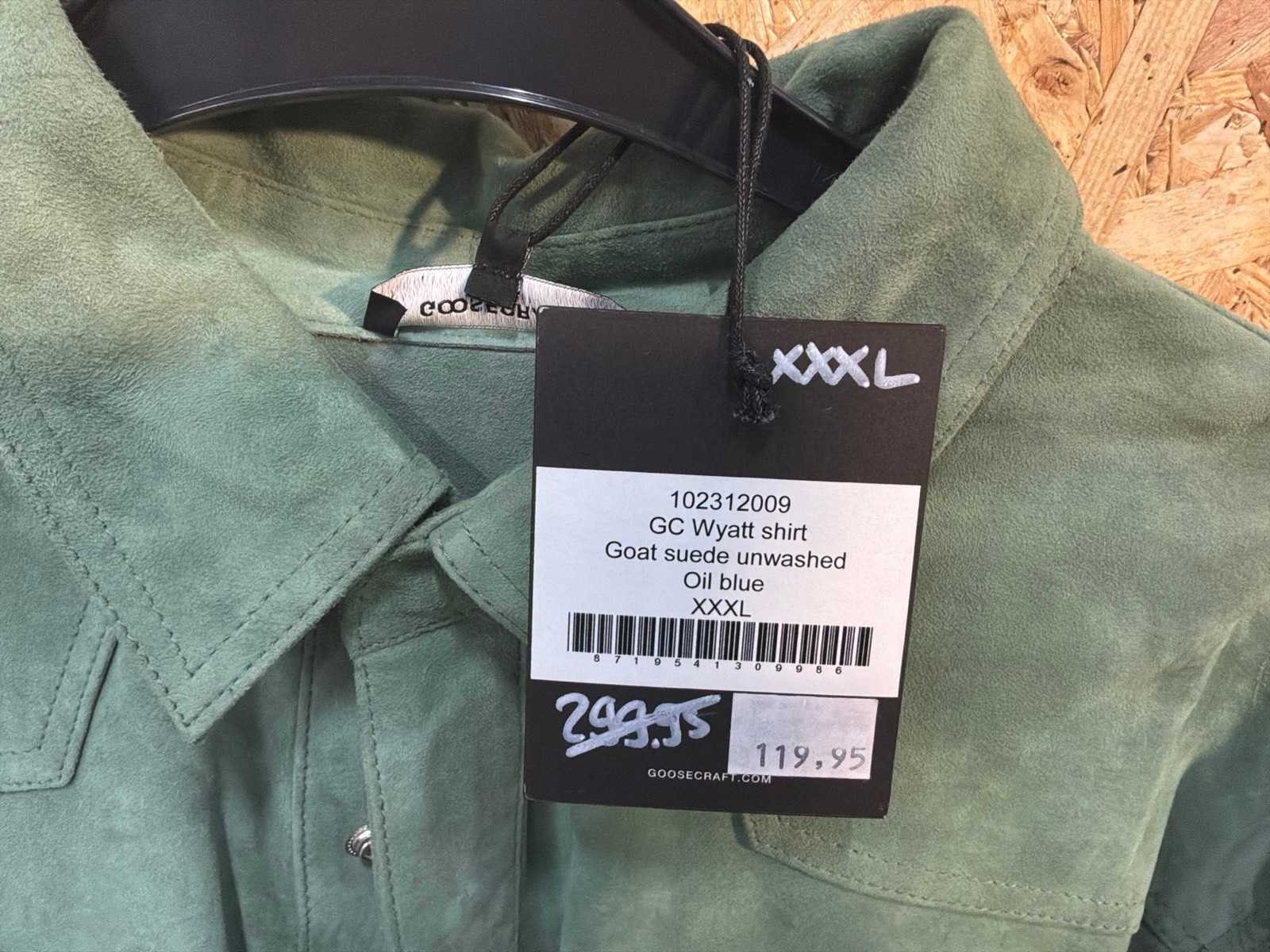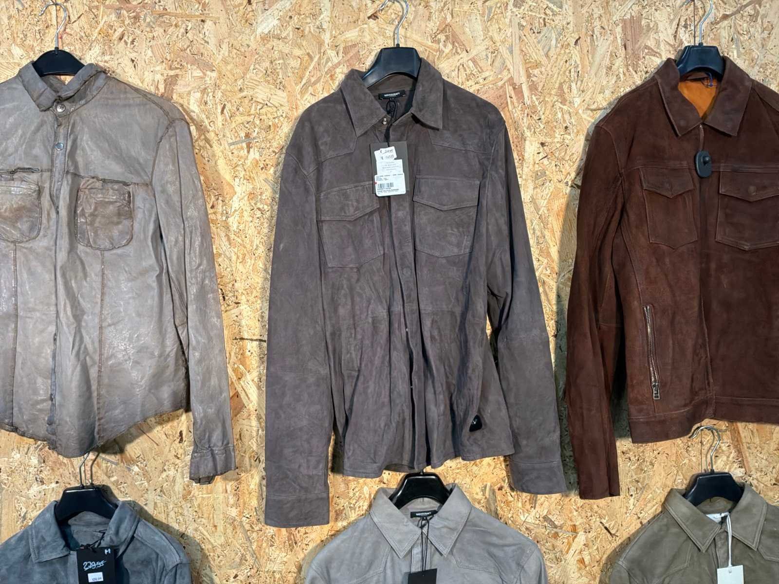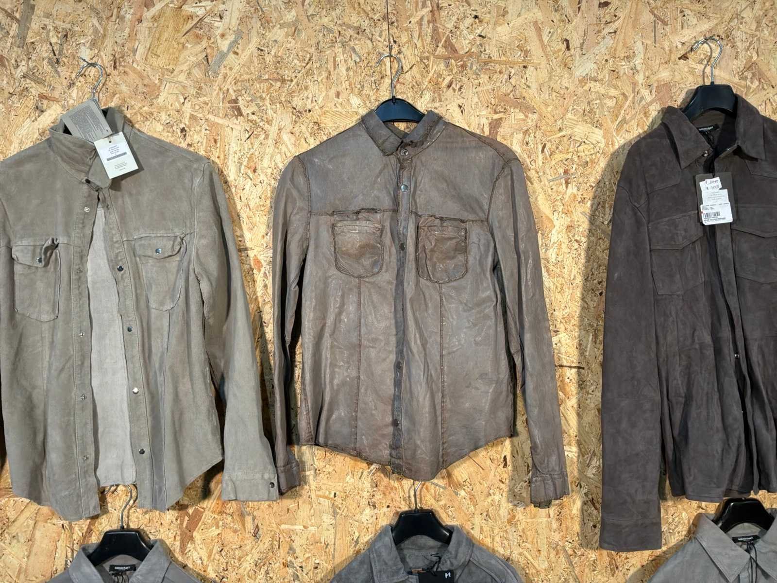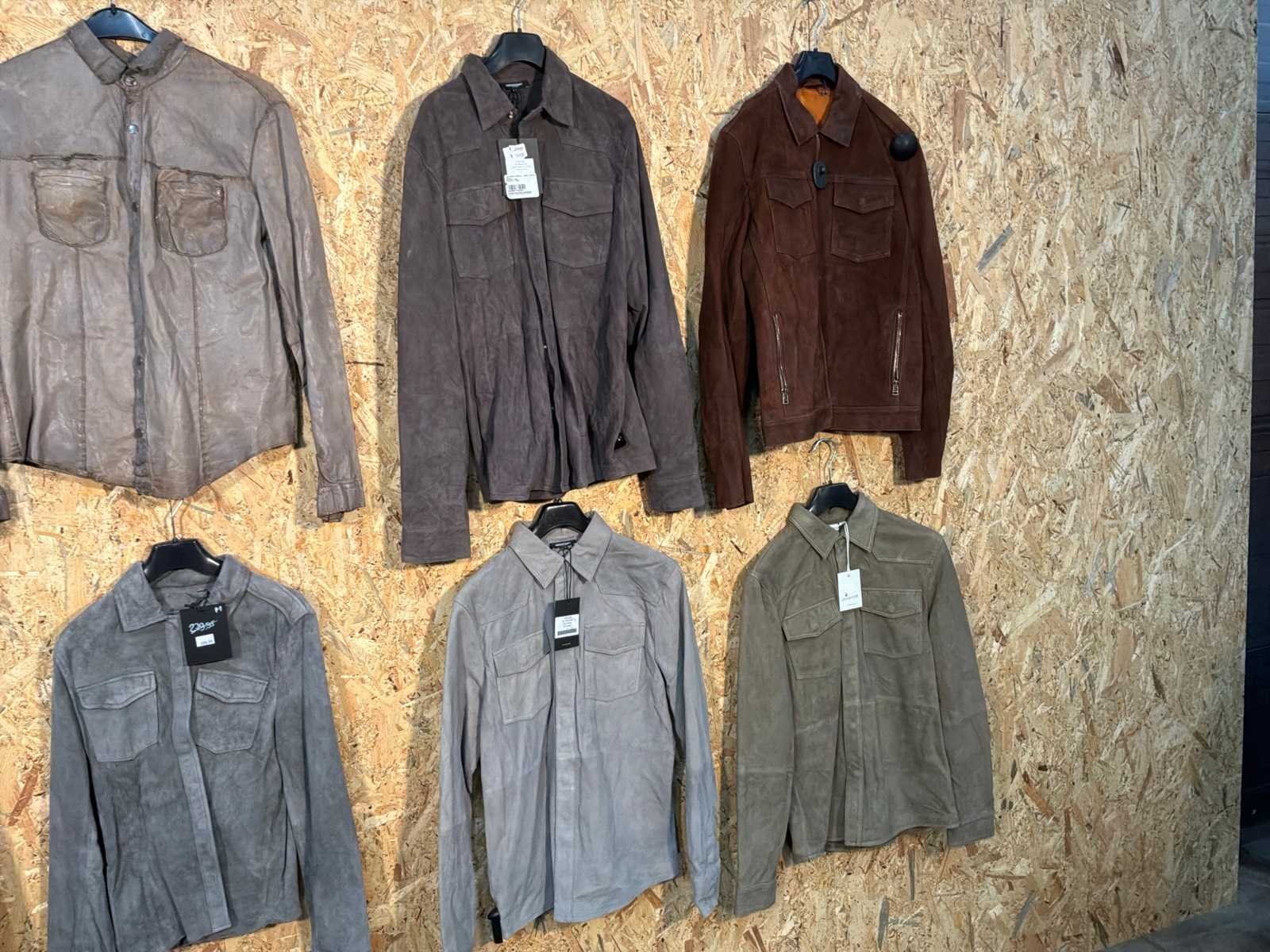 Diverse heren leren overshirts in verschillende modellen, kleuren en maten. Inclusief kledinghangers. Mochten erop de items beveiligingstags zitten worden deze nog verwijderd voor de uitleverdag. Merk: Goose-craft