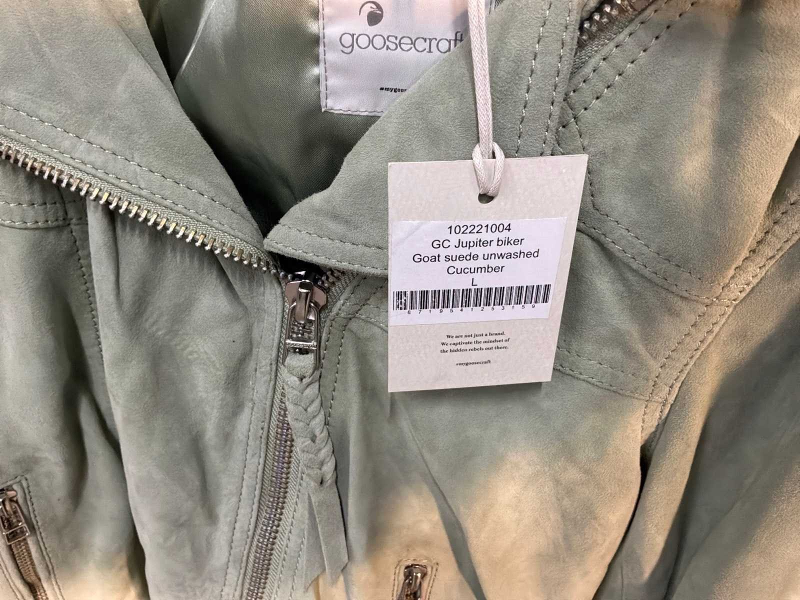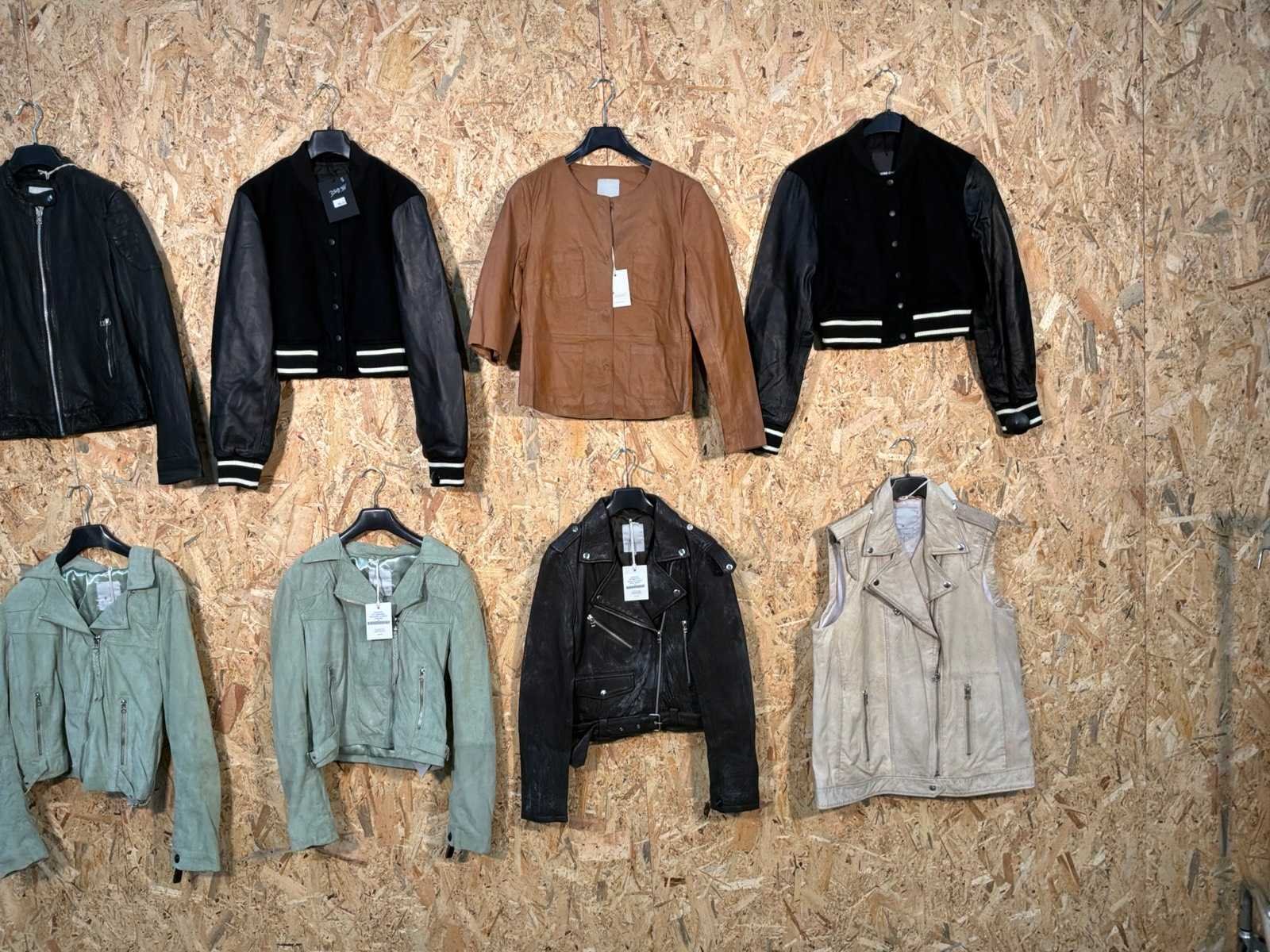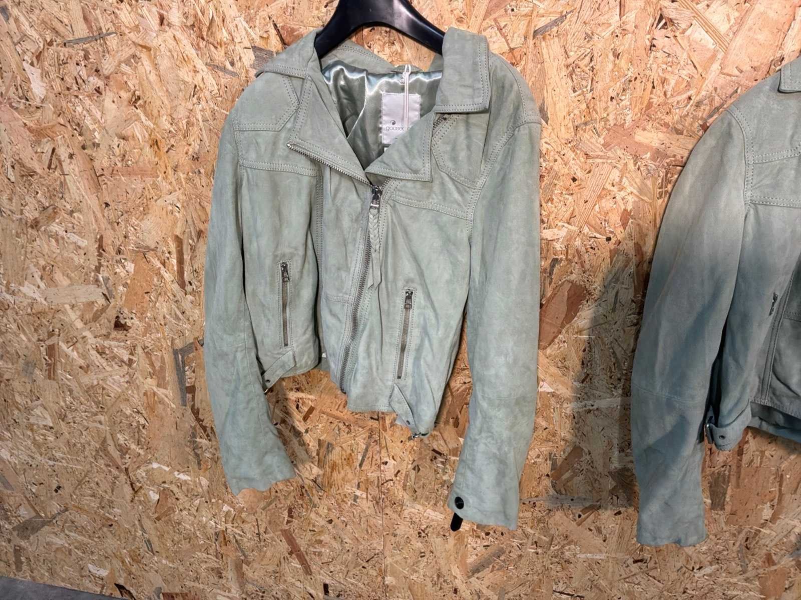 Diverse leren dames/heren jackets en vesten in verschillende modellen, kleuren en maten. Inclusief kledinghangers. Mochten erop de items beveiligingstags zitten worden deze nog verwijderd voor de uitleverdag. Merk: Goose-craft