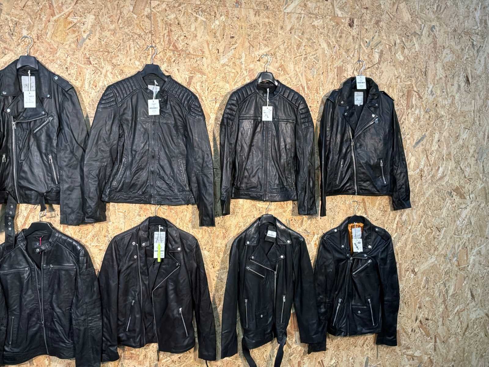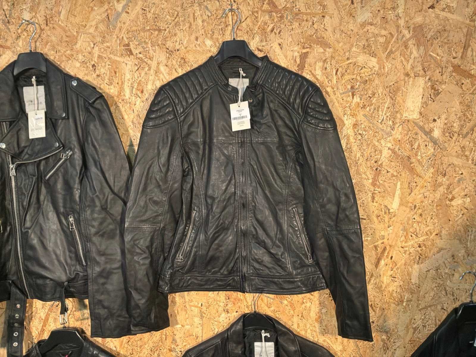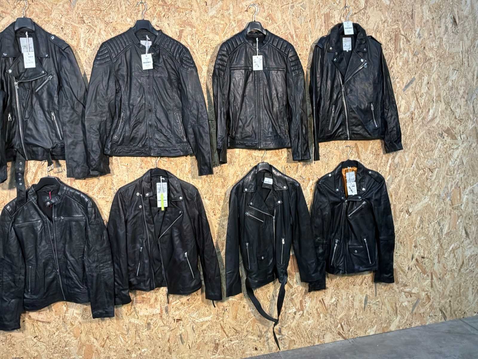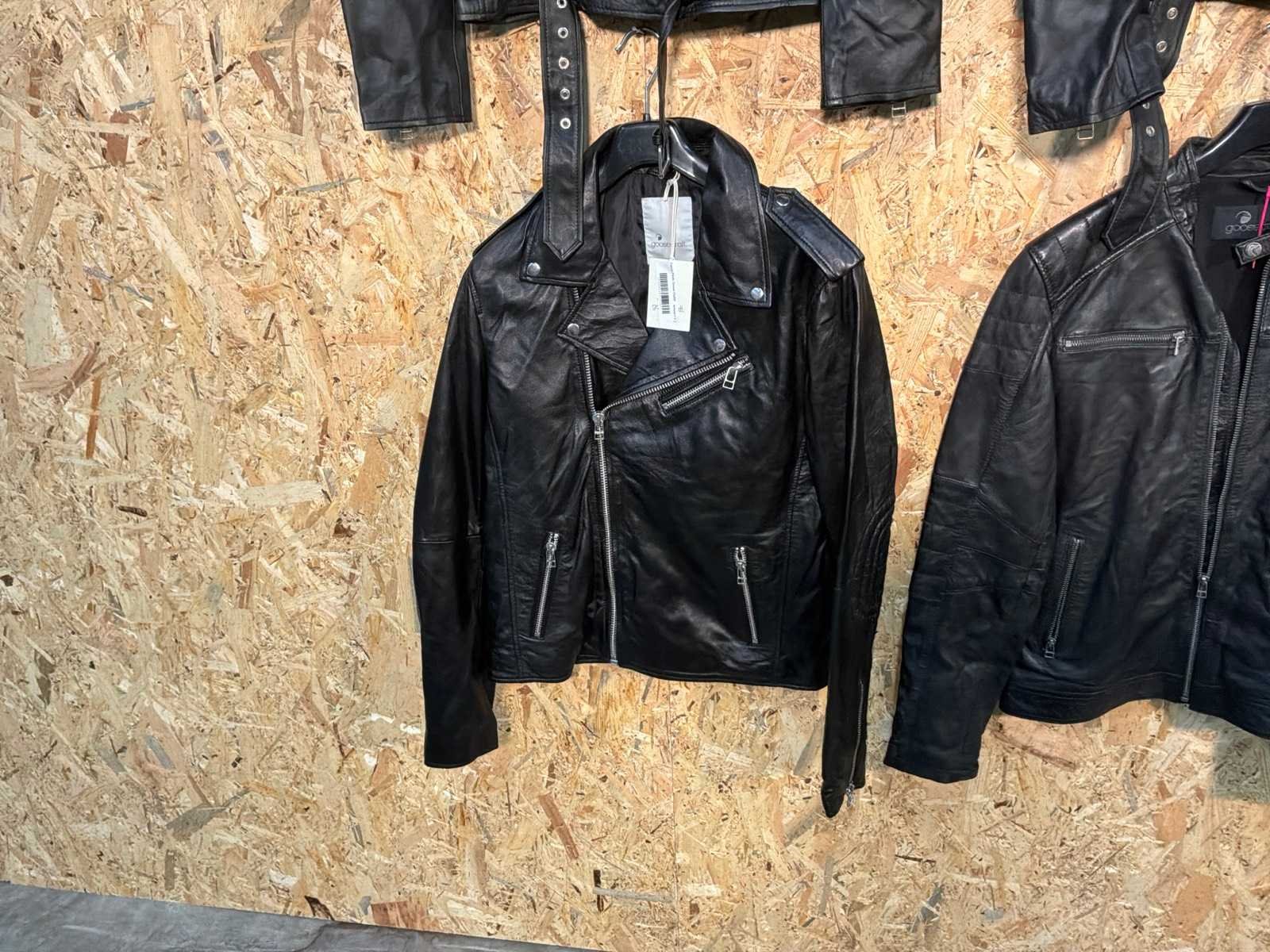 Diverse leren heren/dames jackets in verschillende modellen, kleuren en maten. Inclusief kledinghangers. Mochten erop de items beveiligingstags zitten worden deze nog verwijderd voor de uitleverdag. Merk: Goose-craft