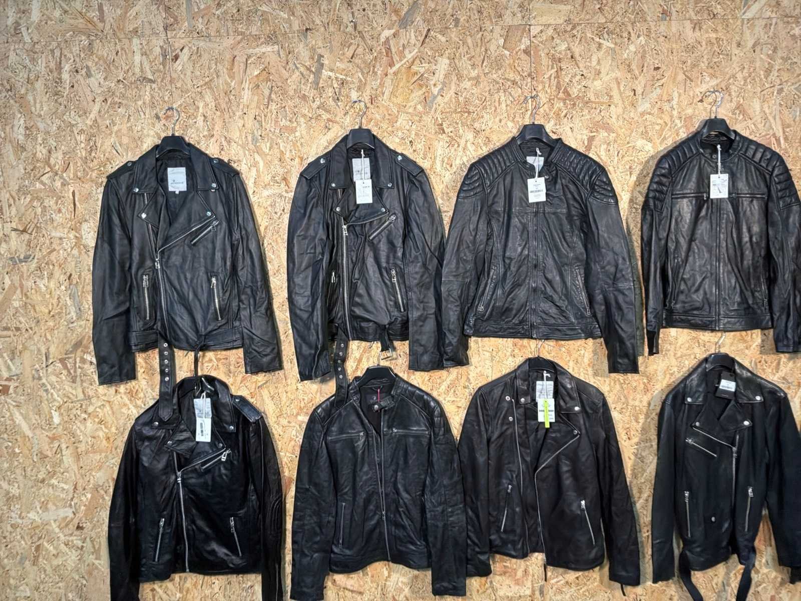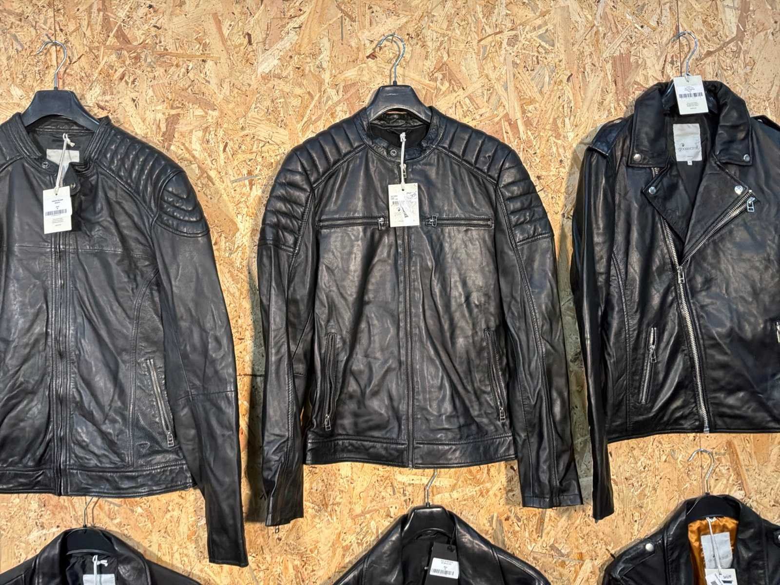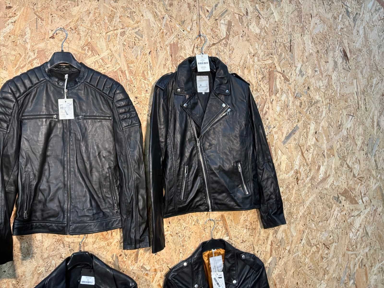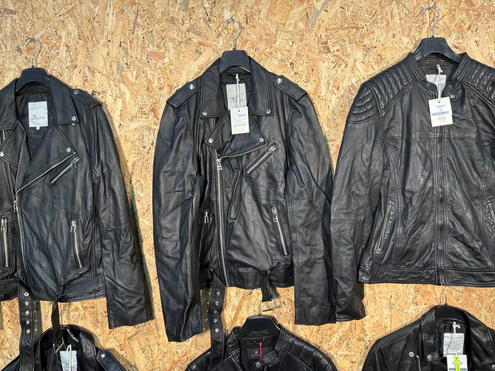 Diverse leren heren/dames jackets in verschillende modellen, kleuren en maten. Inclusief kledinghangers. Mochten erop de items beveiligingstags zitten worden deze nog verwijderd voor de uitleverdag. Merk: Goose-craft
