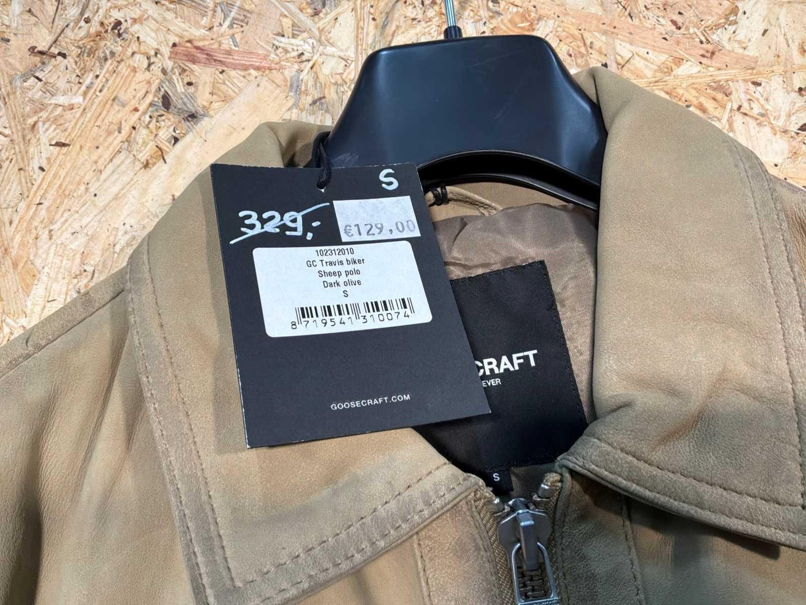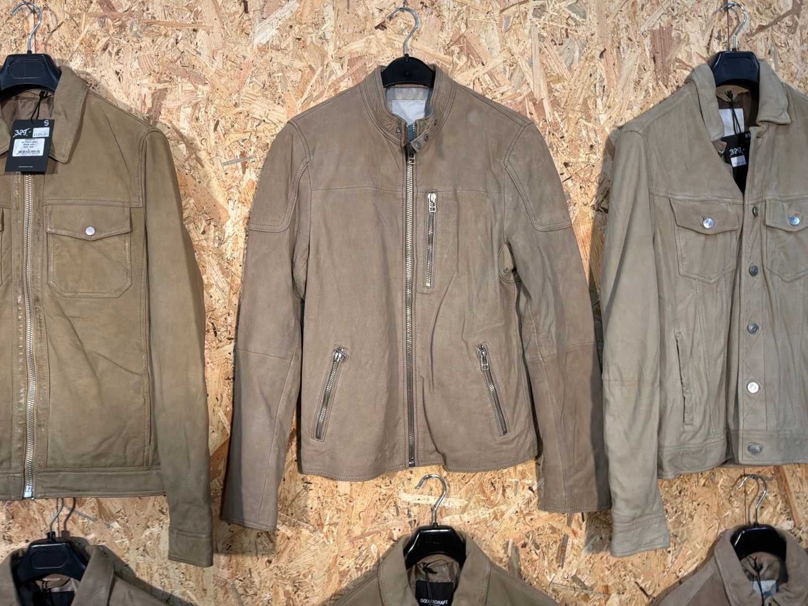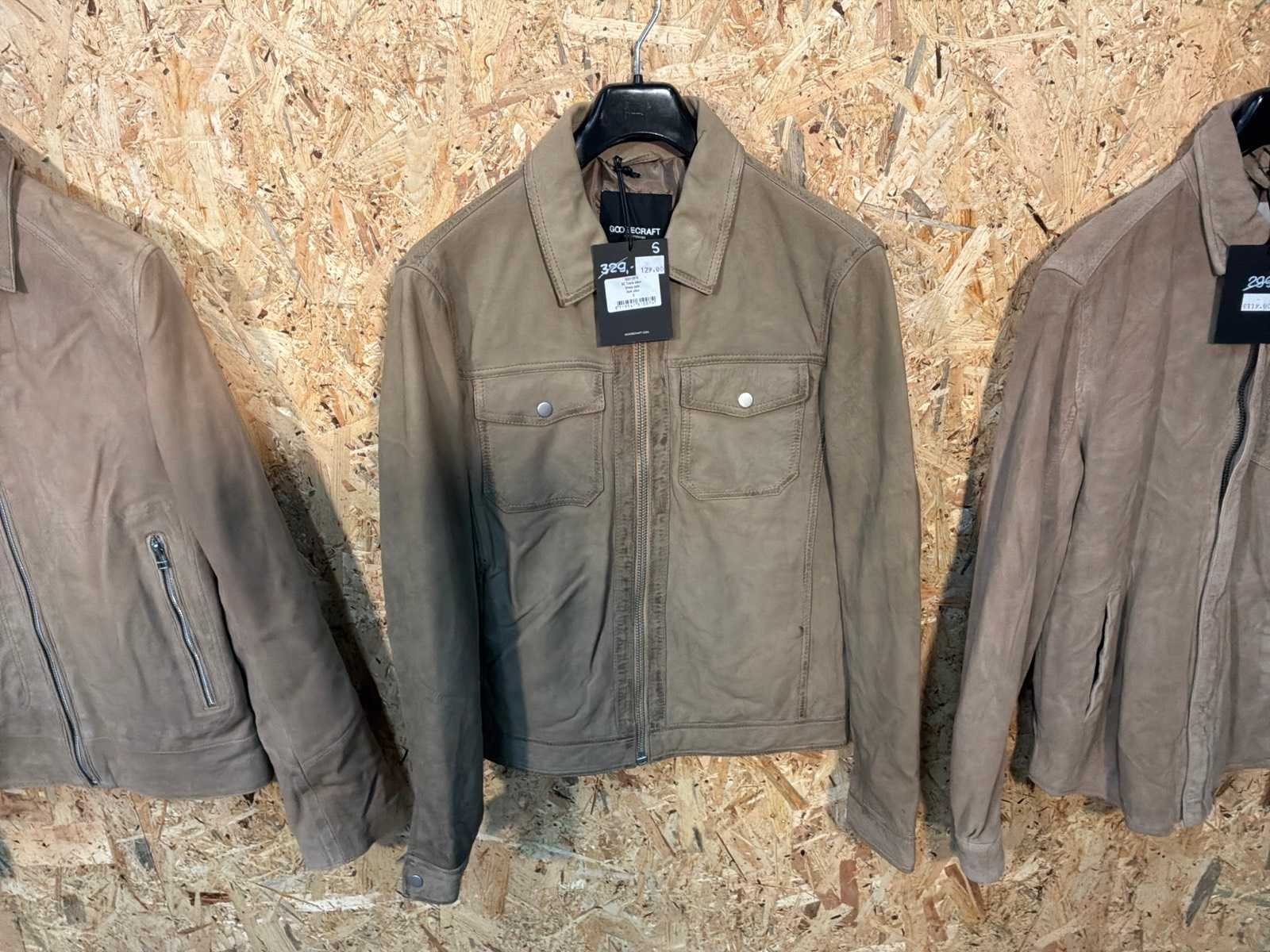Diverse leren heren/dames jackets in verschillende modellen, kleuren en maten. Inclusief kledinghangers. Mochten erop de items beveiligingstags zitten worden deze nog verwijderd voor de uitleverdag. Merk: Goose-craft