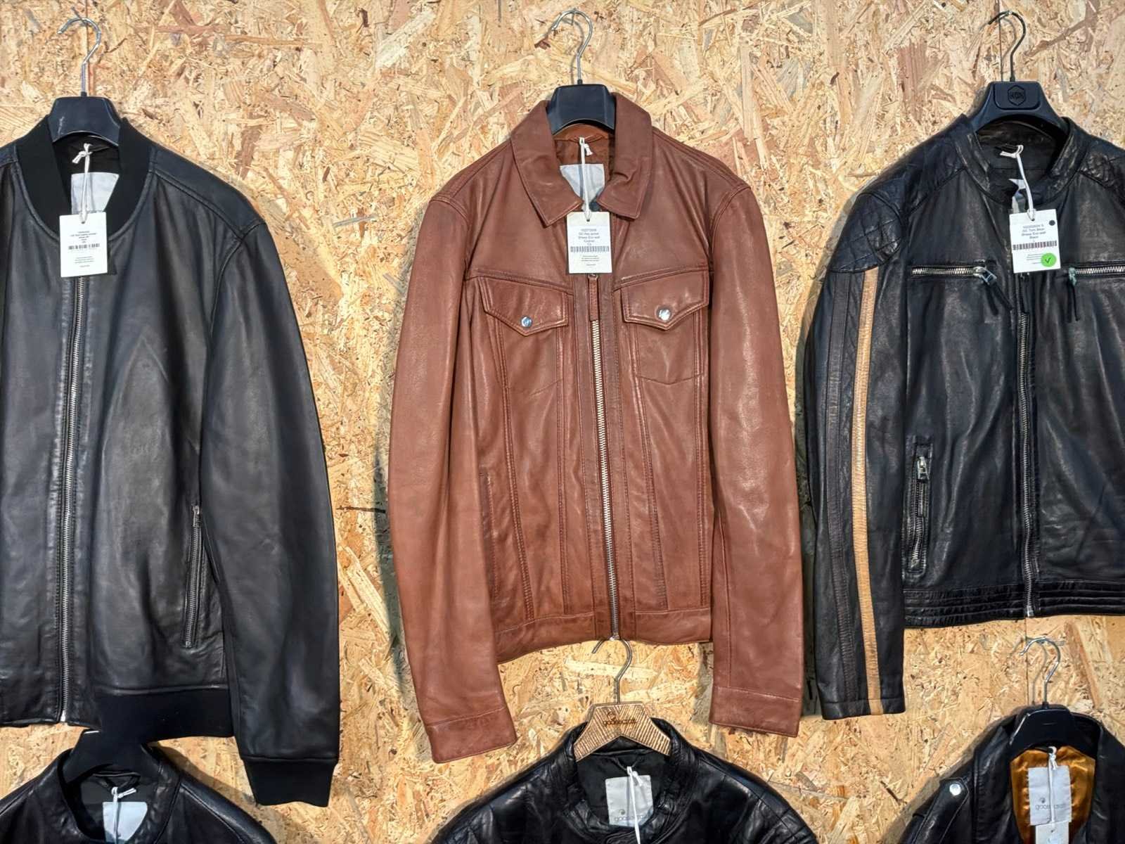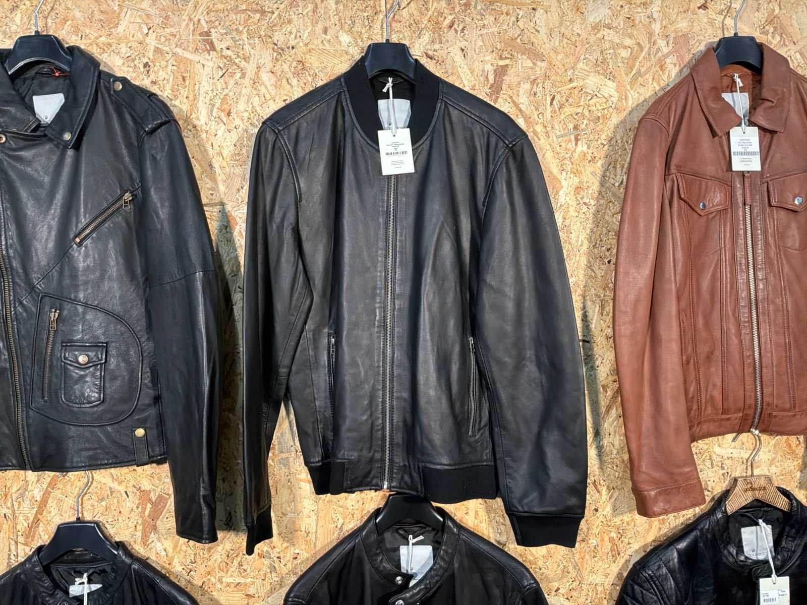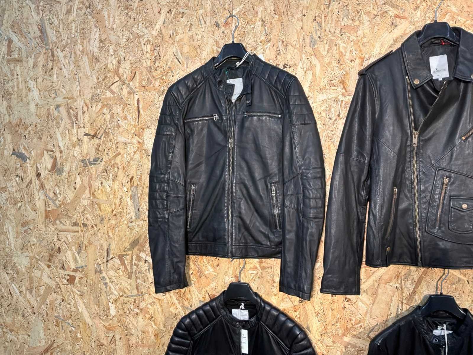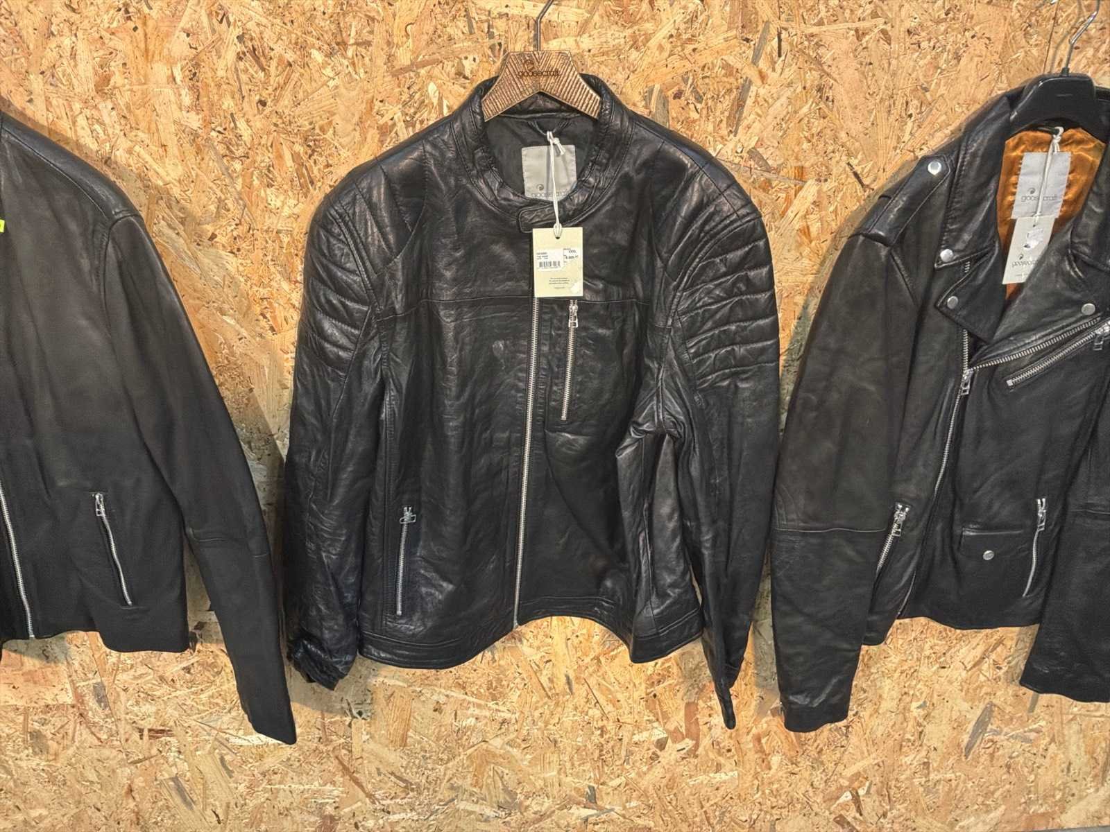 Diverse leren heren jackets in verschillende modellen, kleuren en maten. Inclusief kledinghangers. Mochten erop de items beveiligingstags zitten worden deze nog verwijderd voor de uitleverdag. Merk: Goose-craft