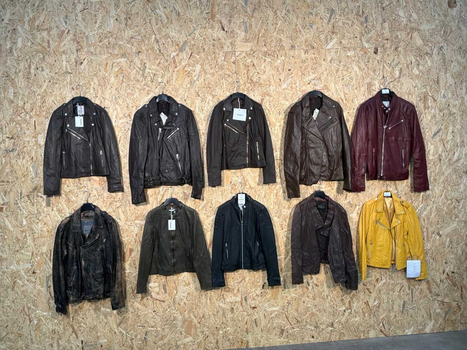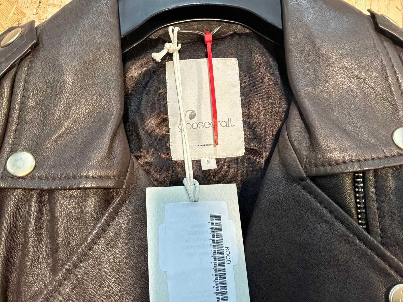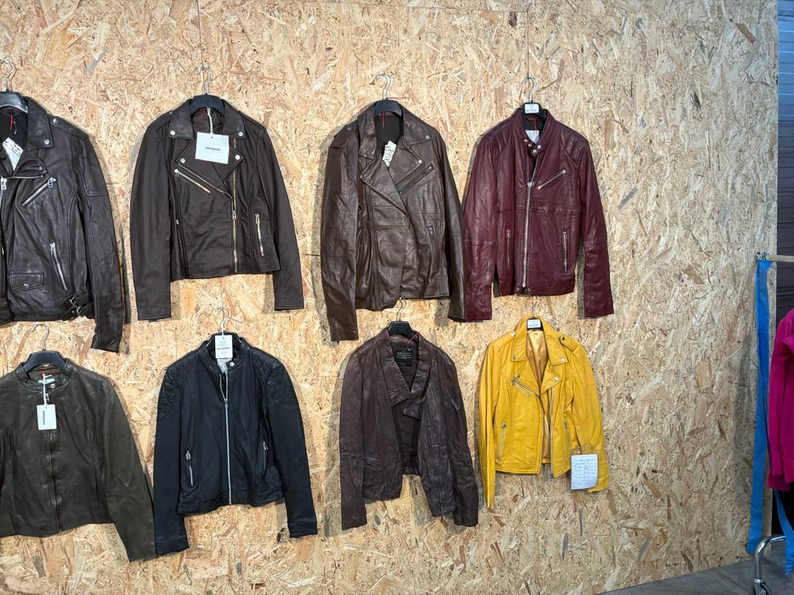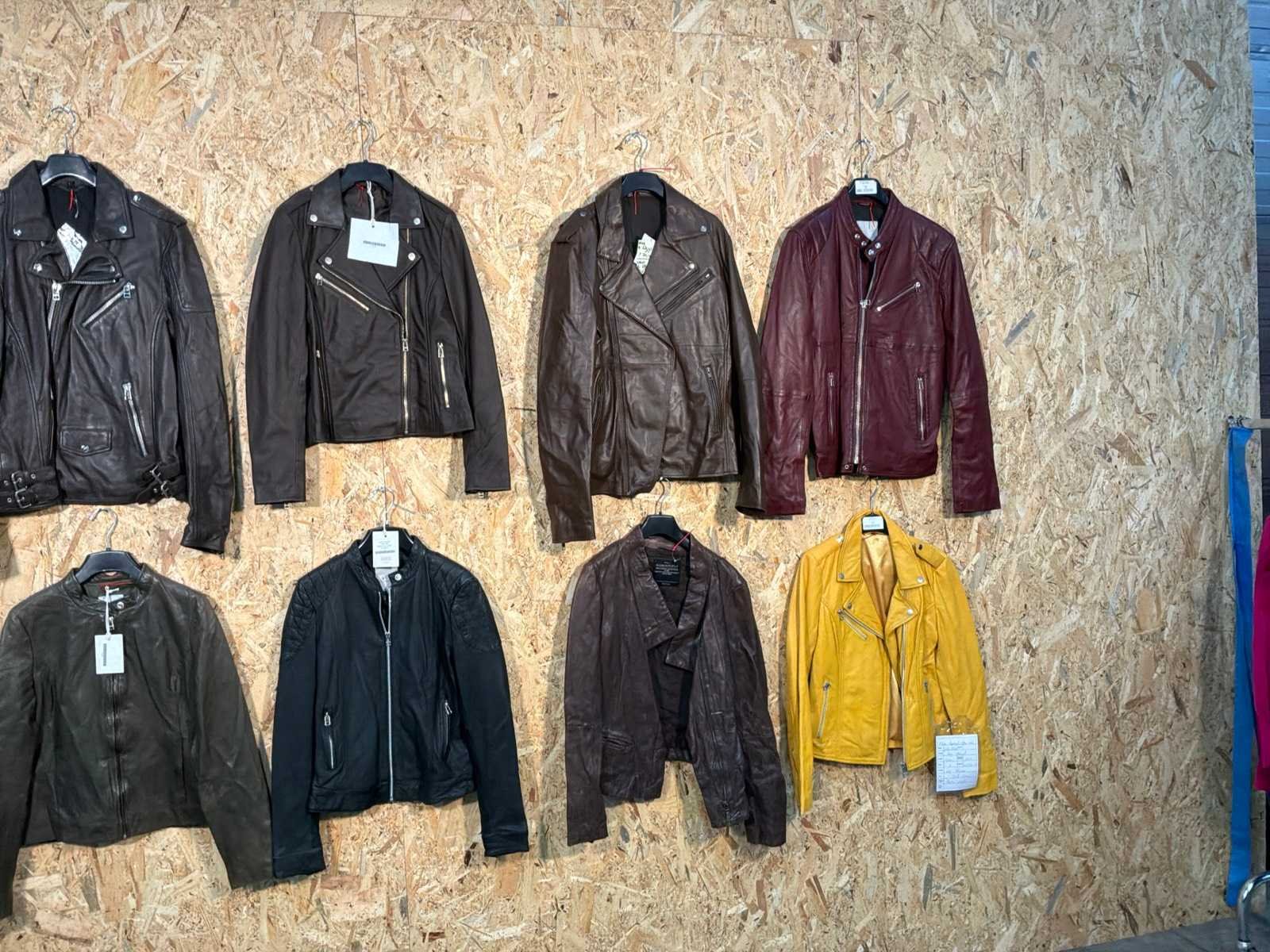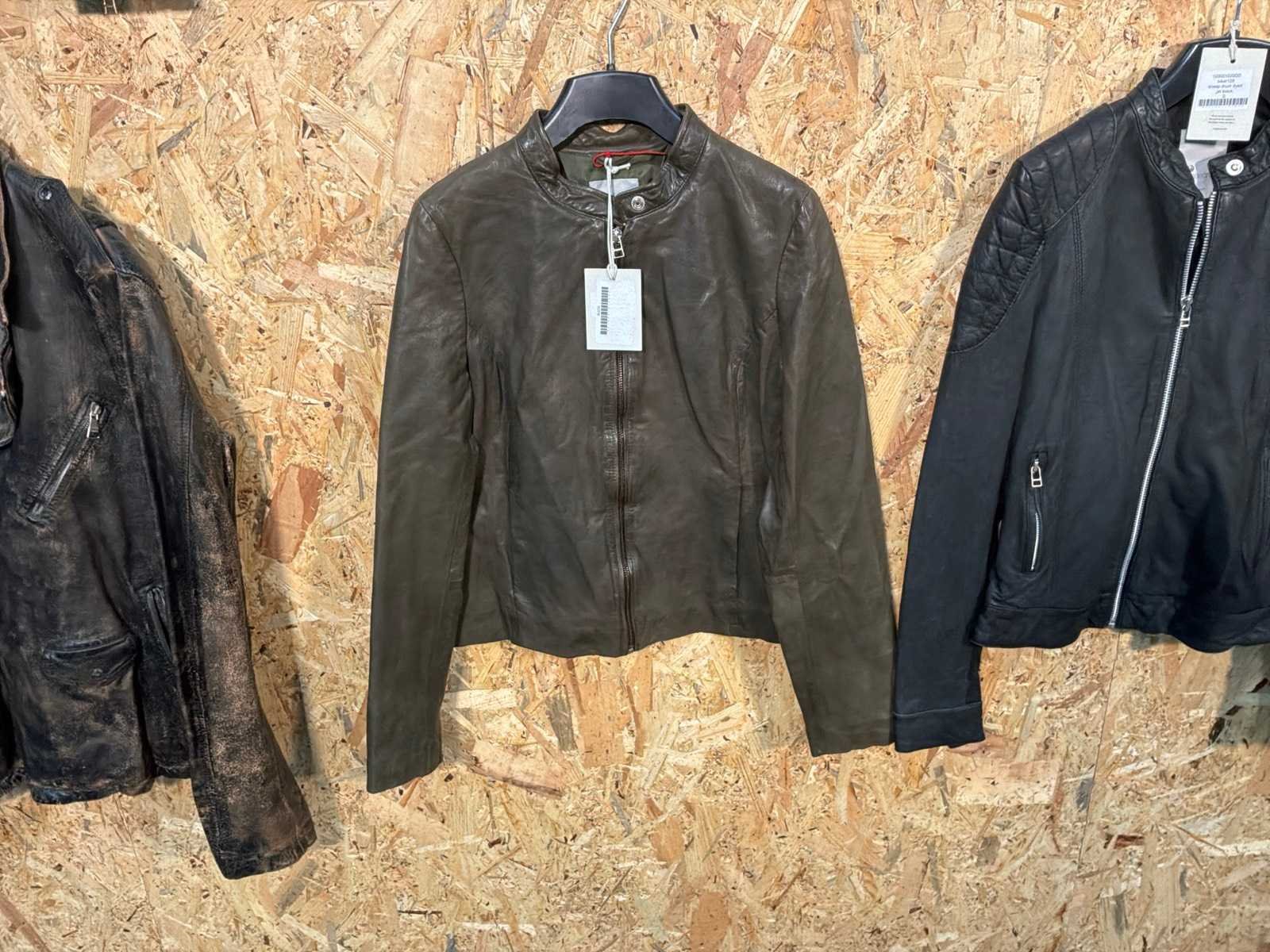 Diverse leren dames jassen in verschillende modellen, kleuren en maten. Inclusief kledinghangers. Mochten erop de items beveiligingstags zitten worden deze nog verwijderd voor de uitleverdag. Merk: Goose-craft