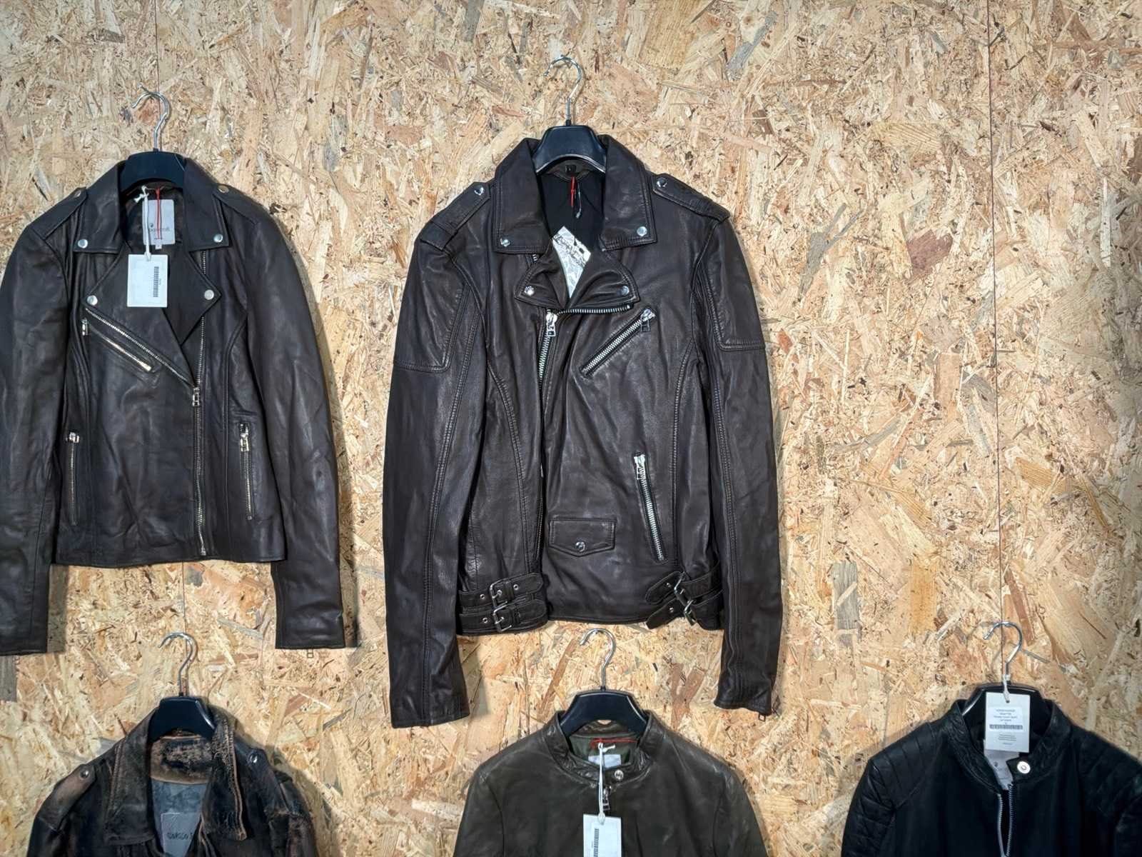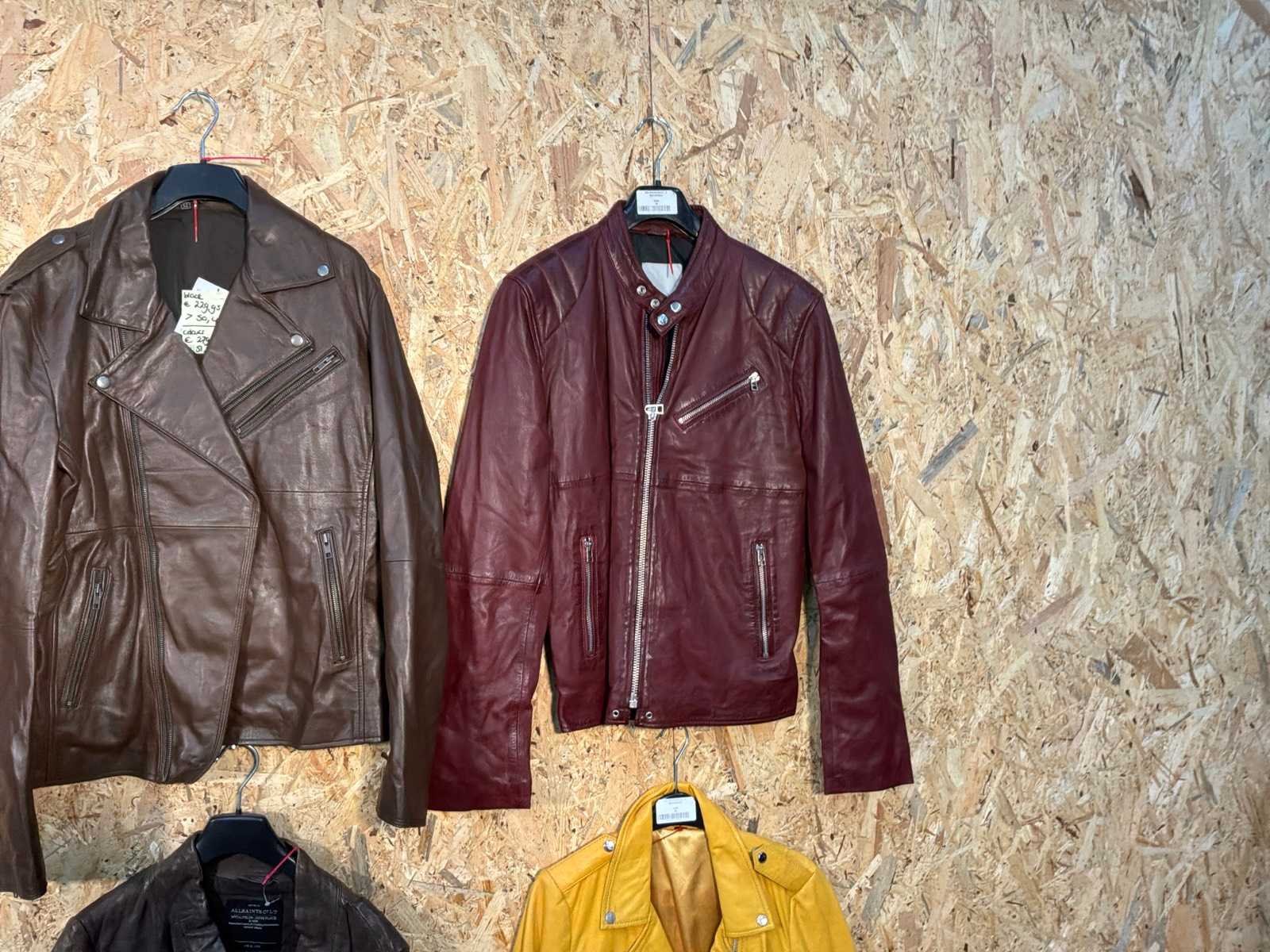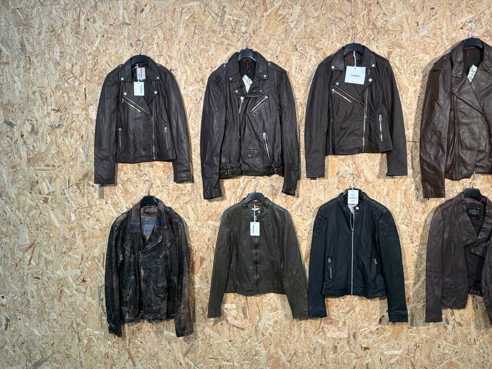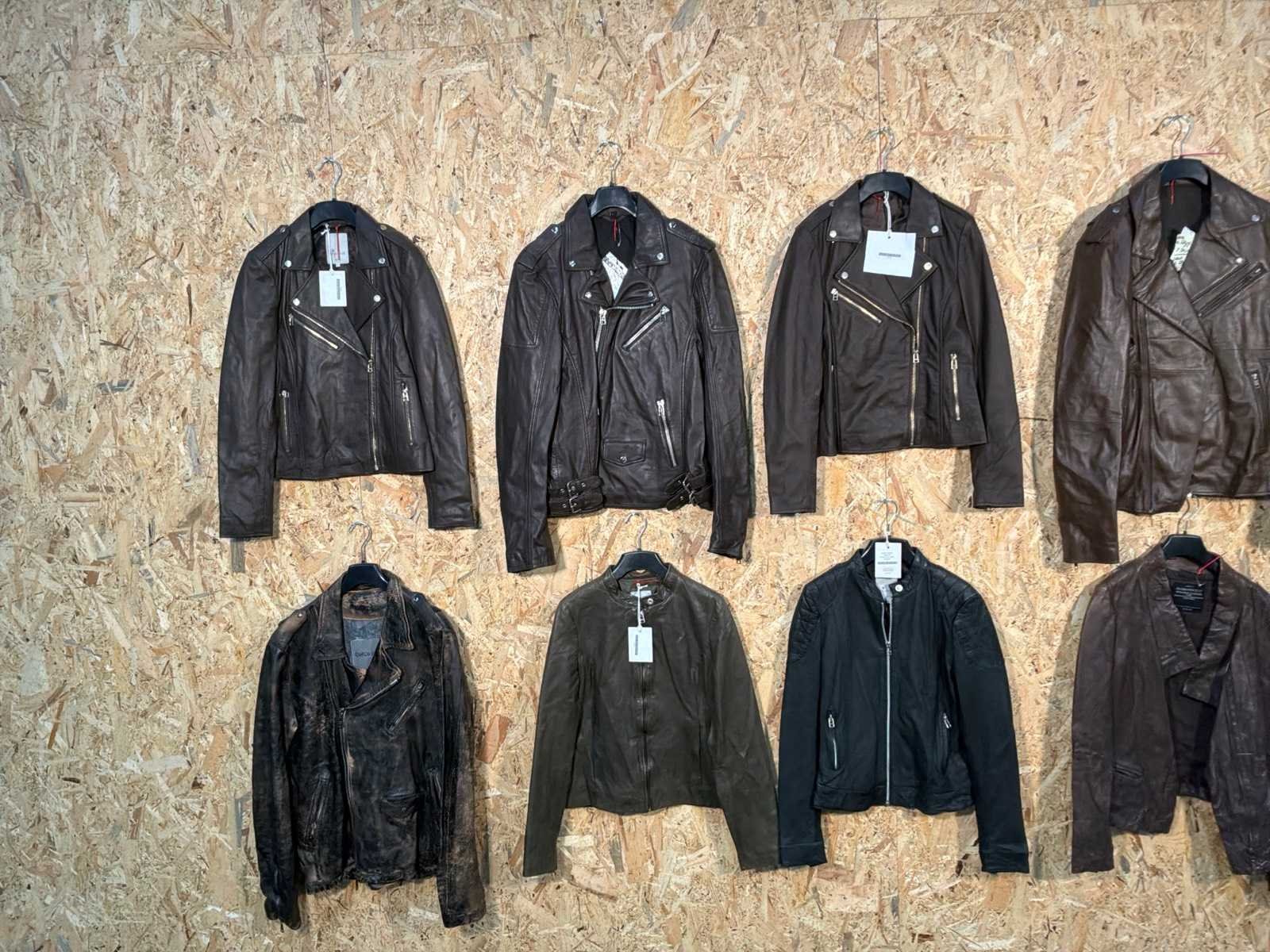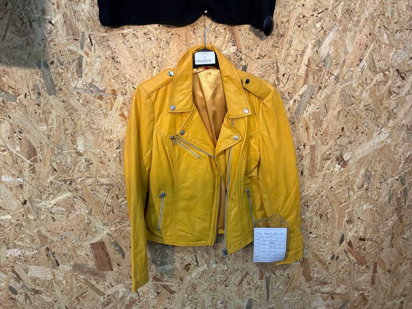 Diverse leren dames jassen in verschillende modellen, kleuren en maten. Inclusief kledinghangers. Mochten erop de items beveiligingstags zitten worden deze nog verwijderd voor de uitleverdag. Merk: Goose-craft